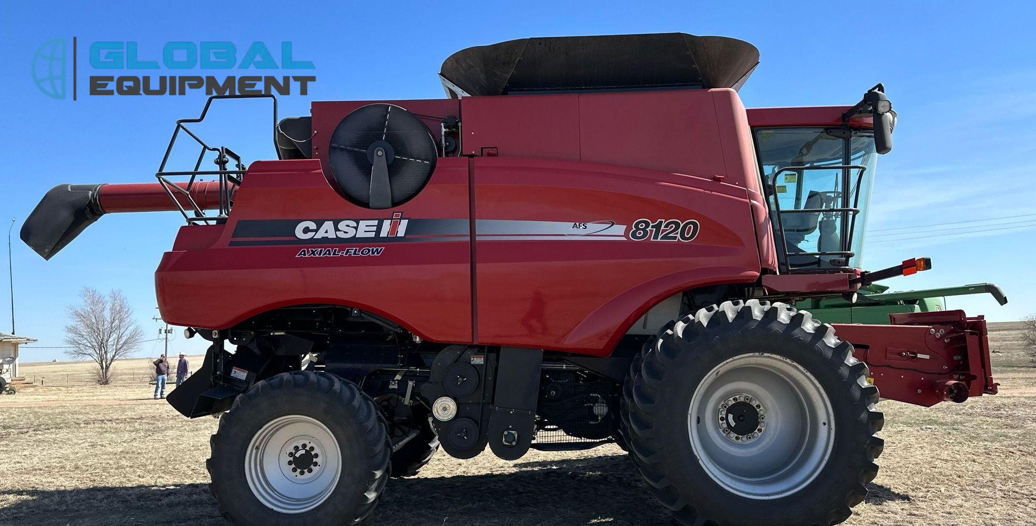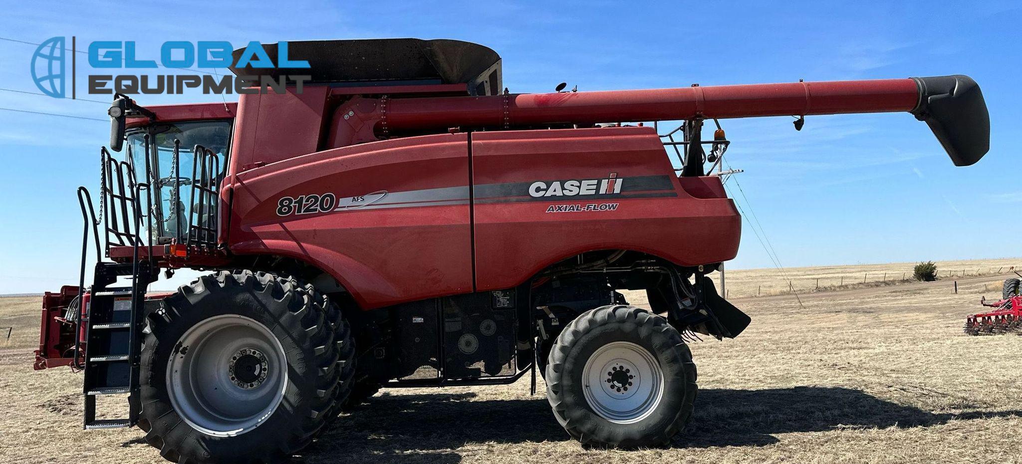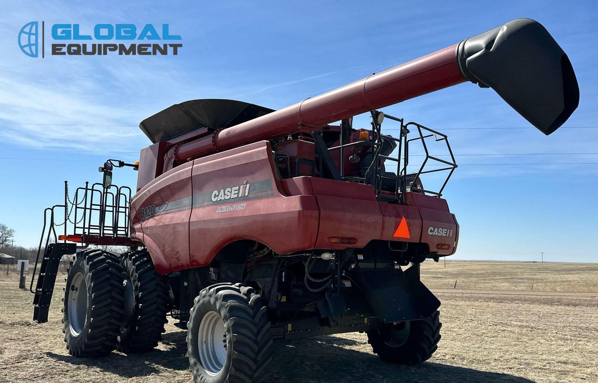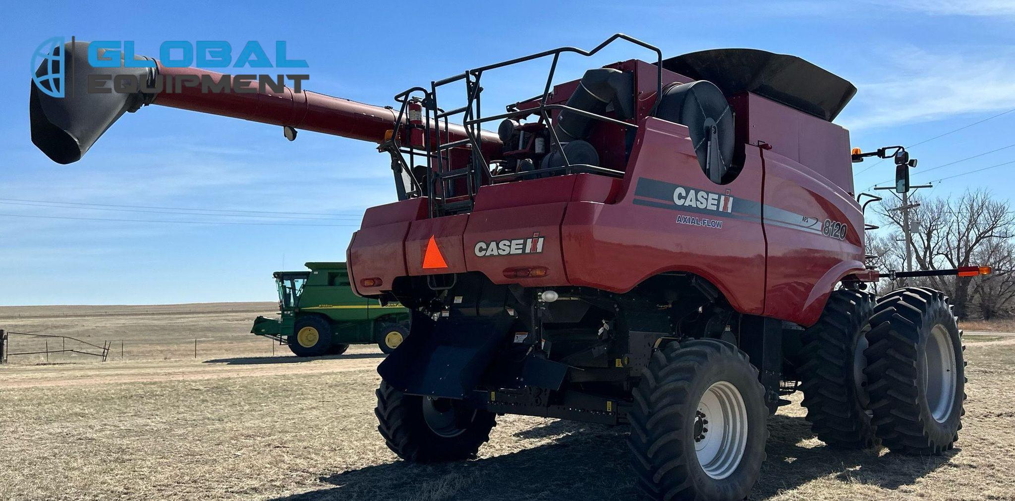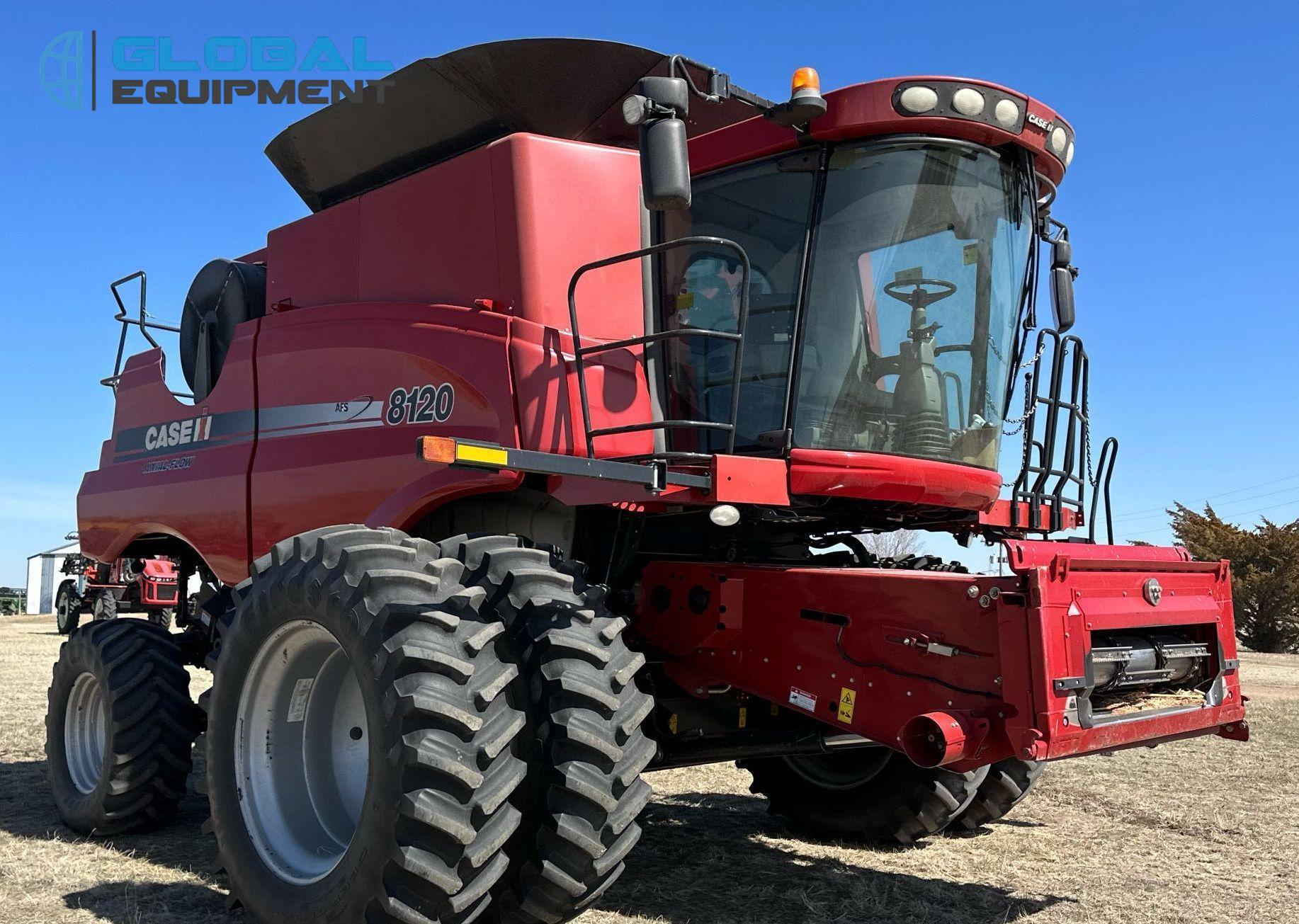 2010 Case IH 8120 Axial Flow combine, 2,390 Engine Hours and 1,686 Separator Hours on meter, Hydrostatic Transmission, Enclosed Cab with AC and Heat, Equipped with Single Point Header Coupler, Feederhouse with Lateral Tilt, Variable Speed, and Reverser, Chaff Spreader, Straw Chopper, Power Tailboard, Bin Extensions, and 22' 6" Unloading Auger. Riding on Front 520/85R42 Duals and Rear 540/65R30 Tires.