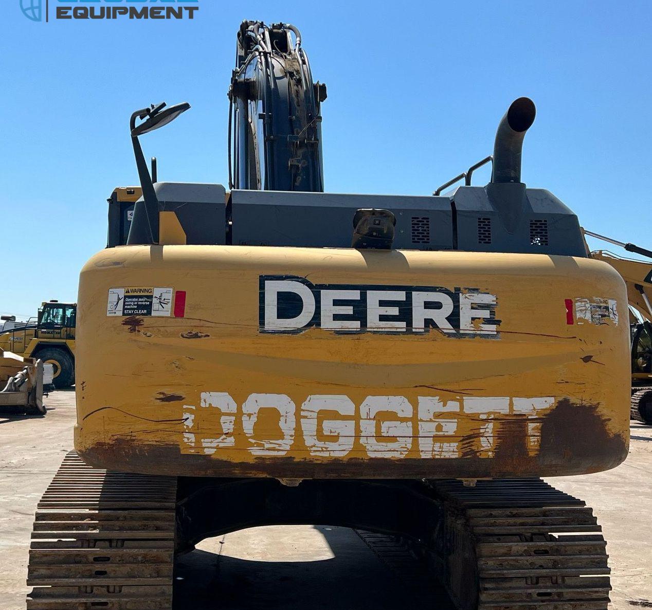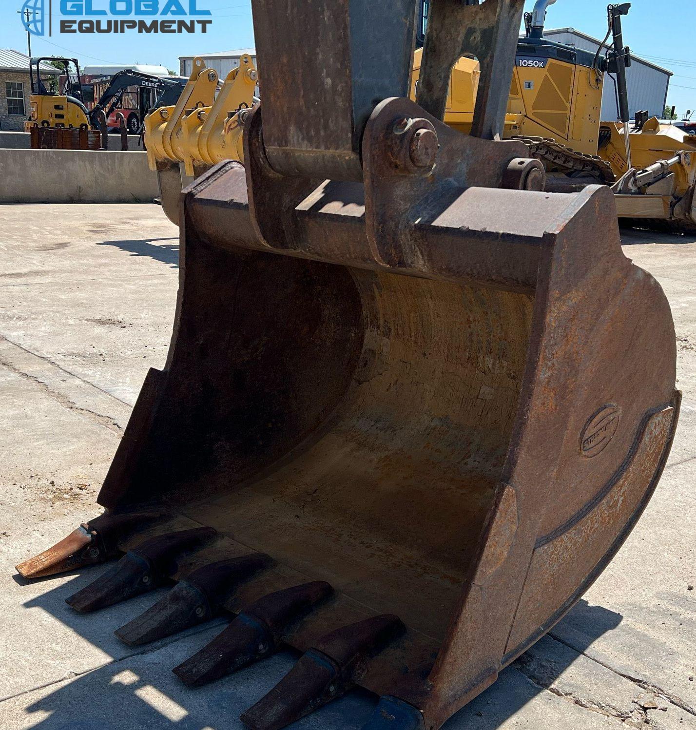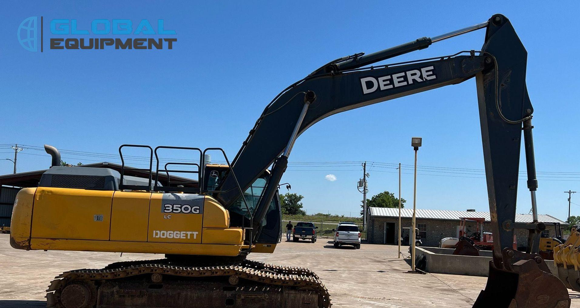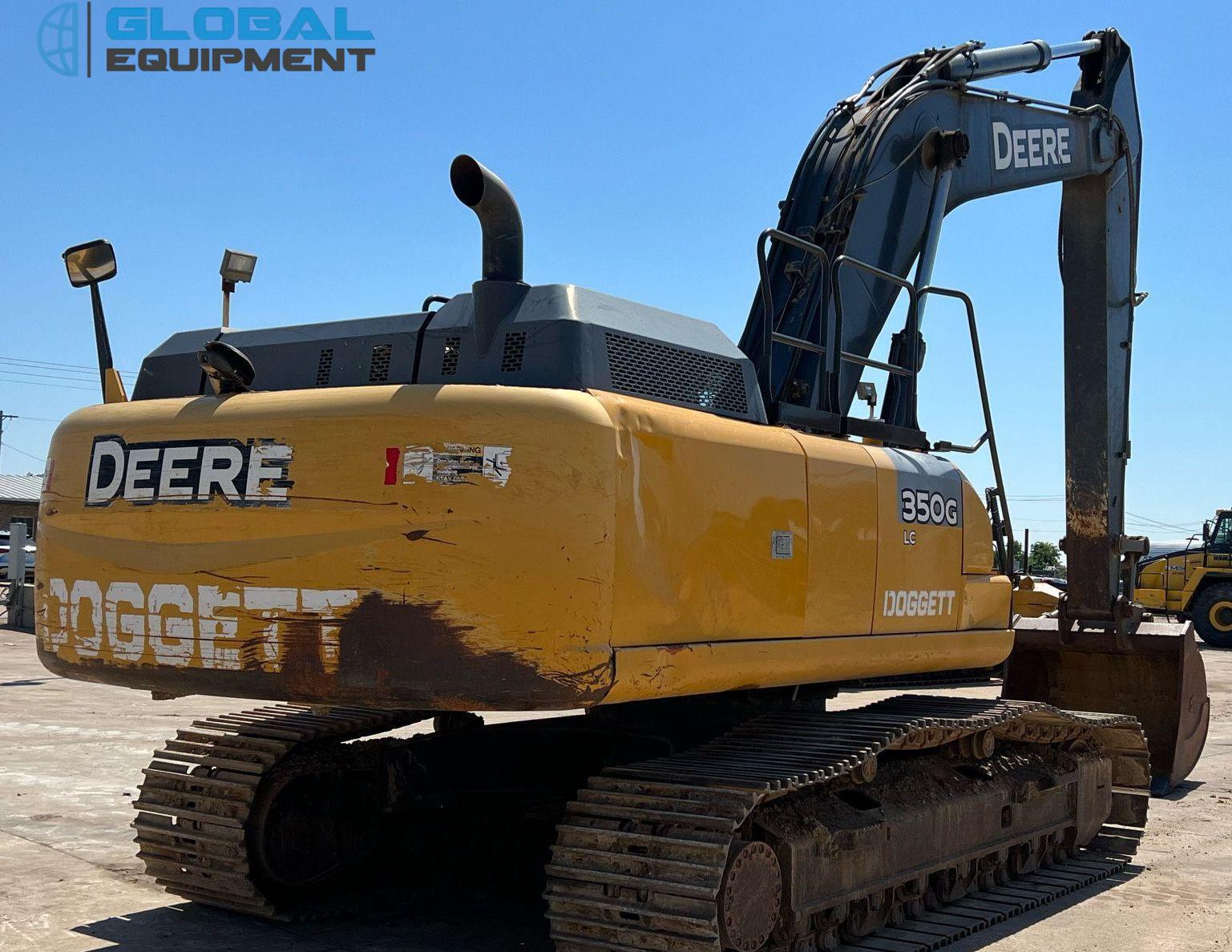 2017 John Deere 350G LC excavator, 4,557 Hours on meter, Hydrostatic Transmission with Two-Speed Travel, Enclosed Cab with AC and Heat, Equipped with Pattern Changer, Standard Boom, 64" Bucket with 6 Teeth, and 32" Wide Steel Tracks with Triple Grouser Pads.