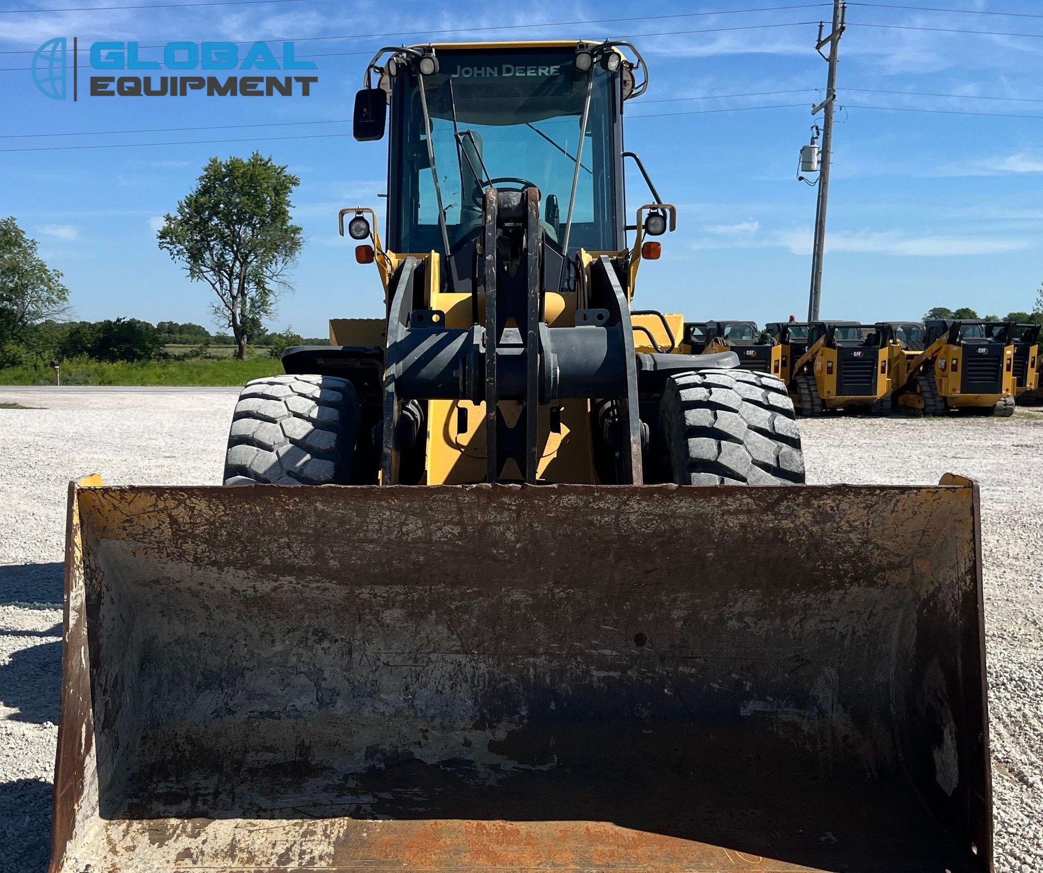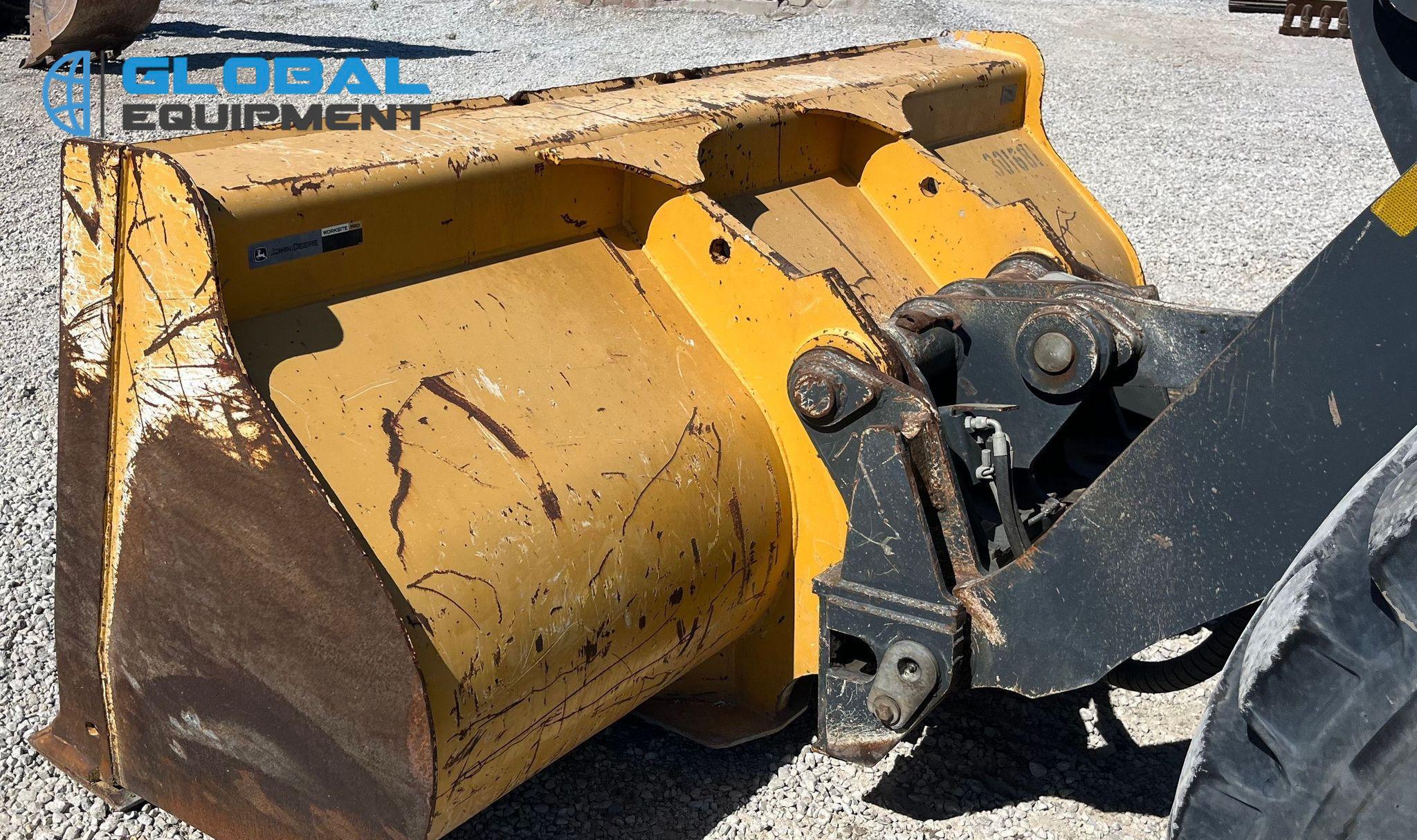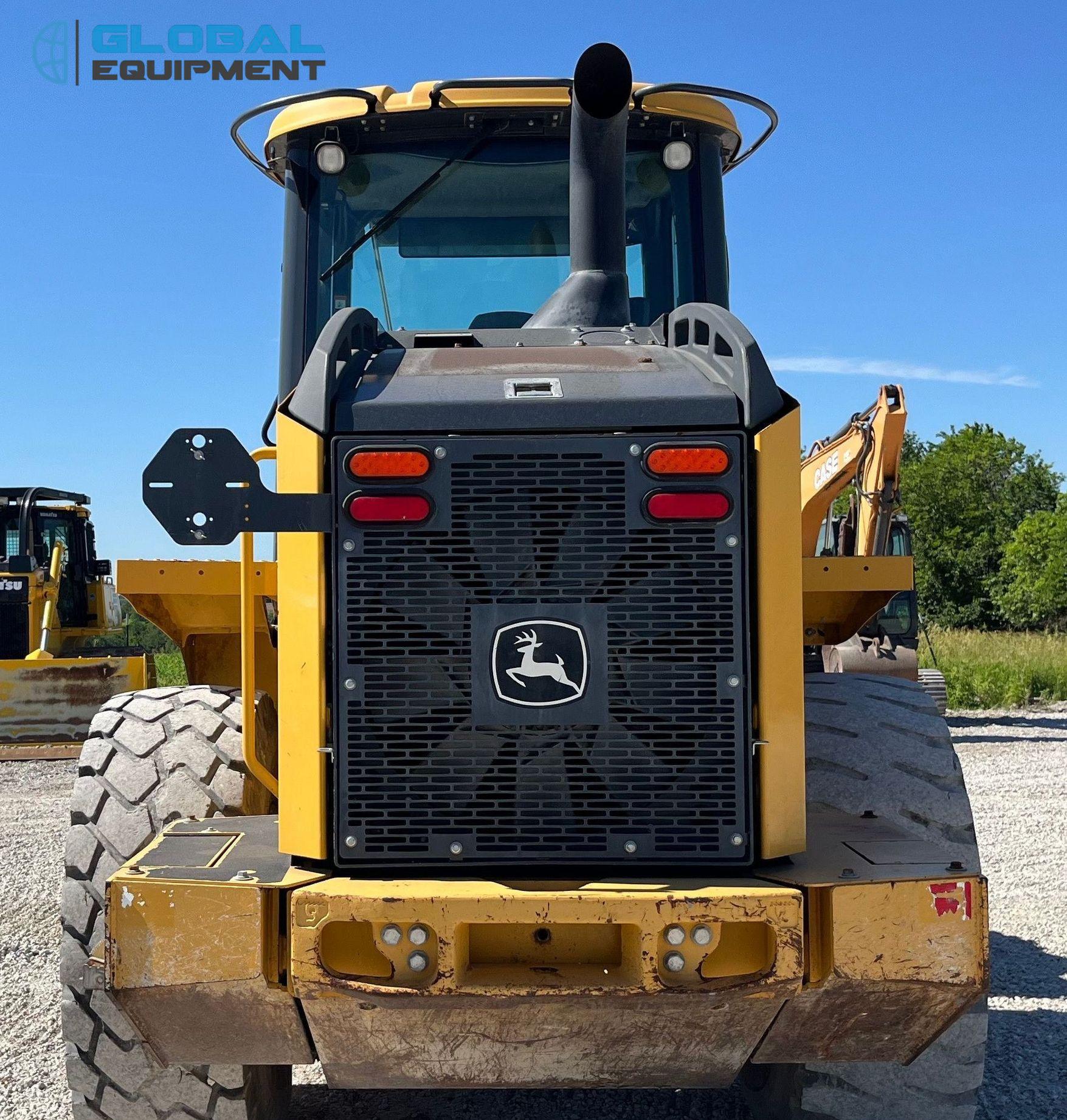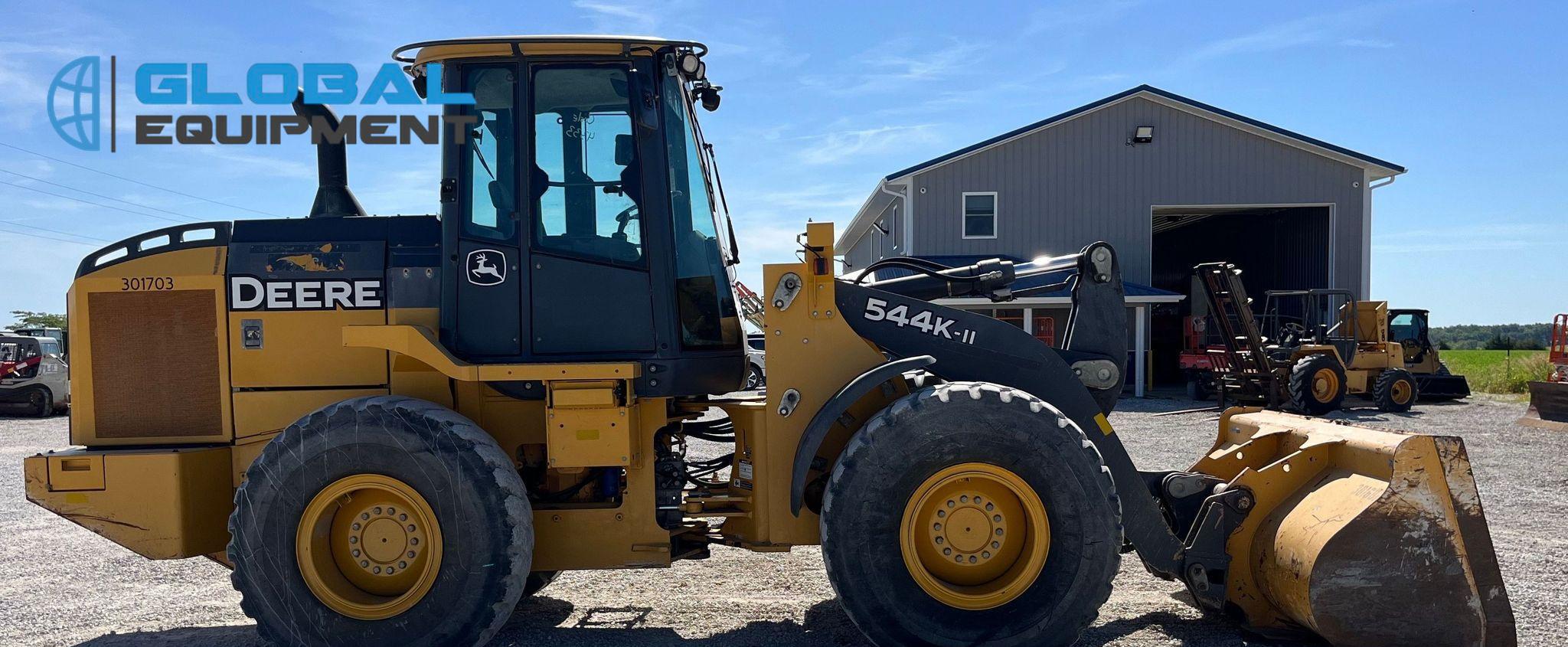 2017 John Deere 544K-II wheel loader, 6,797 Hours on meter, Powershift Transmission, Enclosed Cab with AC and Heat, Joystick Bucket Controls, Ride Control, Hydraulic Quick Coupler, Equipped with 105.5" Self-Leveling Bucket (Bolt-on Cutting Edge). Riding on 20.5R25 Tires.