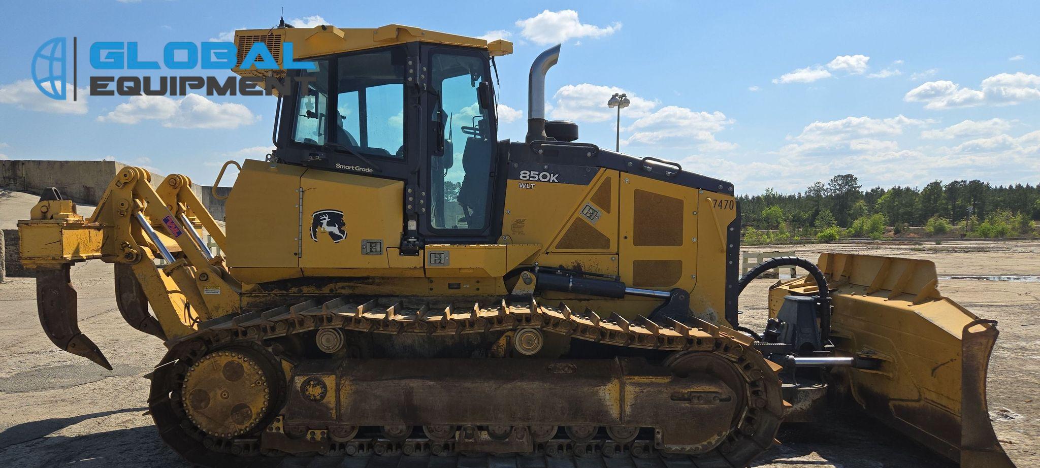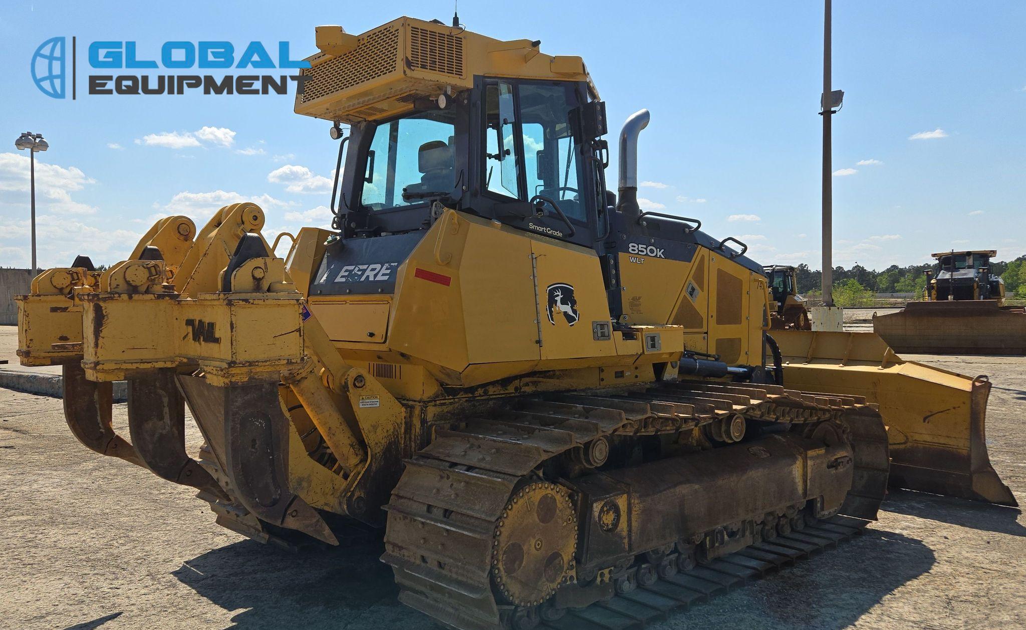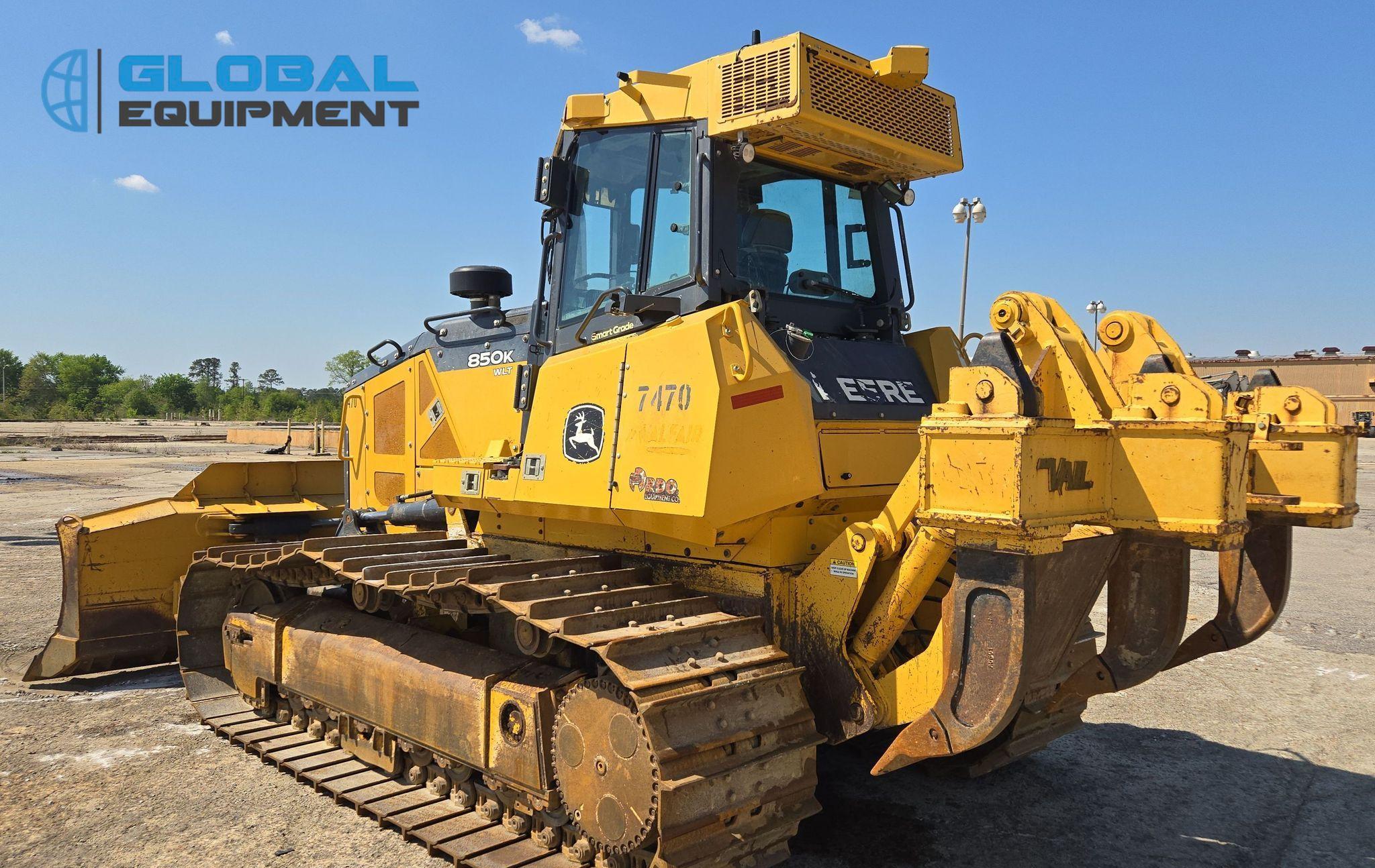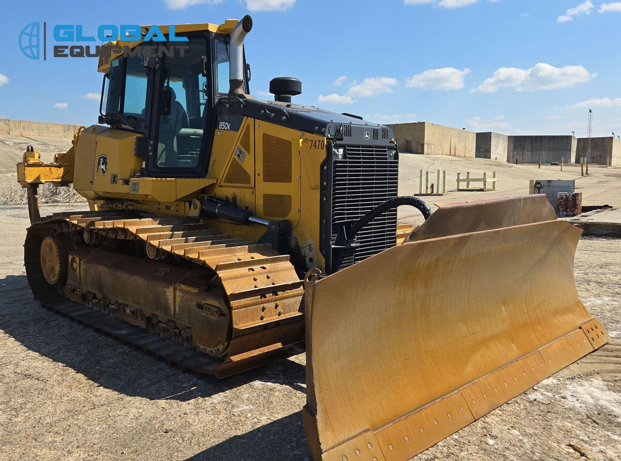 2018 John Deere 850K crawler dozer, 7,955 Hours on meter, Hydrostatic Transmission, Enclosed Cab with AC and Heat, Equipped with Topcon GPS Grade Control (3DMC Monitor, G3-A1M Antenna, Receivers), Joystick Steering, 6-Way Straight Blade (157" Width), and Rear Ripper with 3 Shanks. 30" Wide Tracks with Single Grouser Pads.