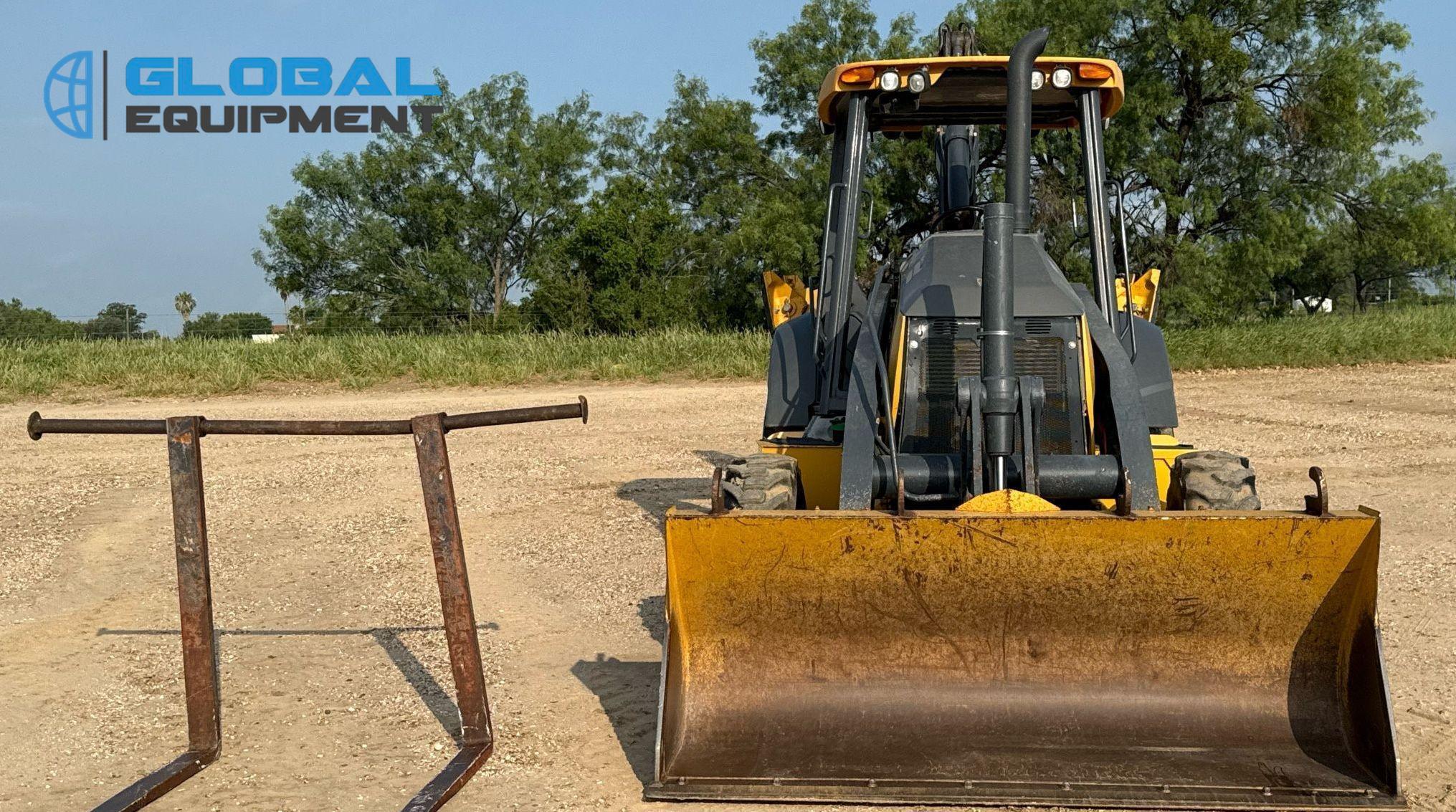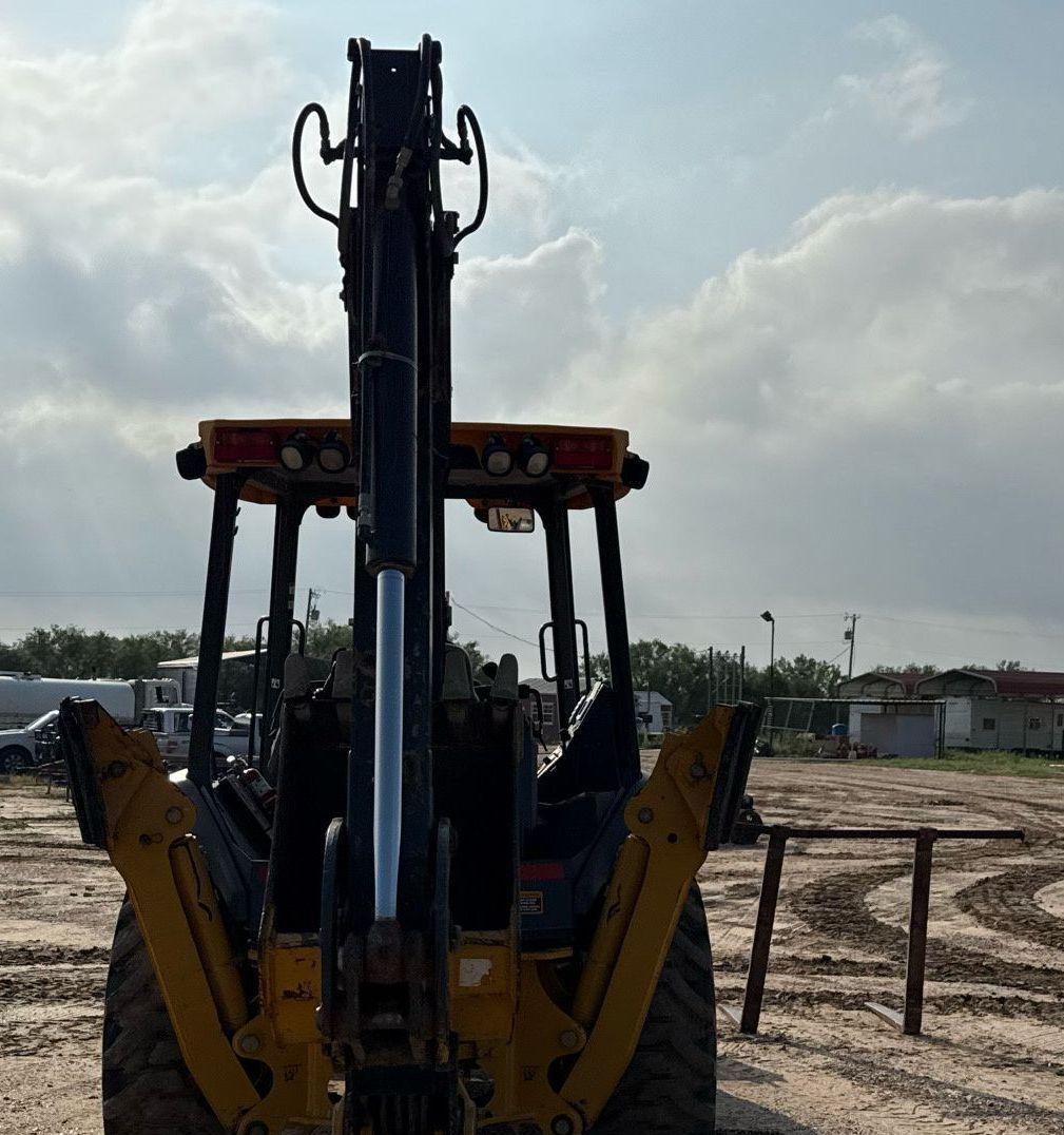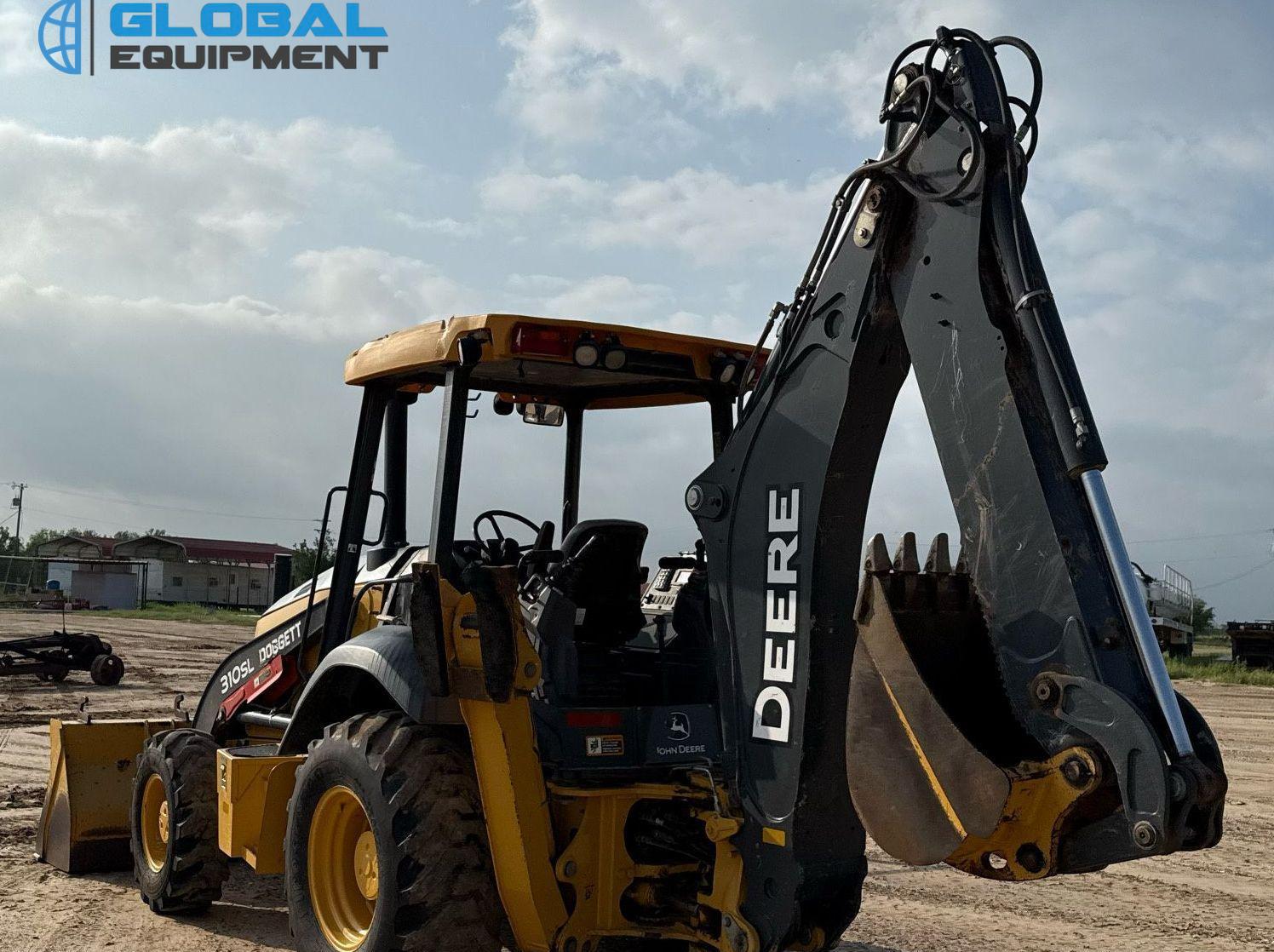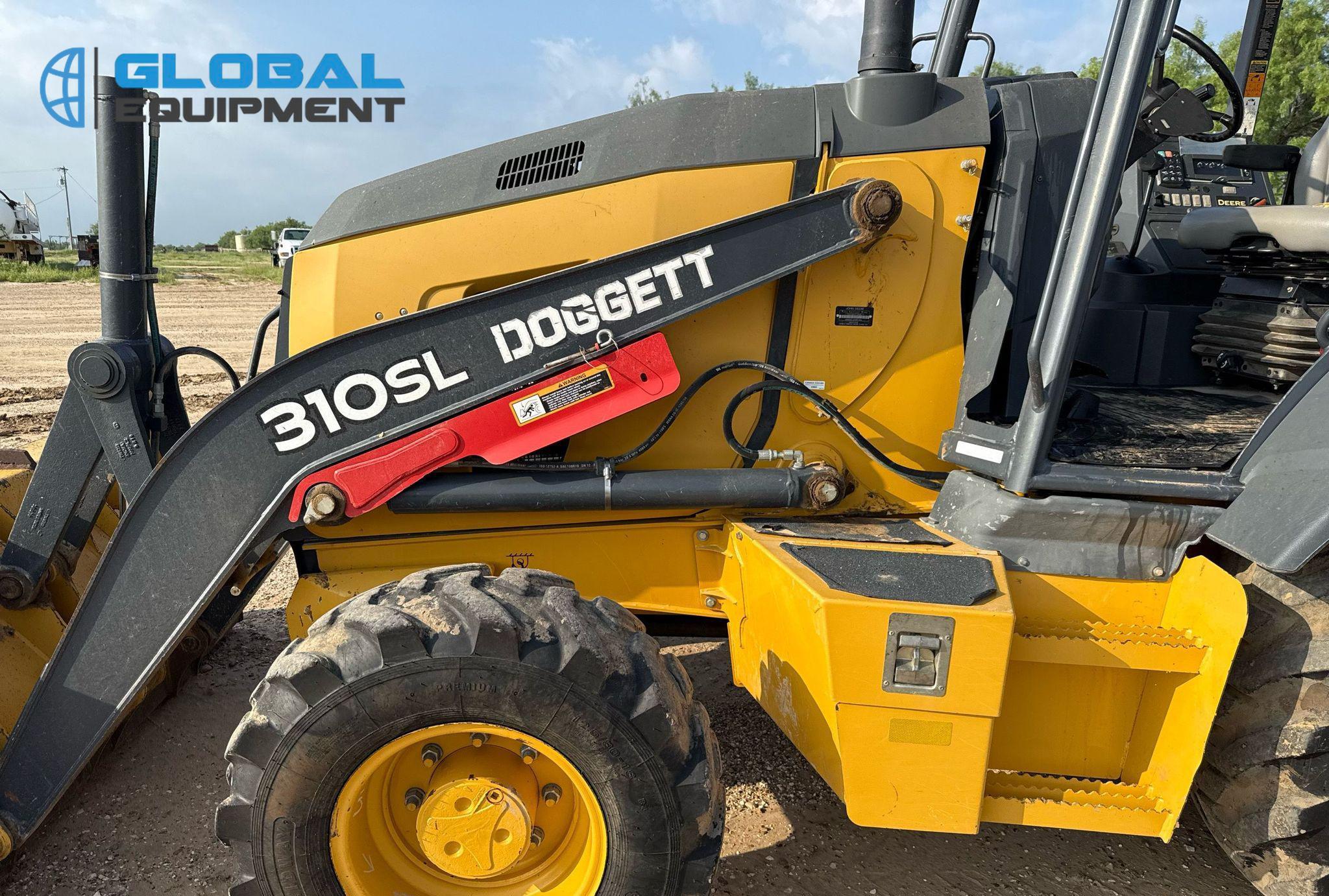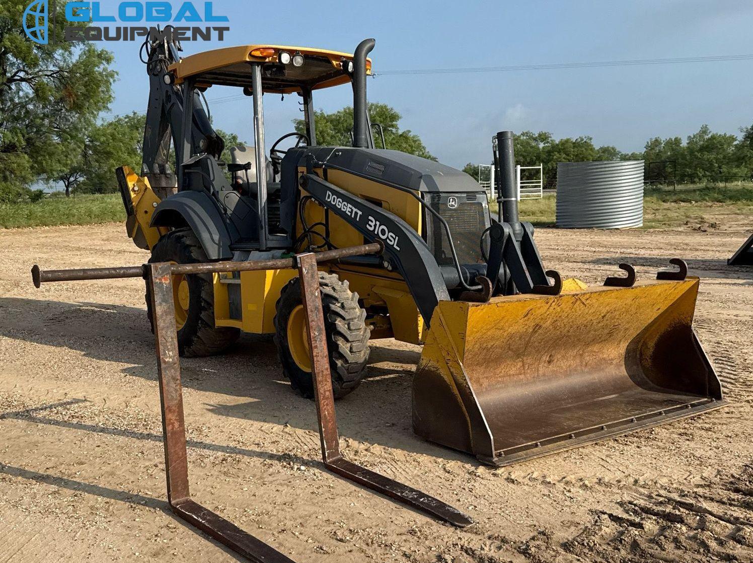 2019 John Deere 310SL backhoe loader, 1,490 Hours on meter, Powershift Transmission (4F - 4R), Four-Wheel Drive with Differential Lock, OROPS with Pilot Control Backhoe Controls and Pattern Changer. Equipped with John Deere 92" Loader Bucket (13 cu.yd. Capacity, Bolt-on Cutting Edge), 42" Forks, and Extendable Stick Backhoe with 24" Bucket (5 Teeth). Riding on Front 12.5/80-18 and Rear 19.5L-24 Tires.