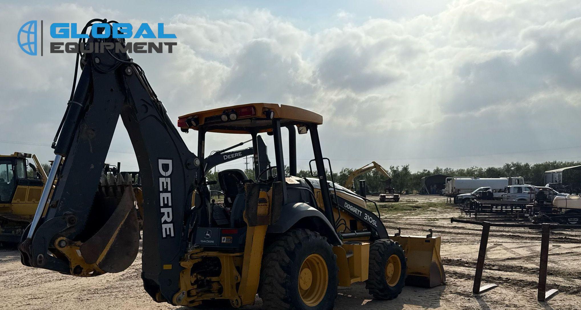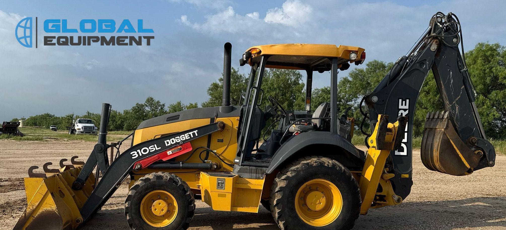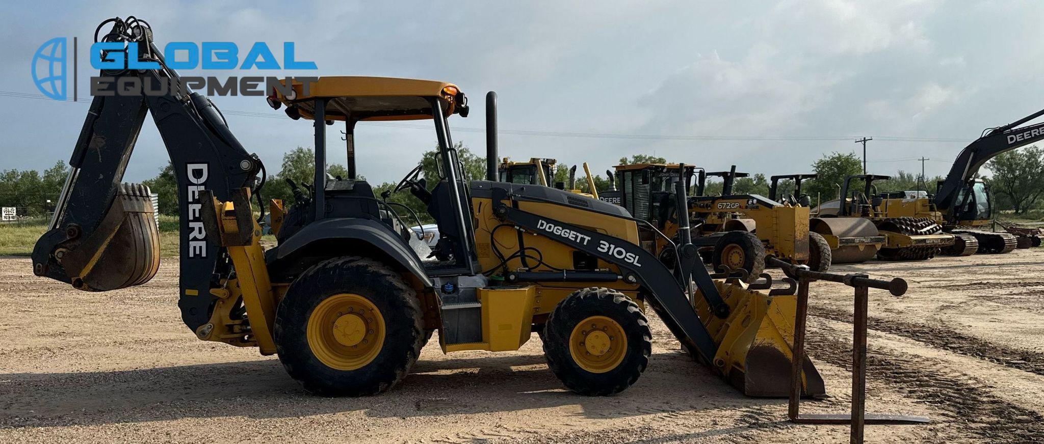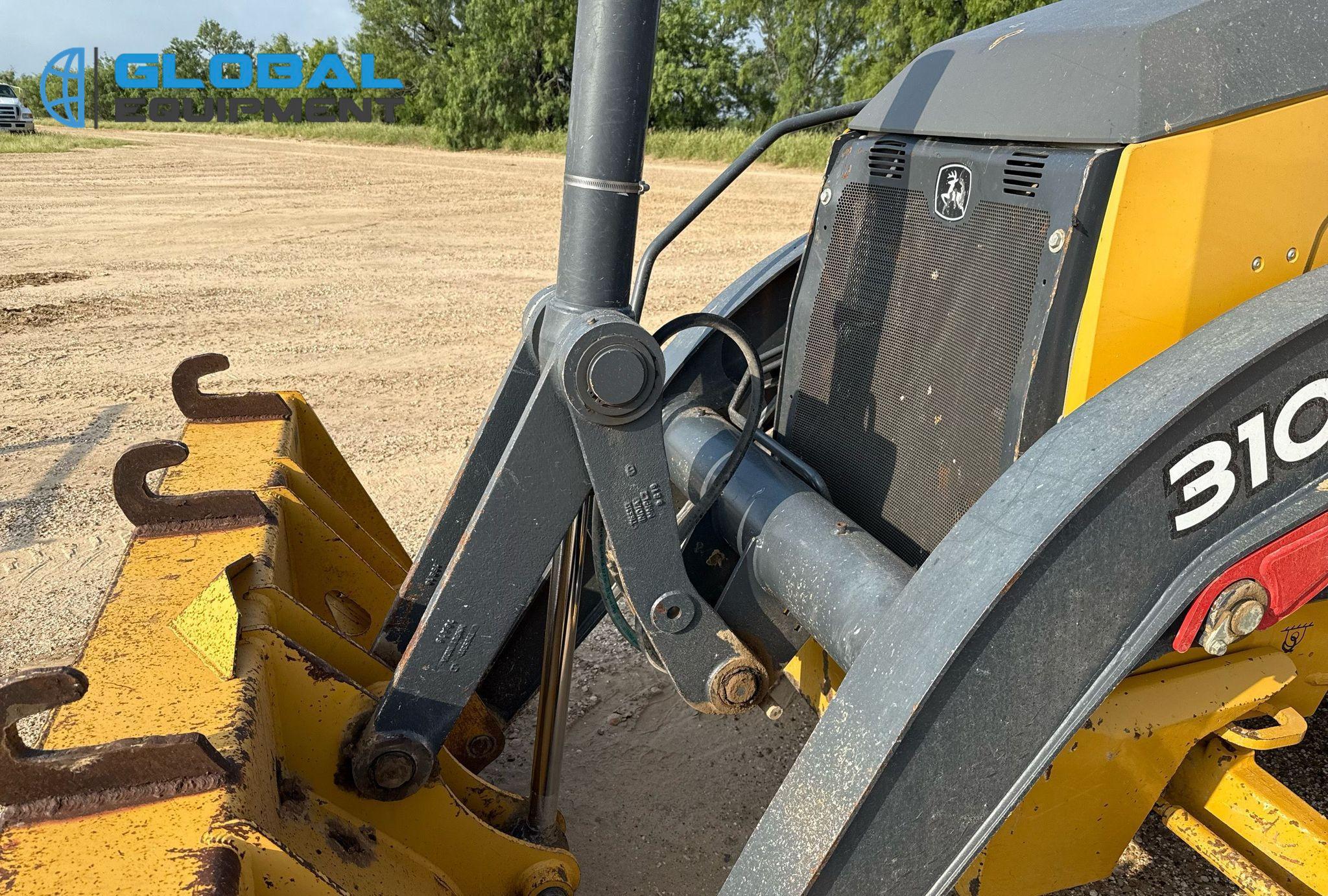 2019 John Deere 310SL backhoe loader, 1,490 Hours on meter, Powershift Transmission (4F - 4R), Four-Wheel Drive with Differential Lock, OROPS with Pilot Control Backhoe Controls and Pattern Changer. Equipped with John Deere 92" Loader Bucket (13 cu.yd. Capacity, Bolt-on Cutting Edge), 42" Forks, and Extendable Stick Backhoe with 24" Bucket (5 Teeth). Riding on Front 12.5/80-18 and Rear 19.5L-24 Tires.