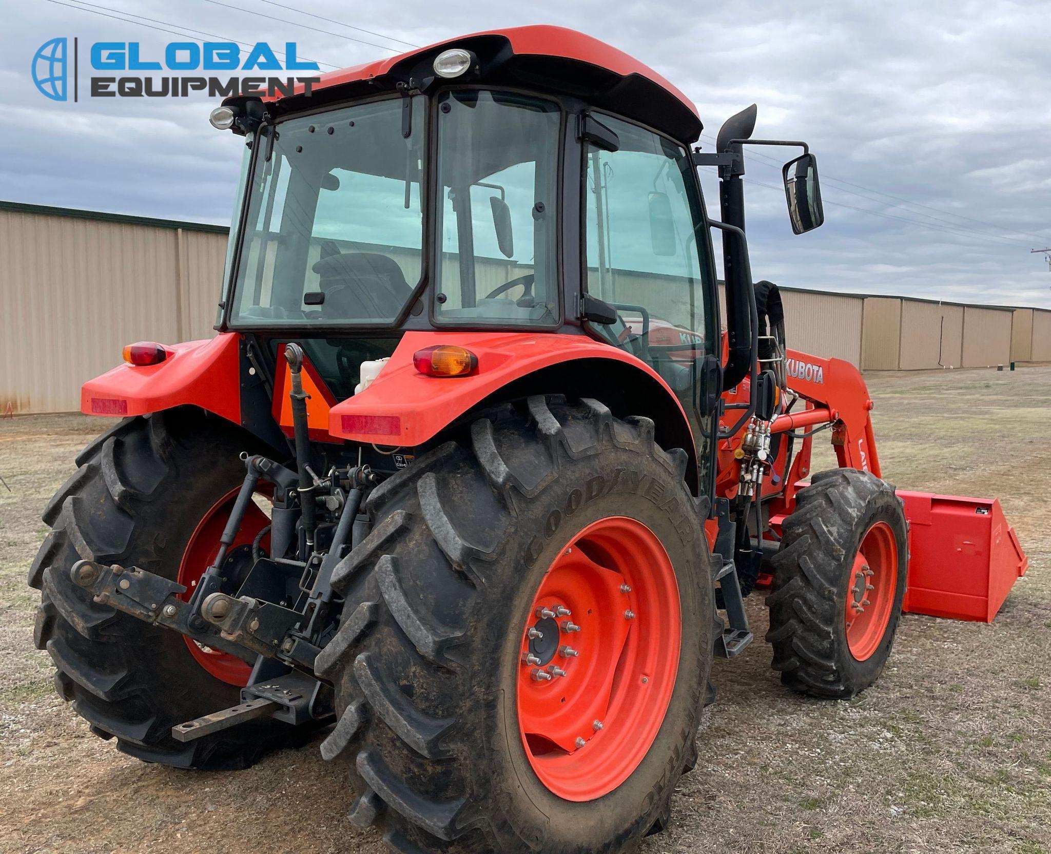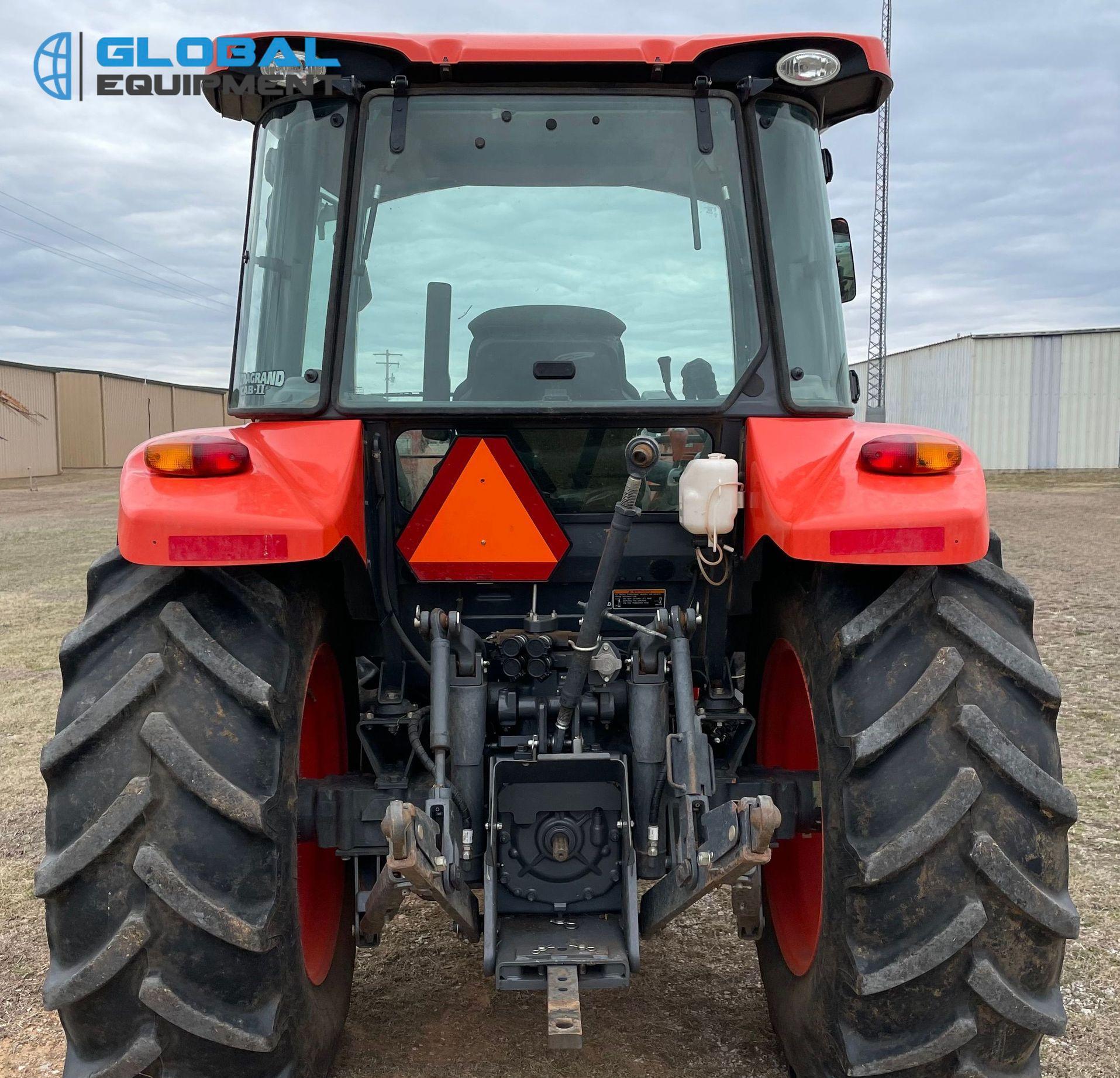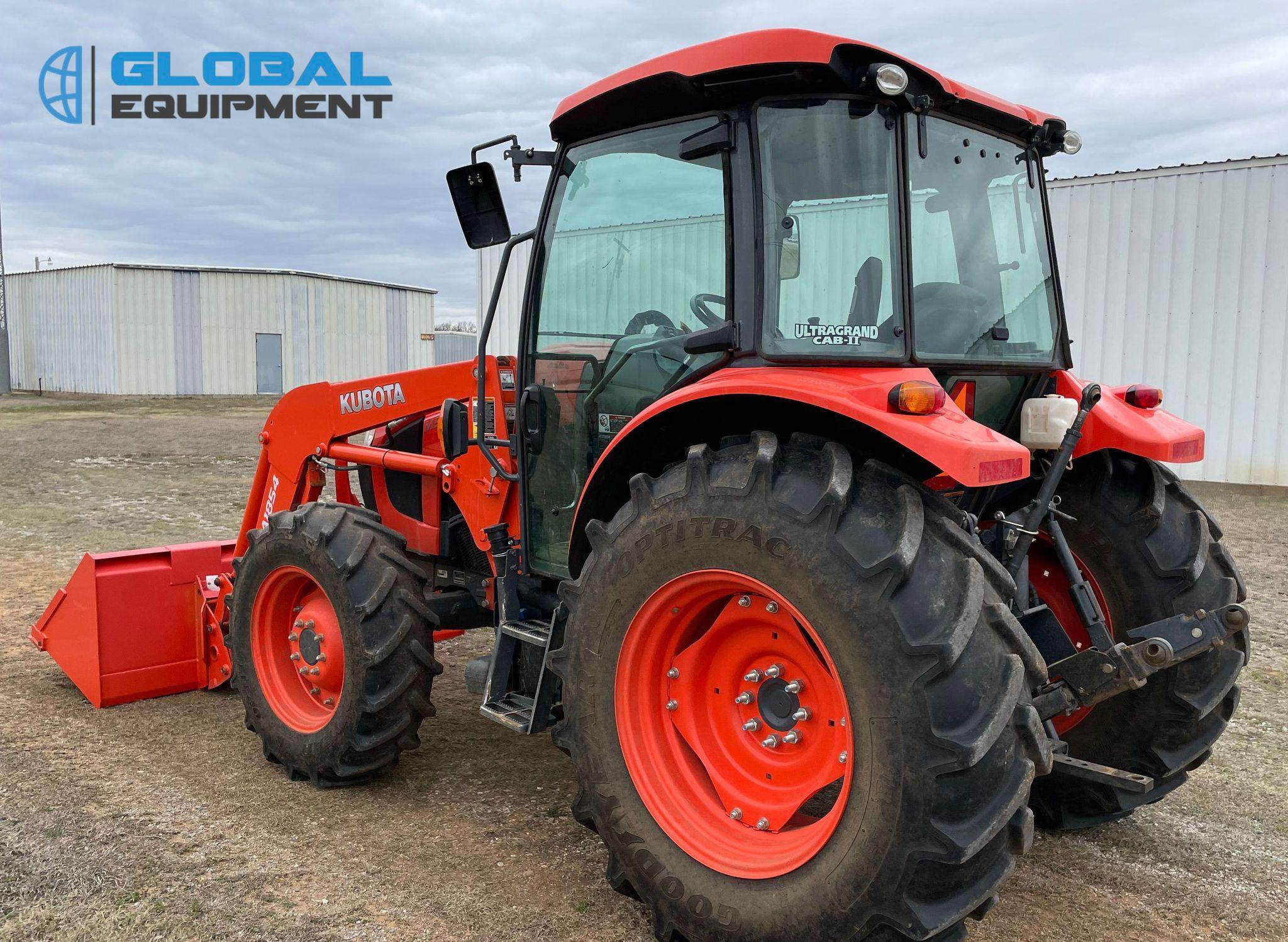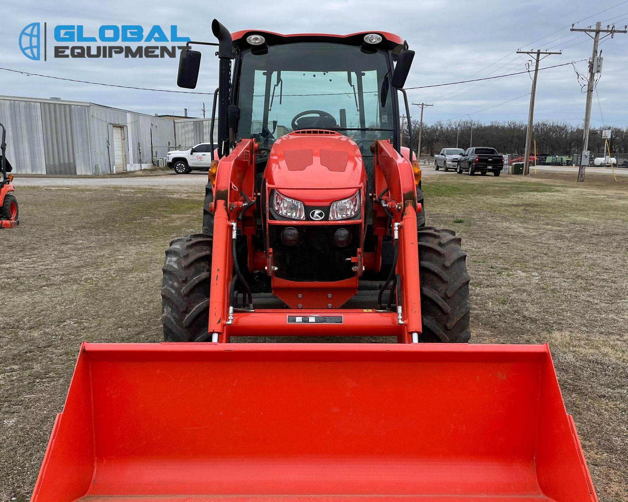2019 Kubota M5-091D MFWD tractor, 2,040 Hours on meter, Synchro Transmission with Left-Hand Reverser and Differential Lock, Enclosed Cab with AC and Heat, Equipped with 540 PTO, Three-Point Hitch with Top Link, 2 Rear Hydraulic Remote Sets, and Kubota LA1854 Loader with Joystick Controls and 82" Bucket. Riding on Front 12.4-24 and Rear 18.4-34 Tires.