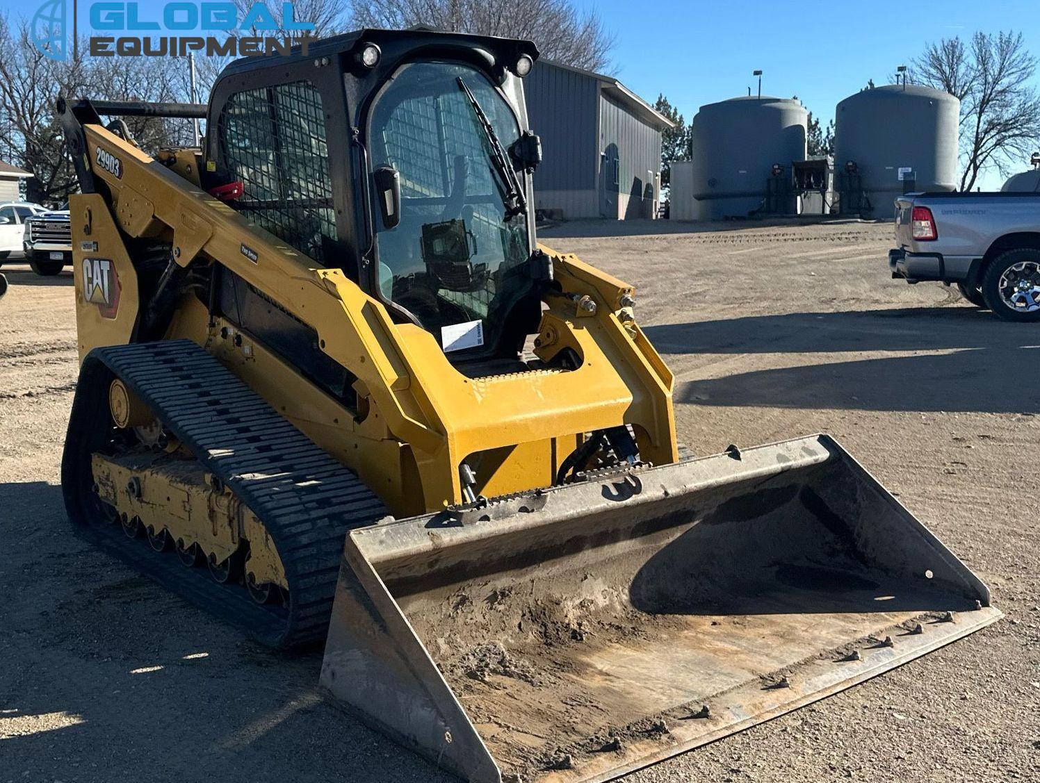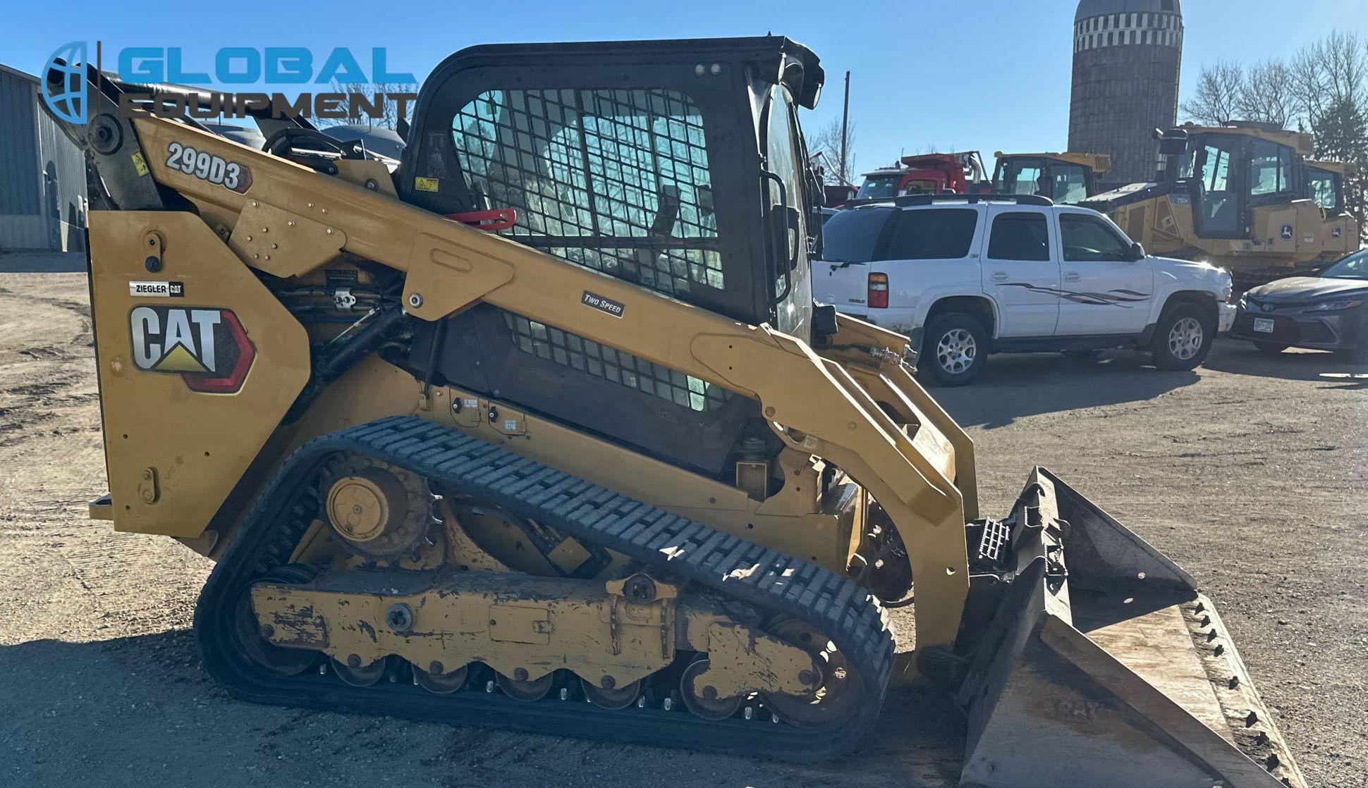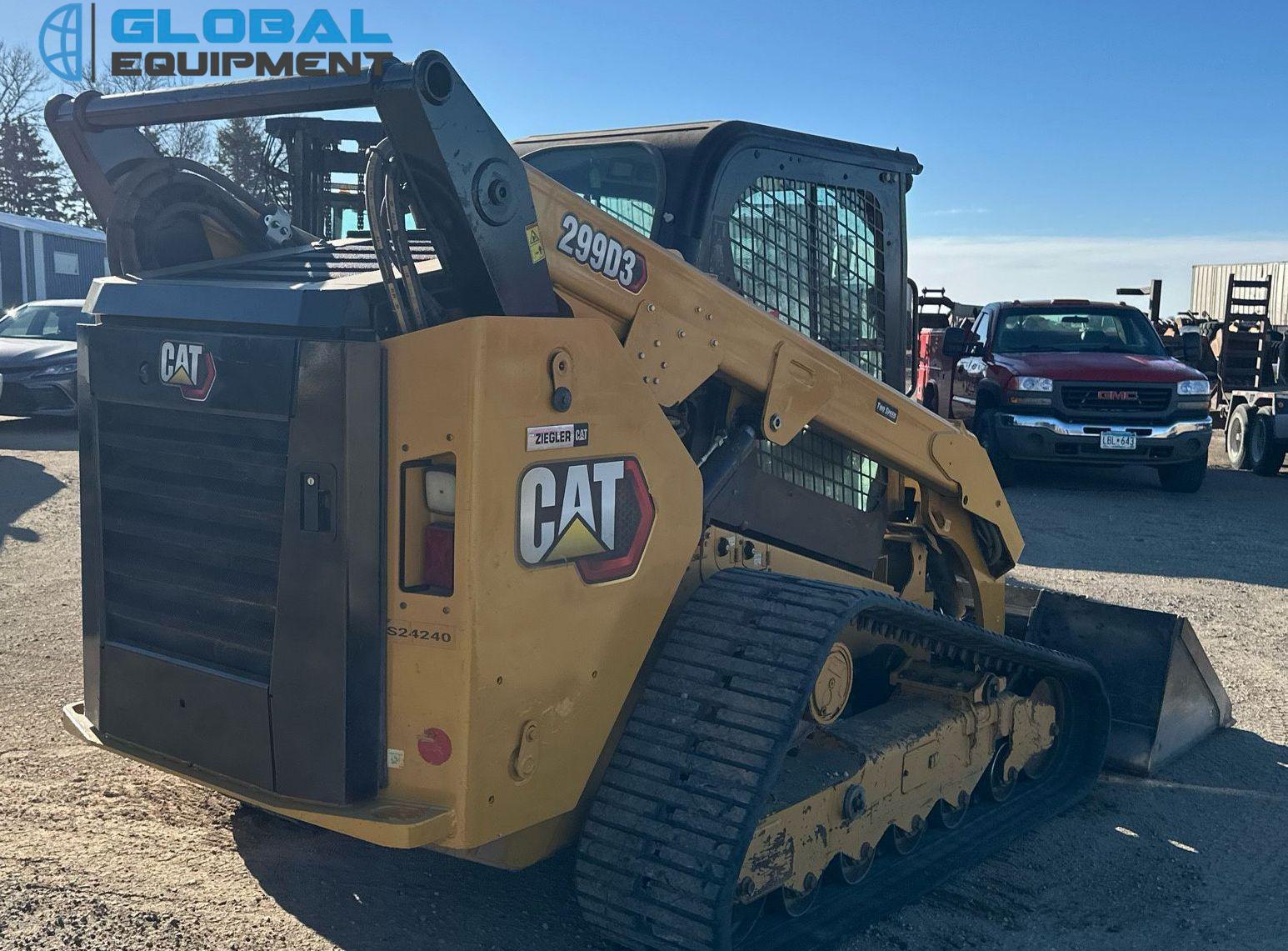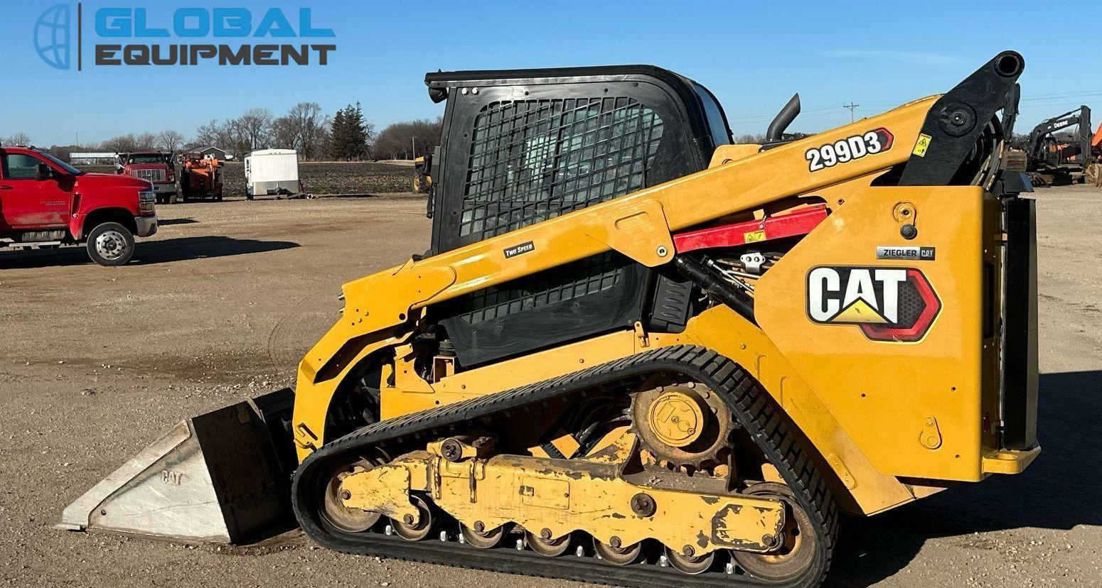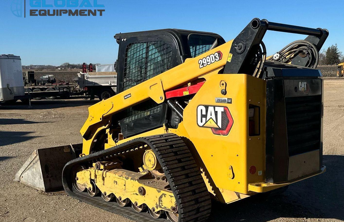 2020 Caterpillar 299D3 tracked skid steer loader, 3,183 Hours on meter, Hydrostatic Transmission with Two-Speed Travel, Enclosed Cab with AC/Heat and Backup Camera, Caterpillar C3.3 3.3L 4-Cylinder Diesel Engine, Hydraulic Quick Coupler, Auxiliary Hydraulics & Electrical Outlet, Equipped with Caterpillar 85" Bucket (Bolt-on Cutting Edge), and 17.5" Wide Tracks.