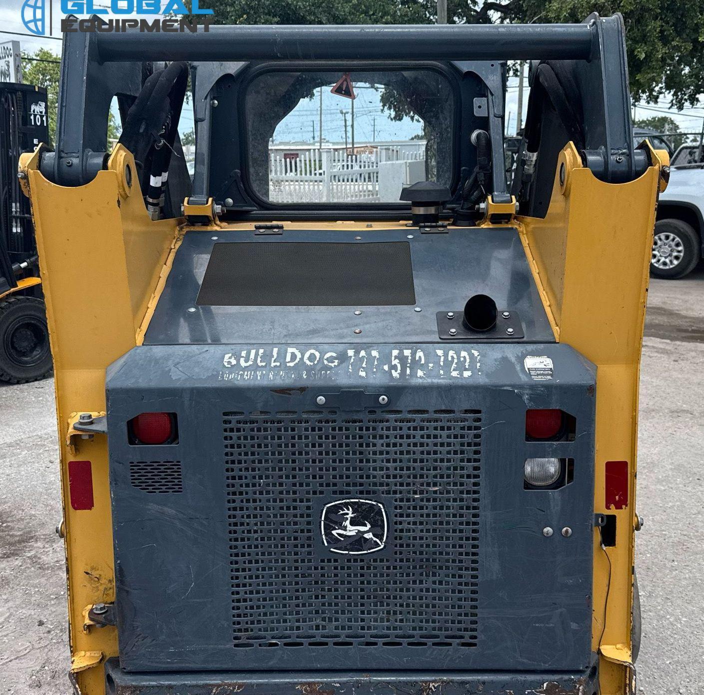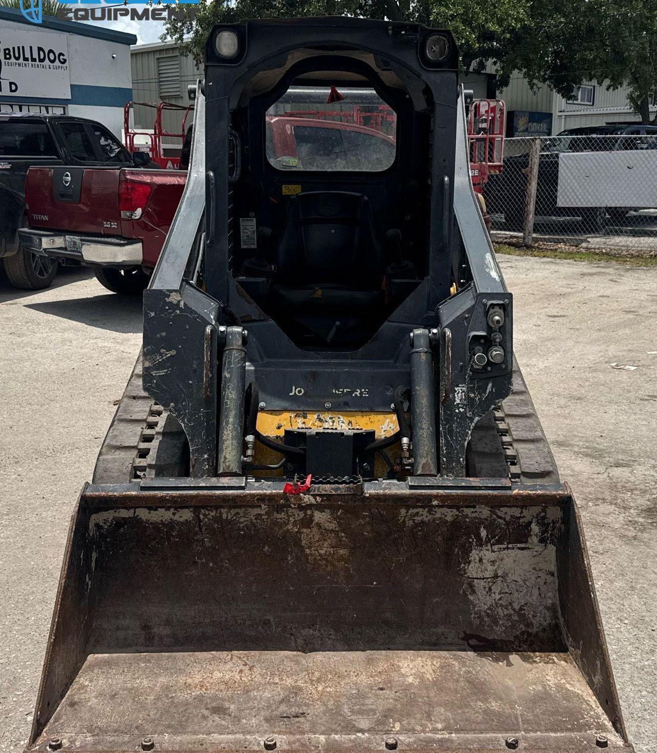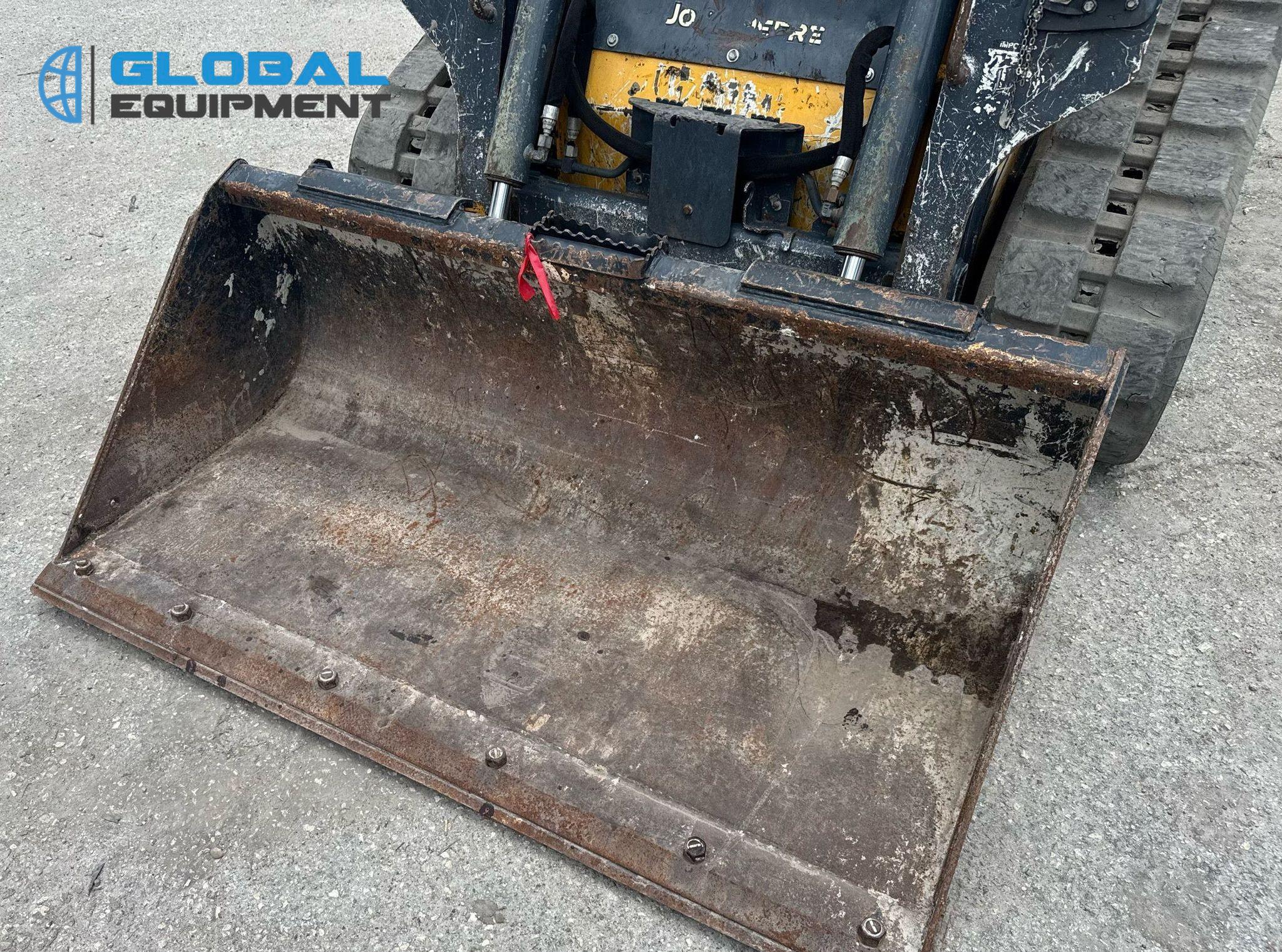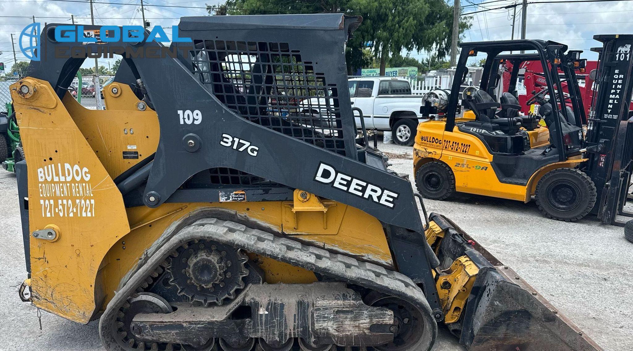 2020 John Deere 317G tracked skid steer loader, 1,875 Hours on meter, Hydrostatic Transmission with Two-Speed Travel, OROPS, Yanmar 4RHMAC 2.091L 4-Cylinder Diesel Engine, Manual Quick Coupler, Auxiliary Hydraulics & Electrical Outlet, Equipped with John Deere 60" Bucket (Bolt-on Cutting Edge), and 12.5" Wide Tracks.