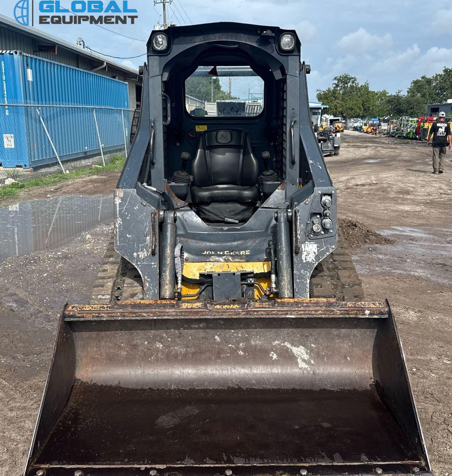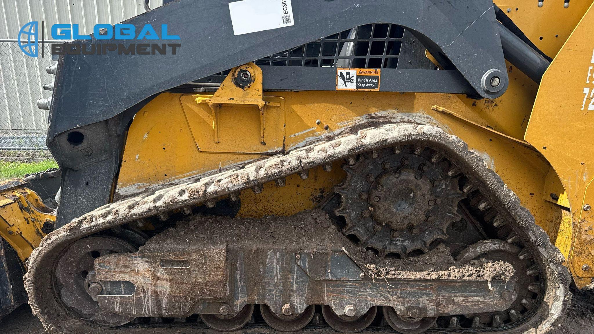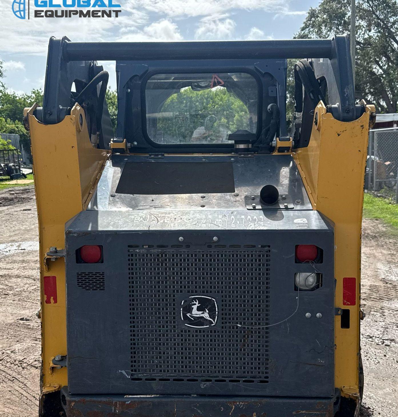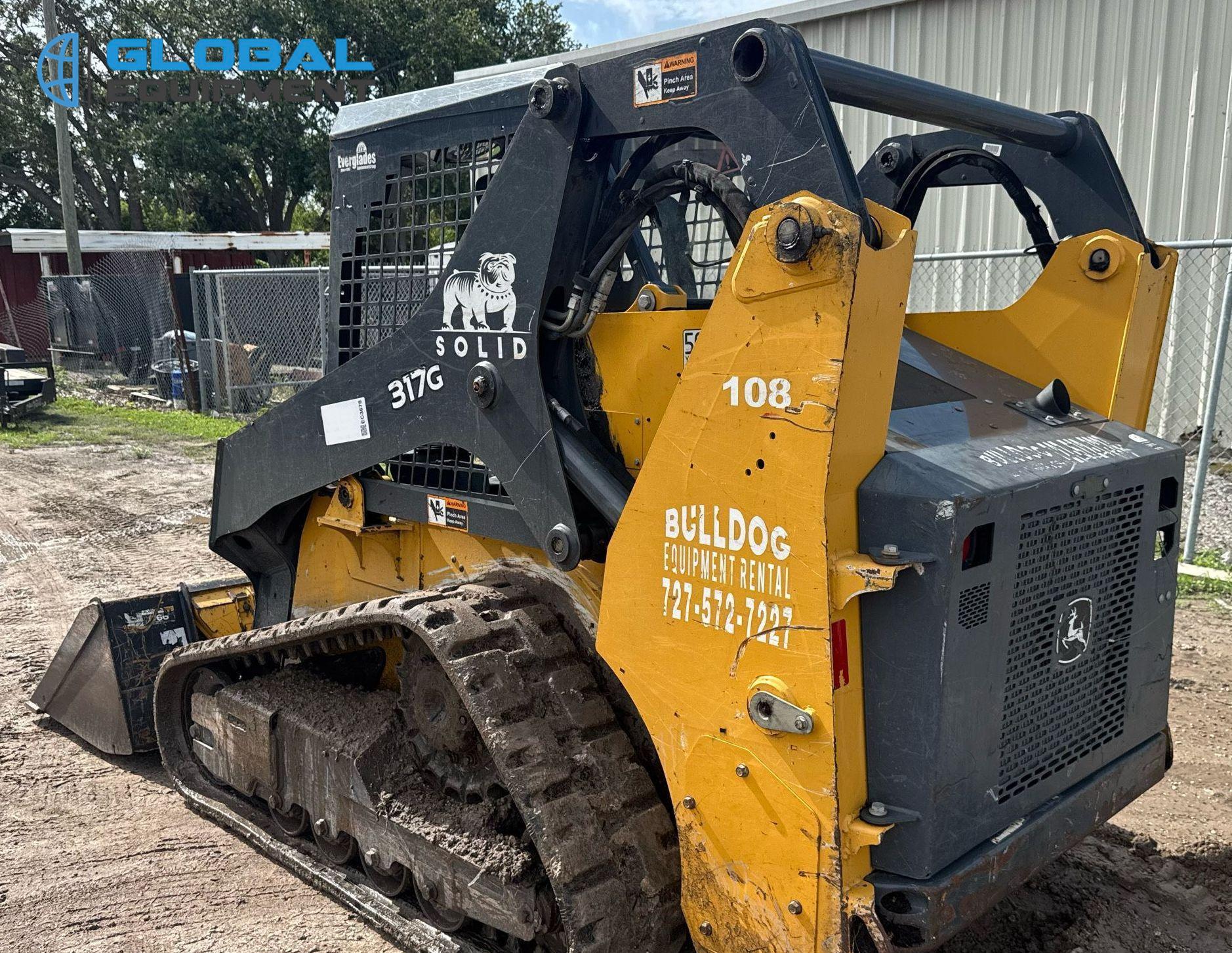 2020 John Deere 317G tracked skid steer loader, 2,034 Hours on meter, Hydrostatic Transmission with Two-Speed Travel, Yanmar 4RHMAC 2.091L 4-Cylinder Diesel Engine, Manual Quick Coupler, Auxiliary Hydraulics & Electrical Outlet, Equipped with John Deere 66" Bucket (Bolt-on Cutting Edge), and 13" Wide Tracks.