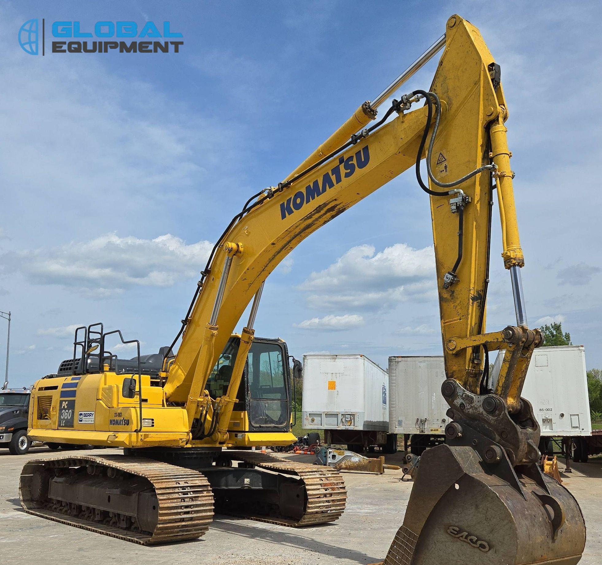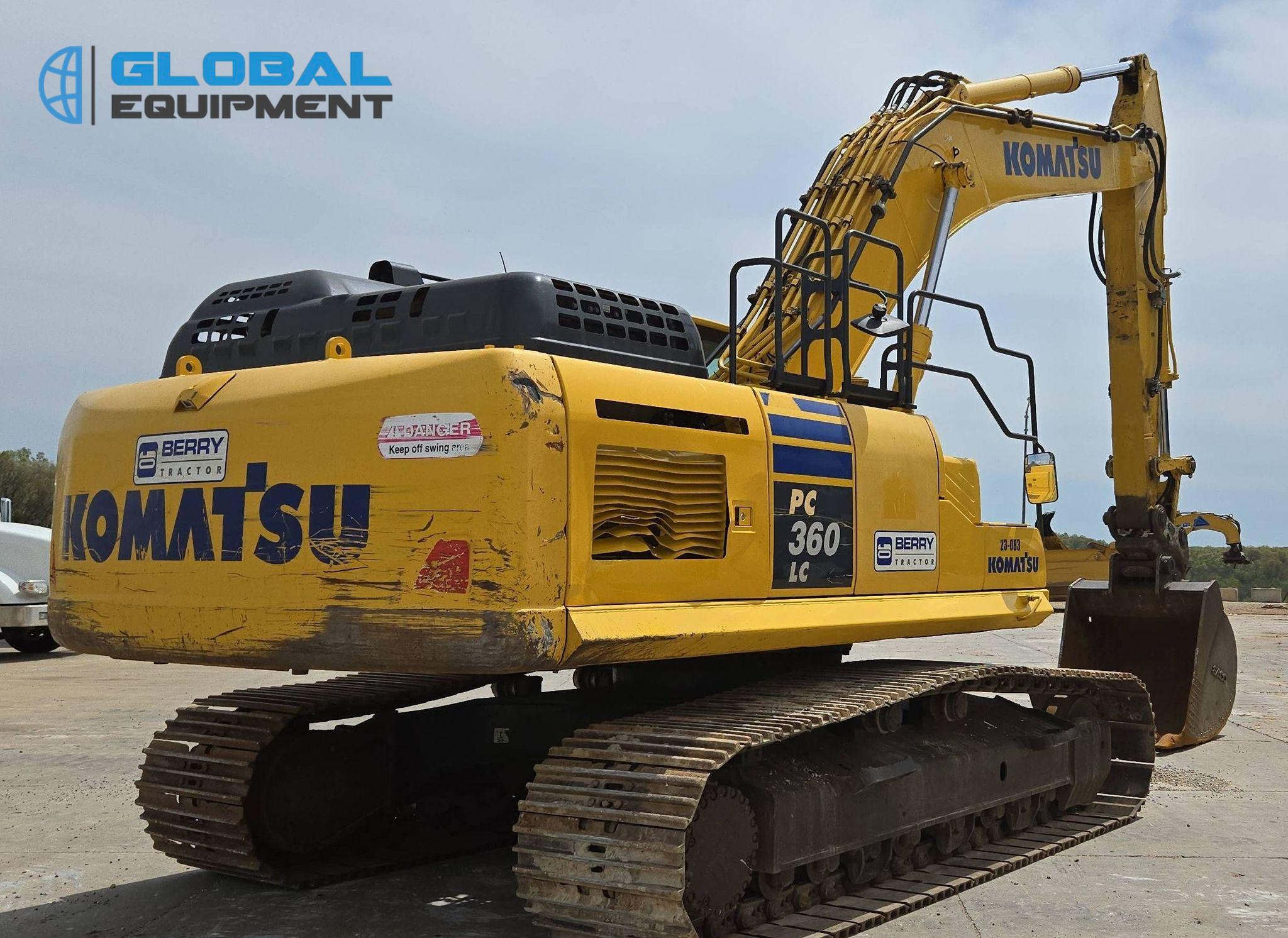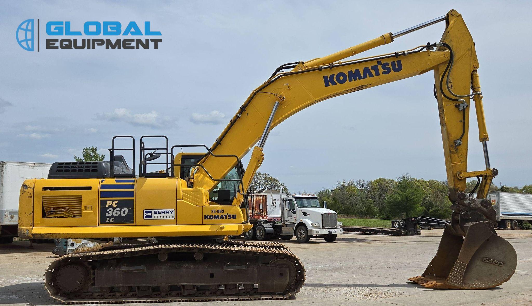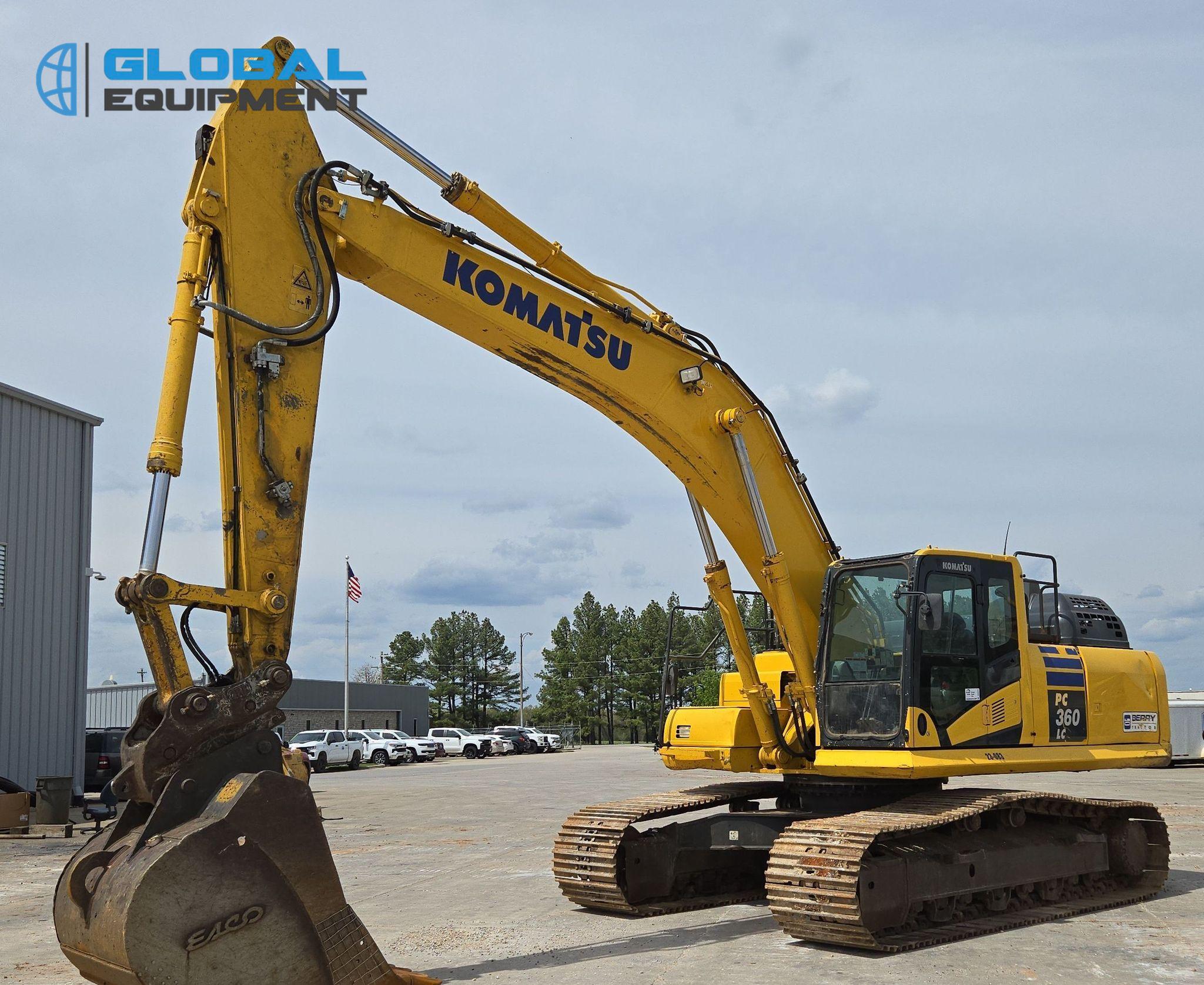 2020 Komatsu PC360LC-11 excavator, 7,184 Hours on meter, Hydrostatic Transmission, Enclosed Cab with AC/Heat and Backup Camera, Komatsu SAA6D114E-6 8.9L 6-Cylinder Diesel Engine (271 HP / 202 kW), Hydraulic Quick Coupler (JRB), Auxiliary Hydraulics, Standard Boom, 10' 6" Stick, Equipped with Esco 53" Bucket (7 Teeth), and 33.5" Triple-Grouser Steel Tracks.