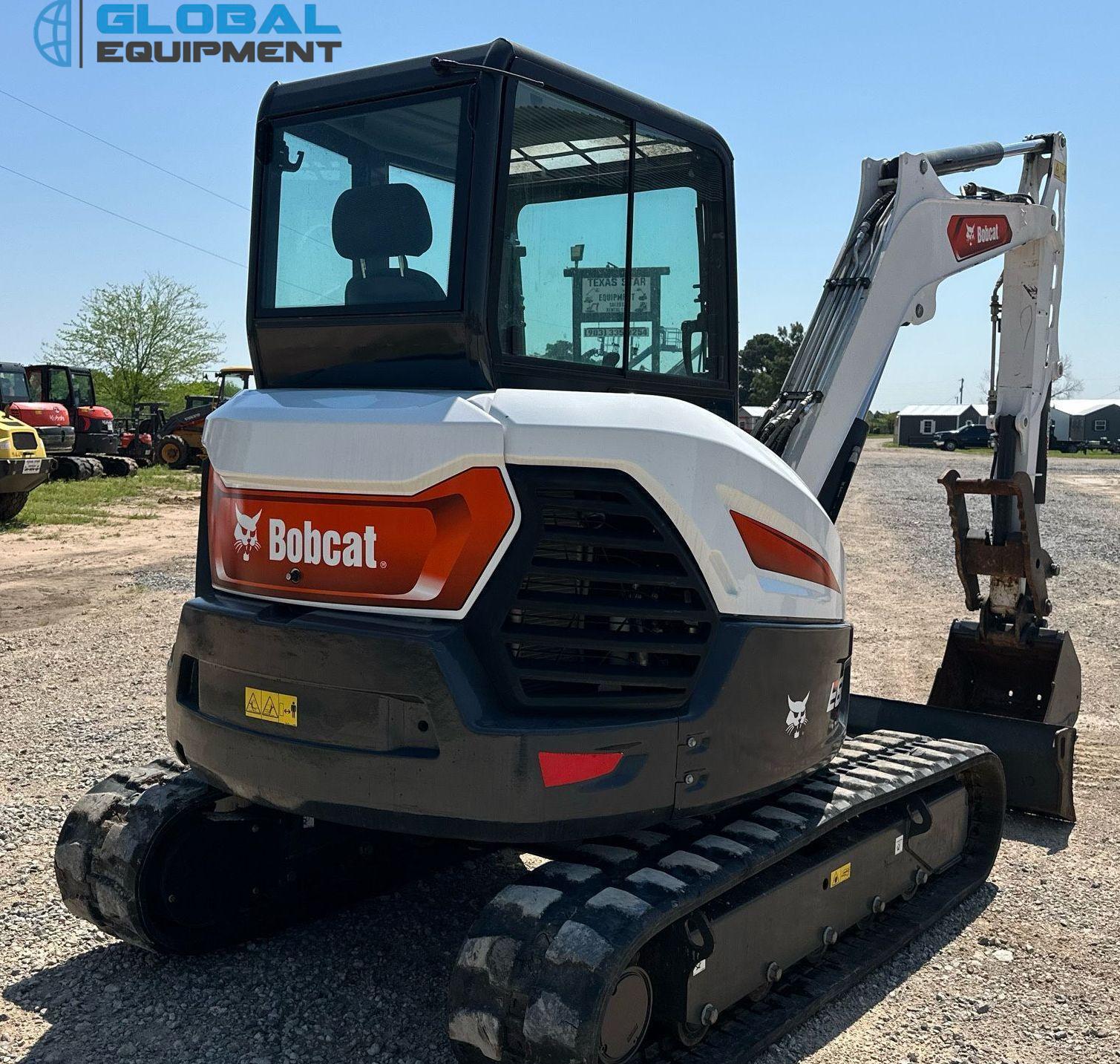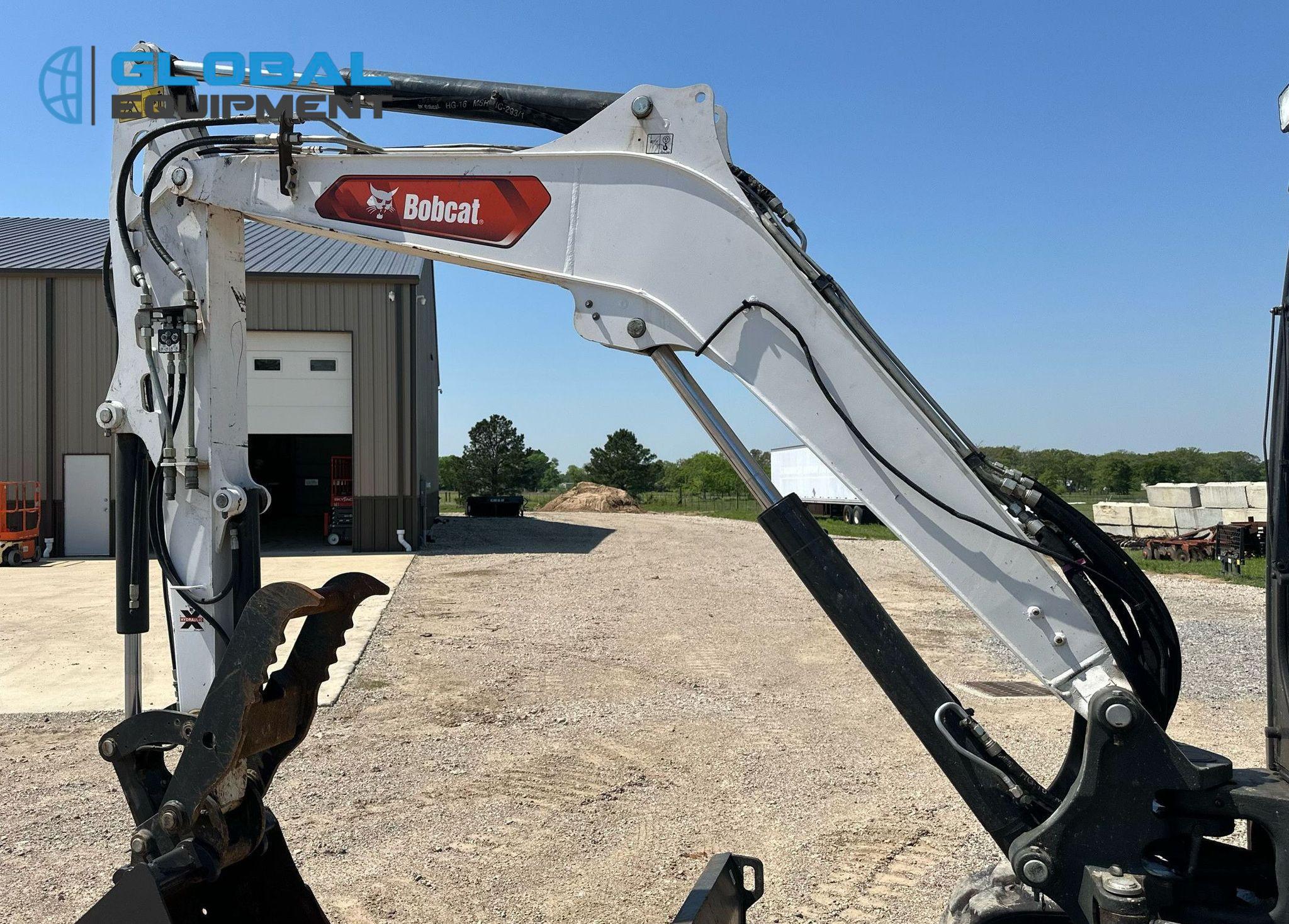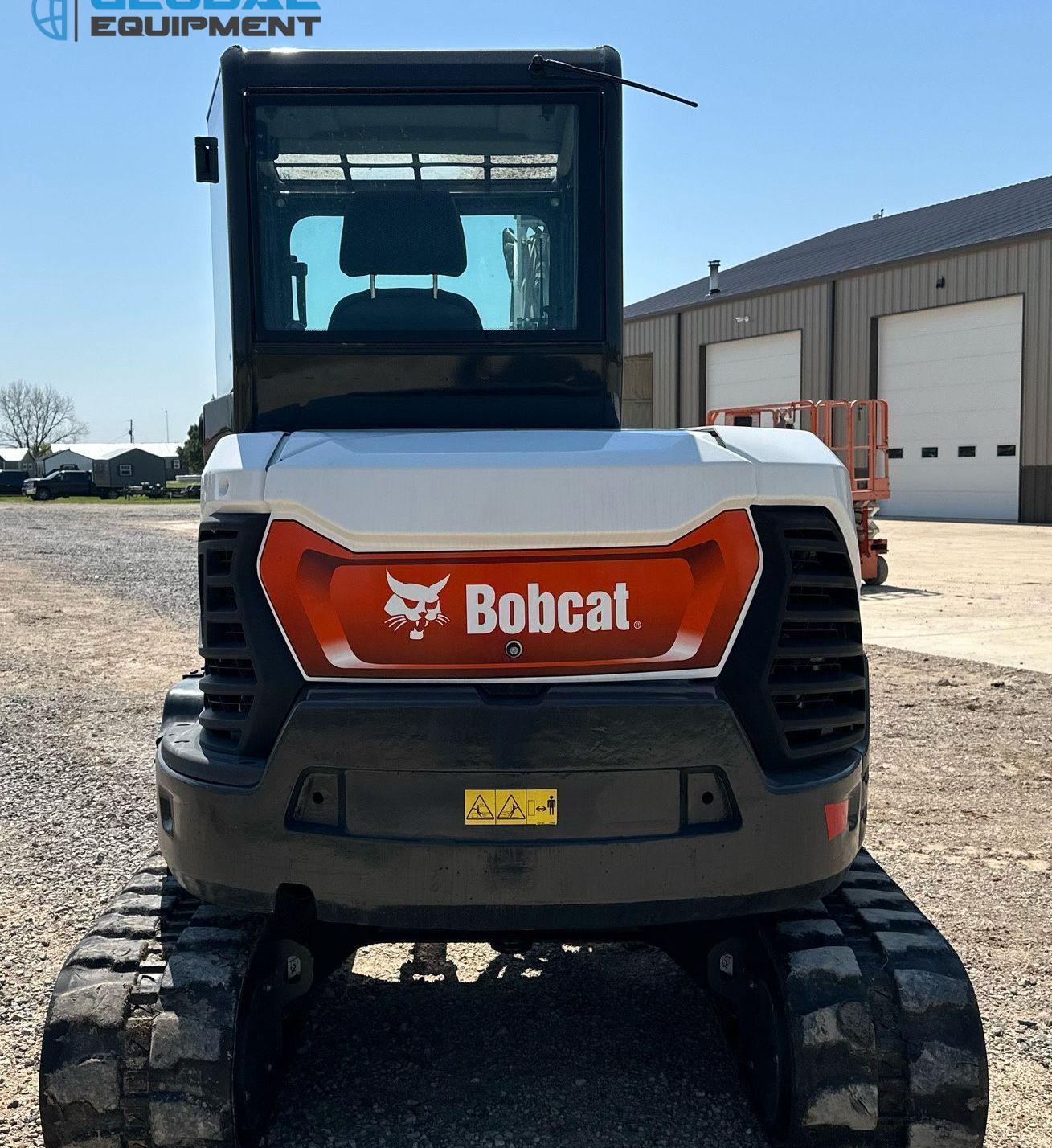 2021 Bobcat E60 mini excavator, 343 Hours on meter, Hydrostatic Transmission, Enclosed Cab with AC/Heat and Pattern Changer, Bobcat MDICL02.4LEA 2.4L 4-Cylinder Diesel Engine (19 kW), Hydraulic Quick Coupler, Auxiliary Two-Way Hydraulics, Backfill Blade (78"), Swing Boom, 75" Stick with Hydraulic Thumb, Equipped with 24" Bobcat Bucket (4 Teeth), and 16" Rubber Tracks.