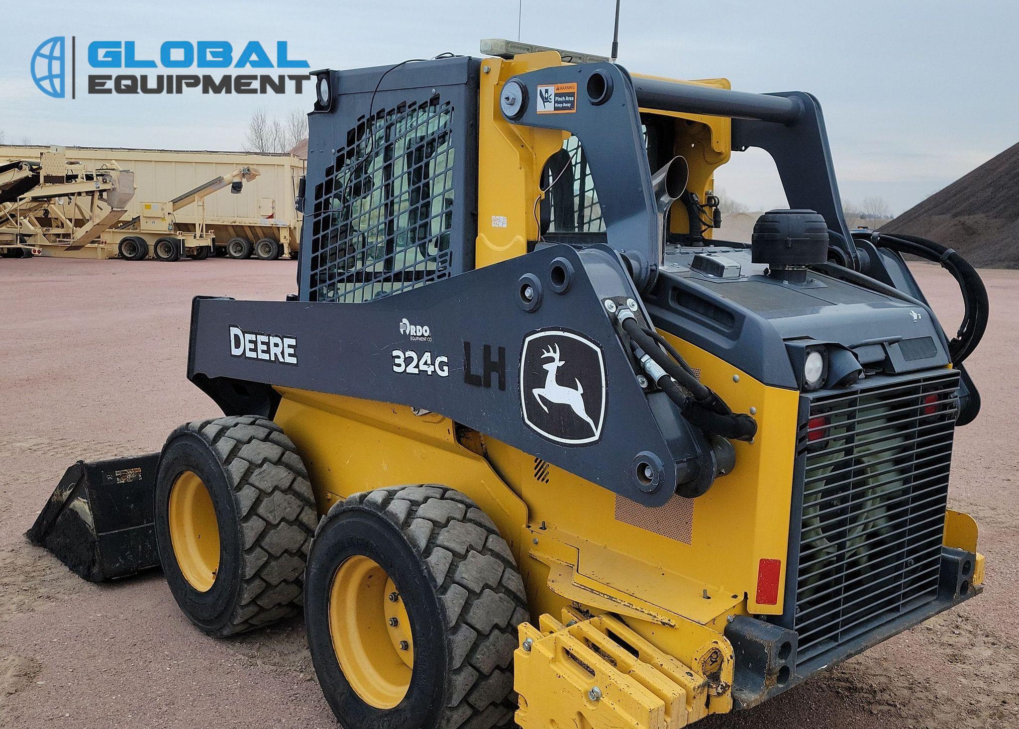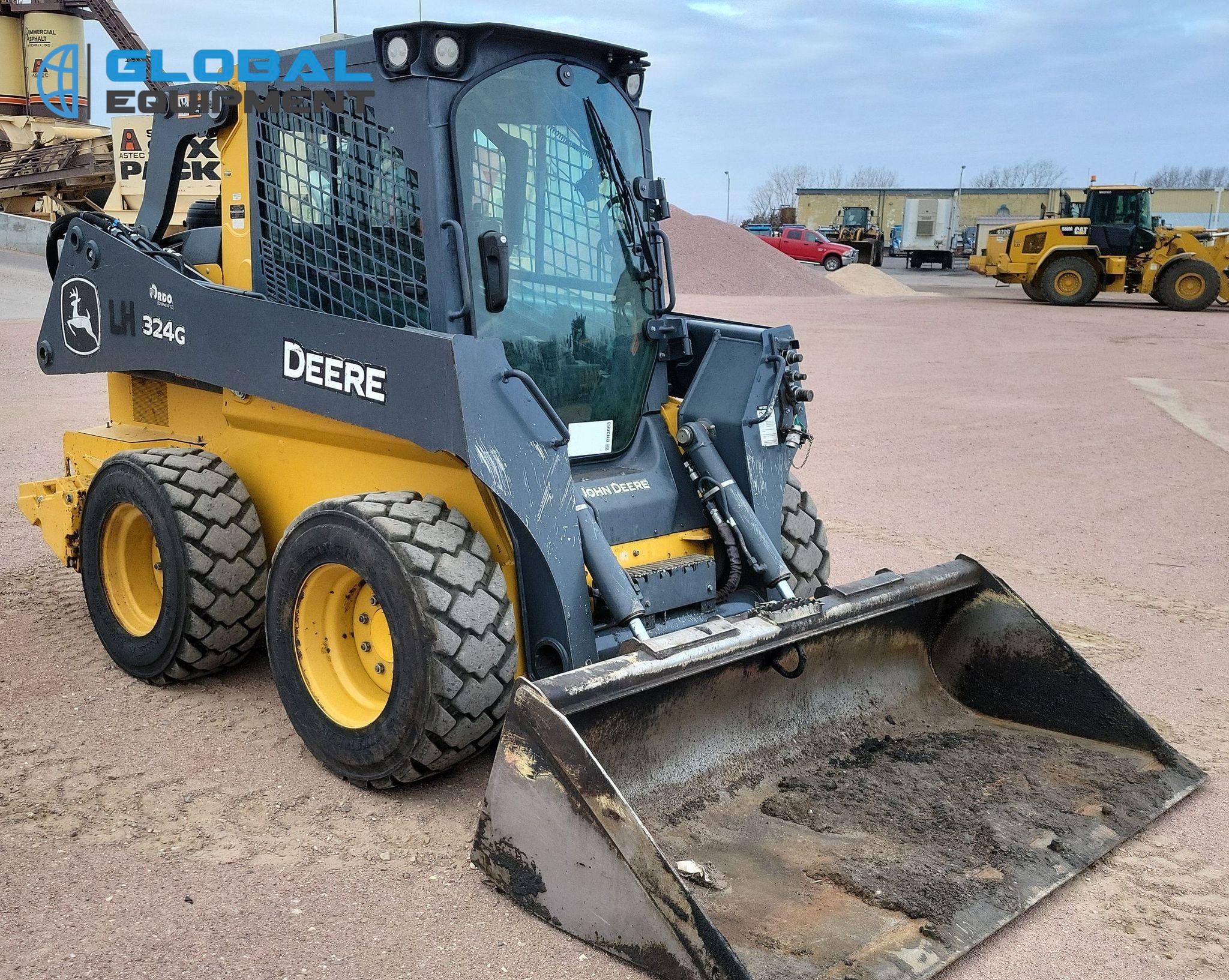 2021 John Deere 324G skid steer loader, 5,076 Hours on meter, Hydrostatic Transmission with Two-Speed Travel, Enclosed Cab with AC/Heat and Backup Camera, Hand Bucket Controls with Pattern Changer, Hydraulic Quick Coupler, Auxiliary Hydraulics & Electrical Outlet, Counterweights, Equipped with John Deere 78" Low Profile Bucket (Bolt-on Cutting Edge), and 12-16.5NHS Tires.