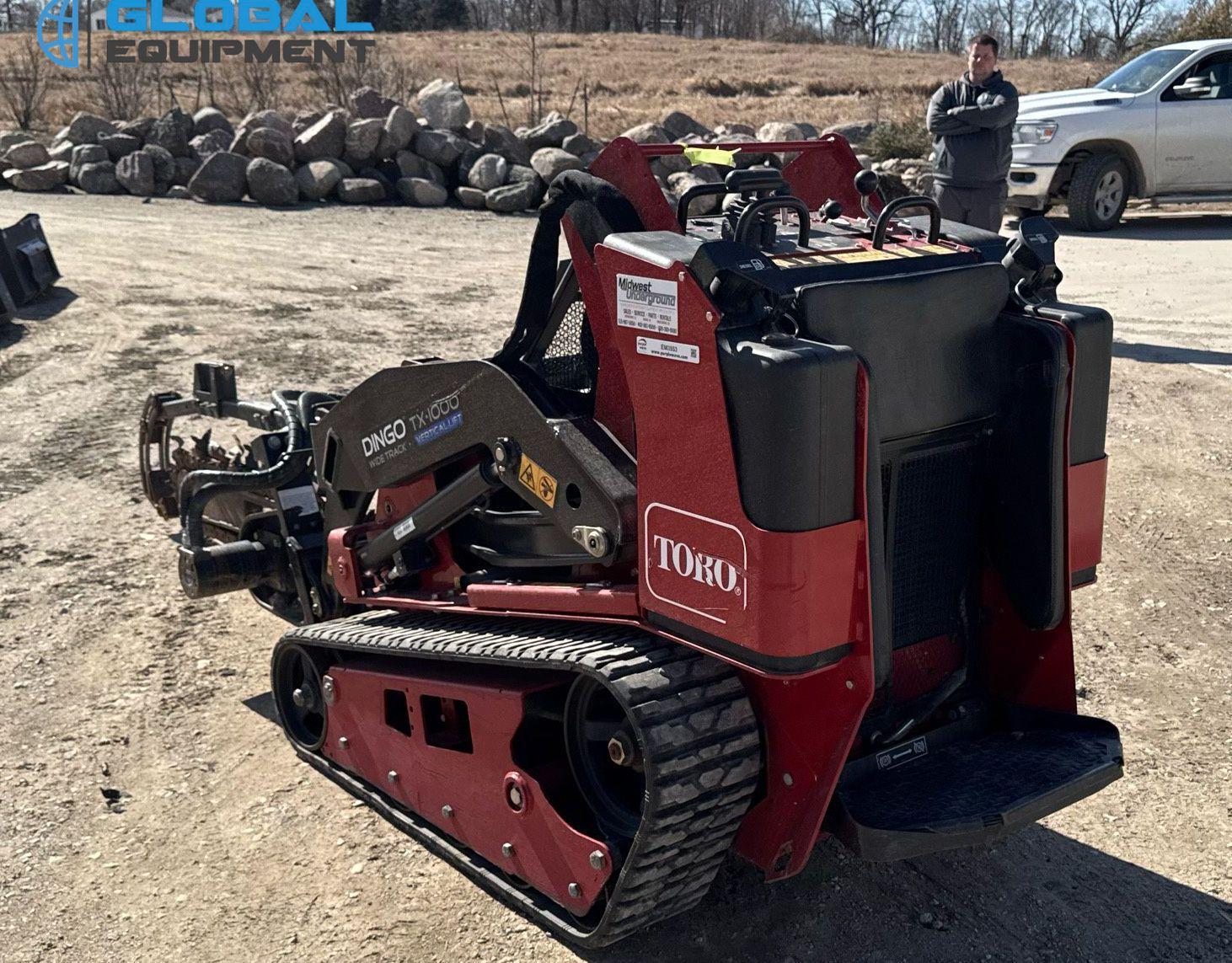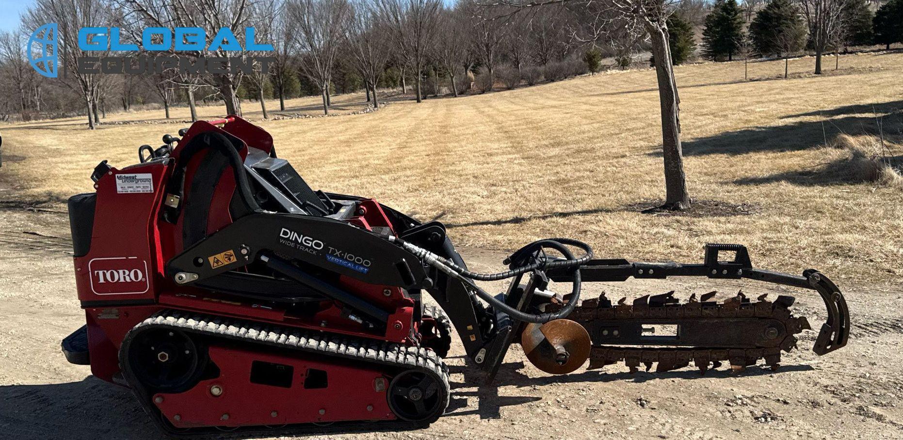 2021 Toro Dingo Wide Track TX 1000 compact utility loader, 365 Hours on meter, Hydrostatic Transmission with Two-Speed Travel, OROPS, Kubota D1305-EF03 1.3L 3-Cylinder Diesel Engine, Manual Quick Coupler, Auxiliary Hydraulics, Equipped with Blue Diamond Buckets (42" & 44") and Trencher Attachment, 10" Wide Tracks