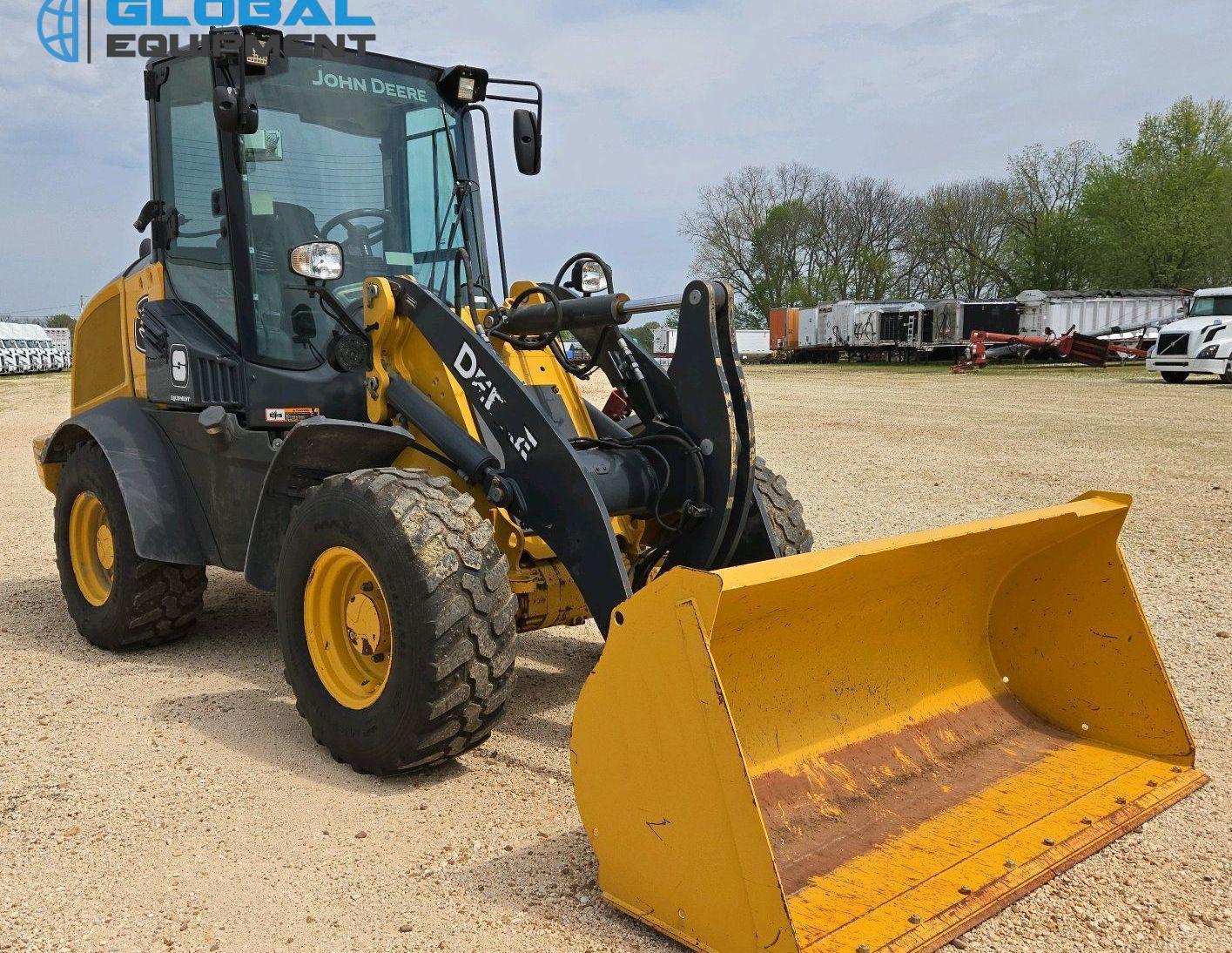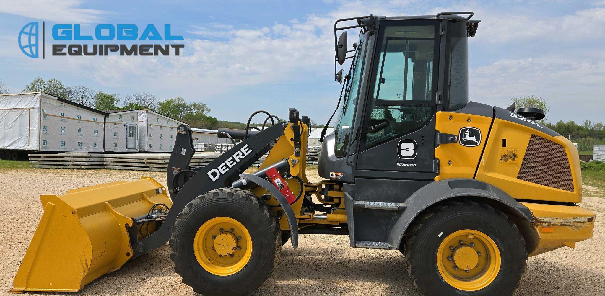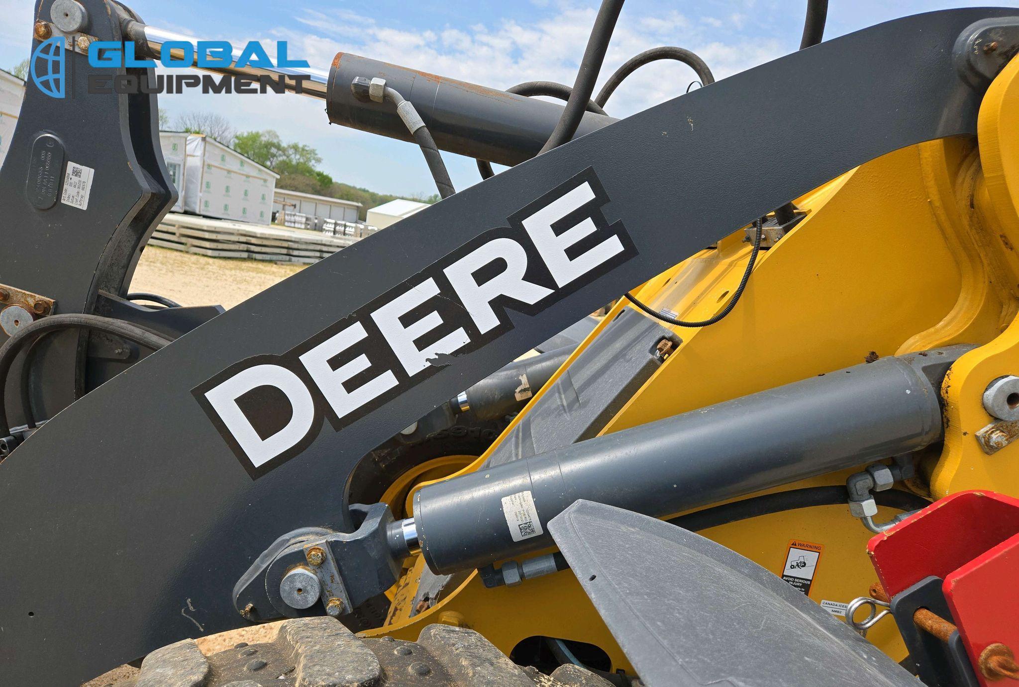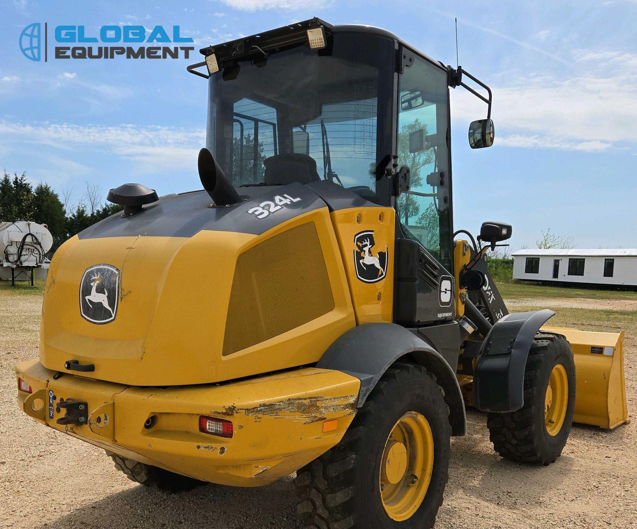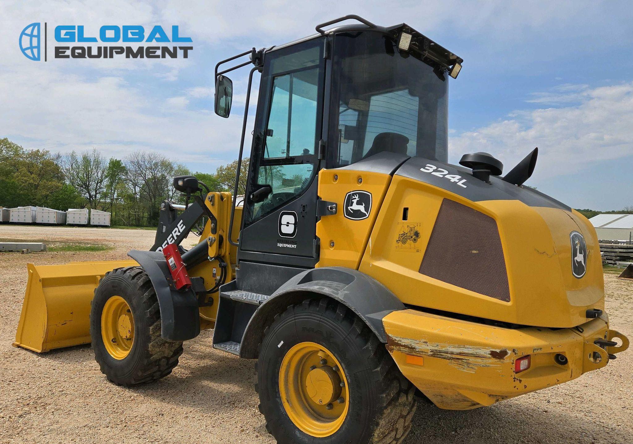 2022 John Deere 324L wheel loader, 7,547 Hours on meter, Hydrostatic Transmission with Two-Speed Travel, Enclosed Cab with AC and Heat, Joystick Bucket Controls, Equipped with Front Auxiliary Hydraulics, Hydraulic Quick Coupler, and Counterweights. Features John Deere EGP14 Bucket (1.4 cu.yd. Capacity, 87" Width, Bolt-on Cutting Edge). Riding on 405/70R20 Tires.