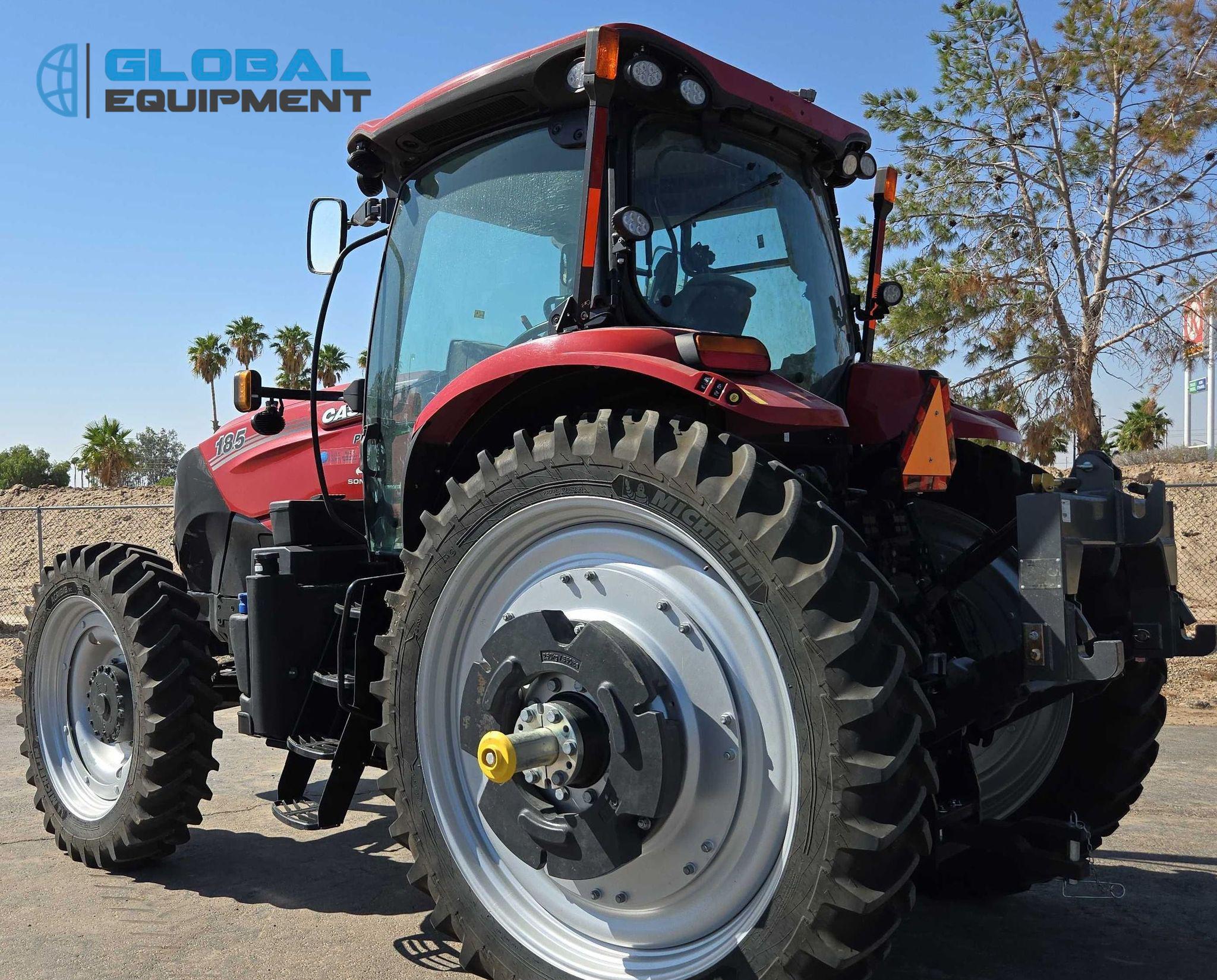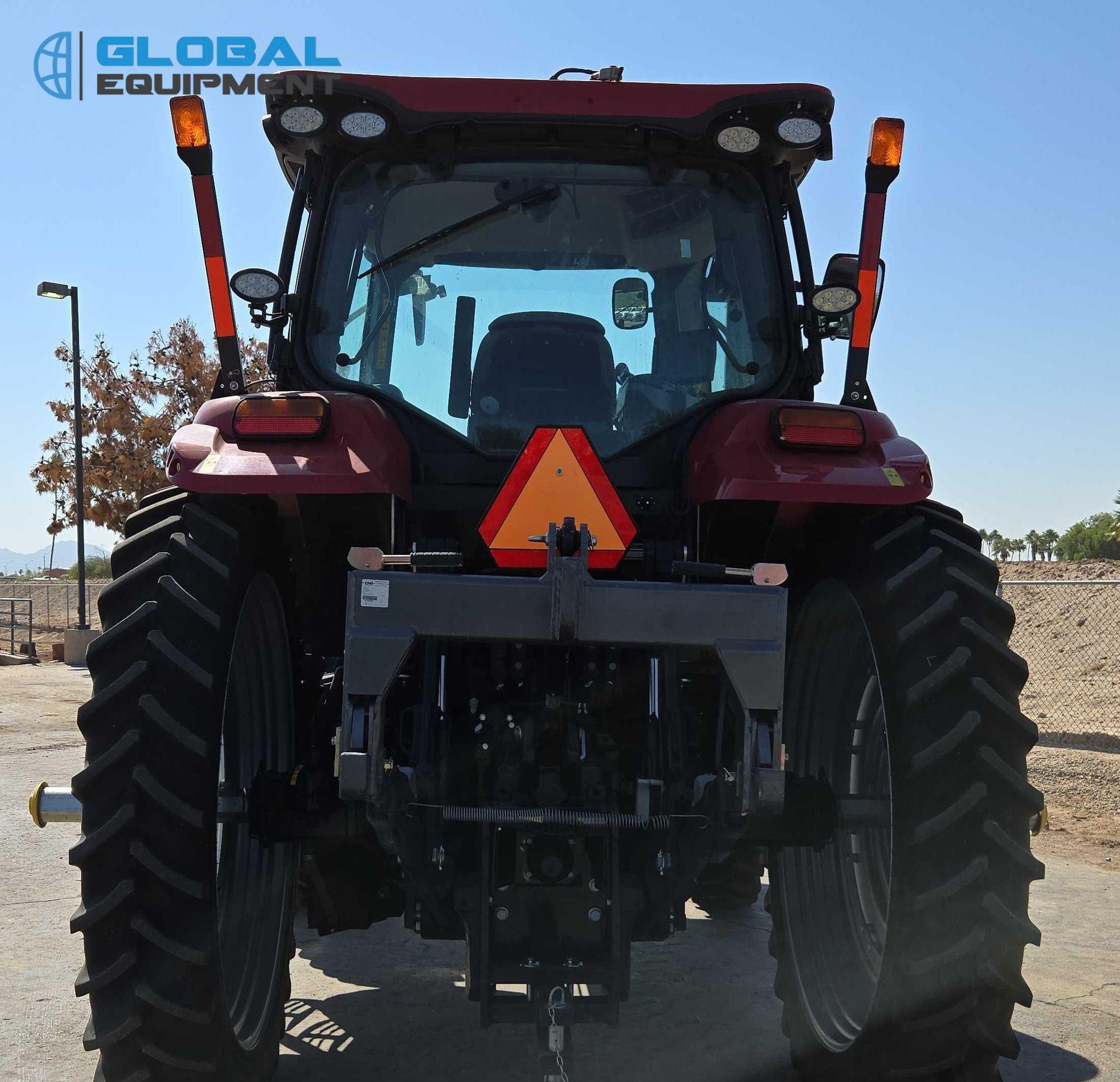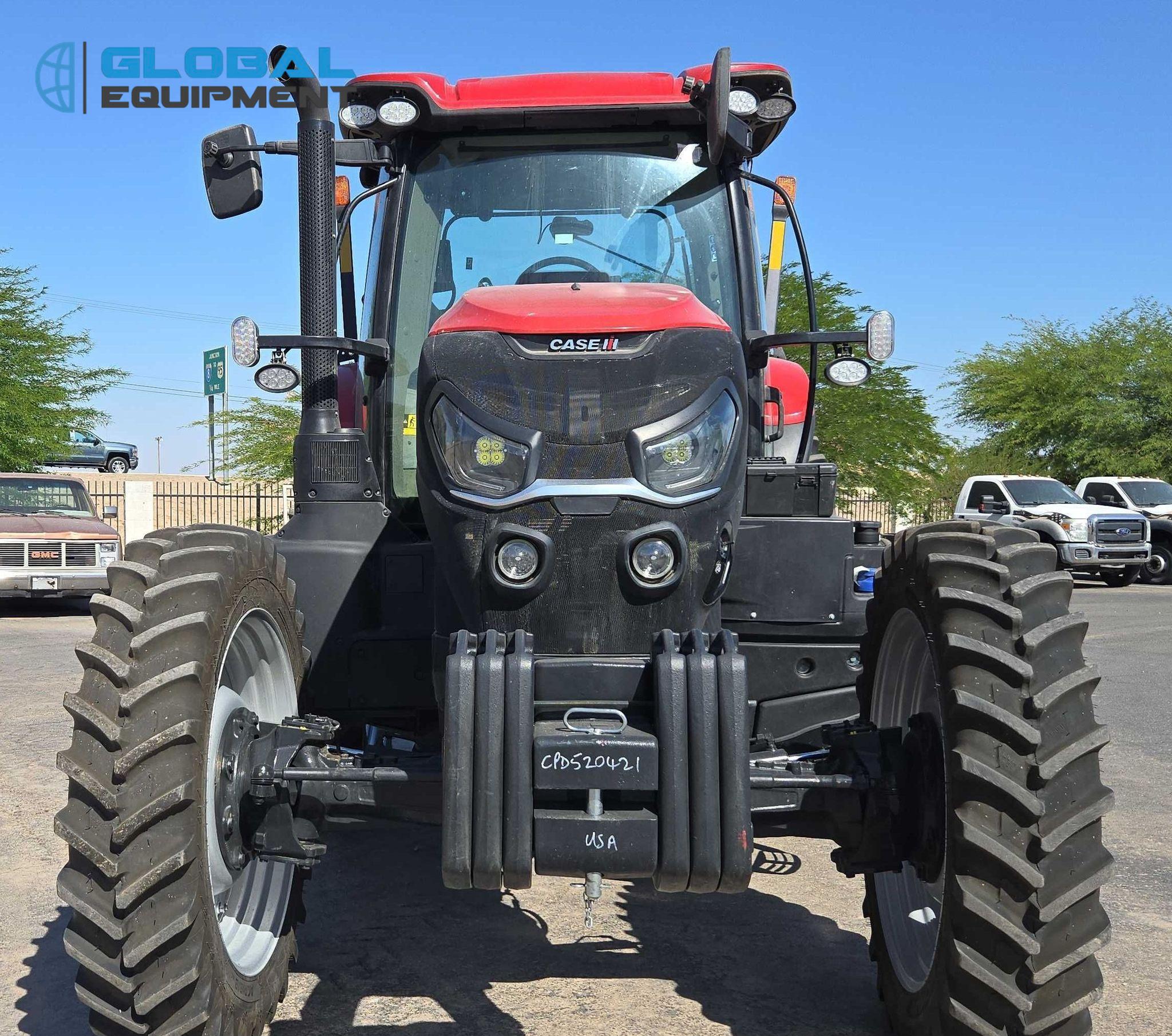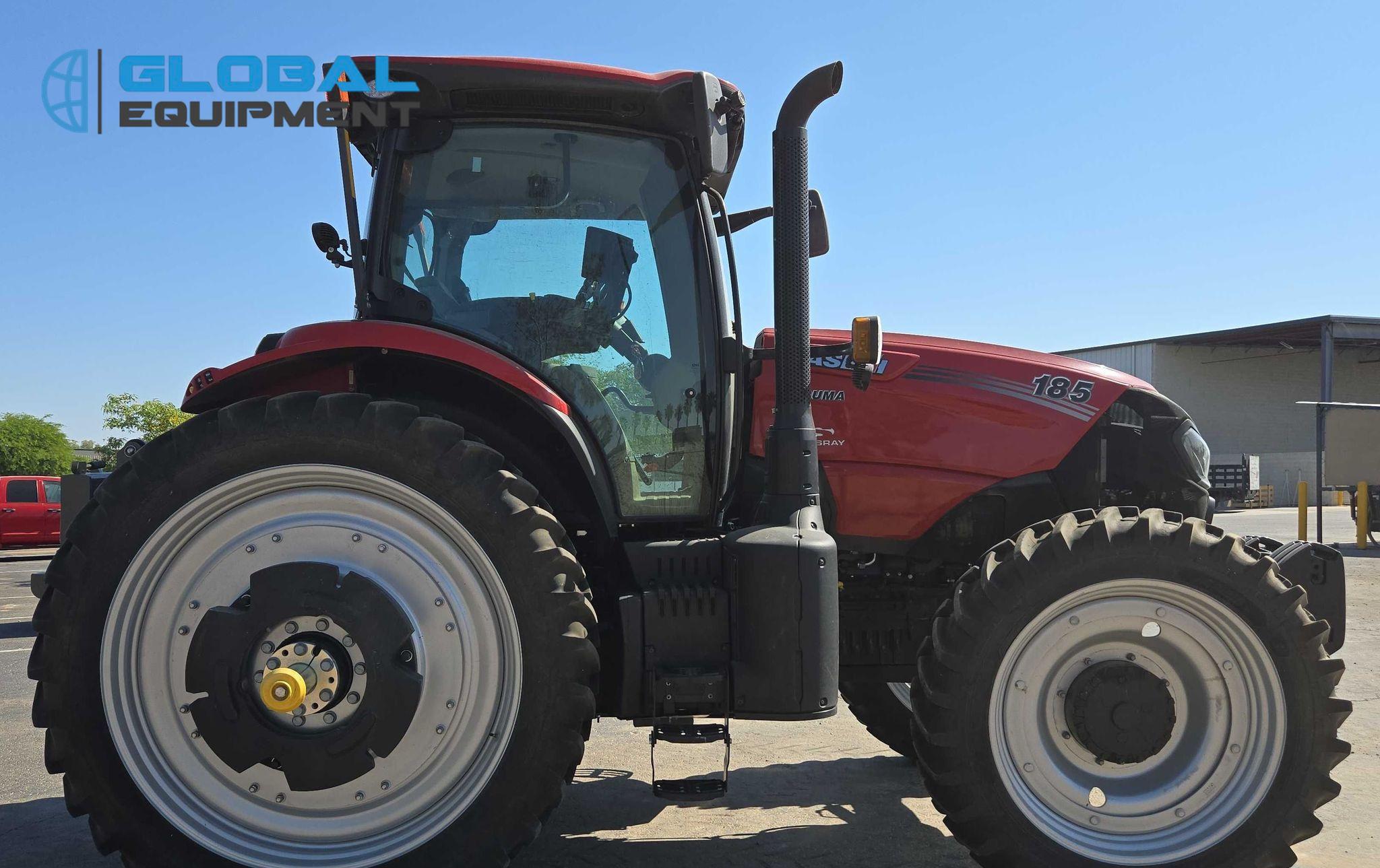 2023 Case IH Puma 185 MFWD tractor, 458 Hours on meter, Powershift Transmission (18F - 6R) with Left-Hand Reverser and Differential Lock, Equipped with AC, Heat, Display, Rear PTO (540), Three-Point Hitch with Top Link and Quick Attach, 7-Pin Outlet, 4 Rear Hydraulic Remote Sets, and 6 Suitcase Weights. Riding on Front IF320/85R38 Tires and Rear IF320/90R54 Tires with 2 Wheel Weights.