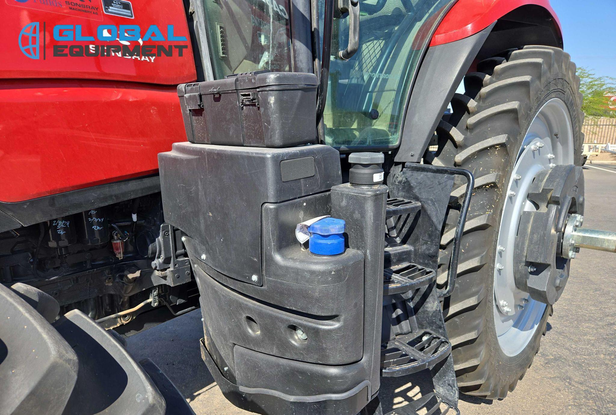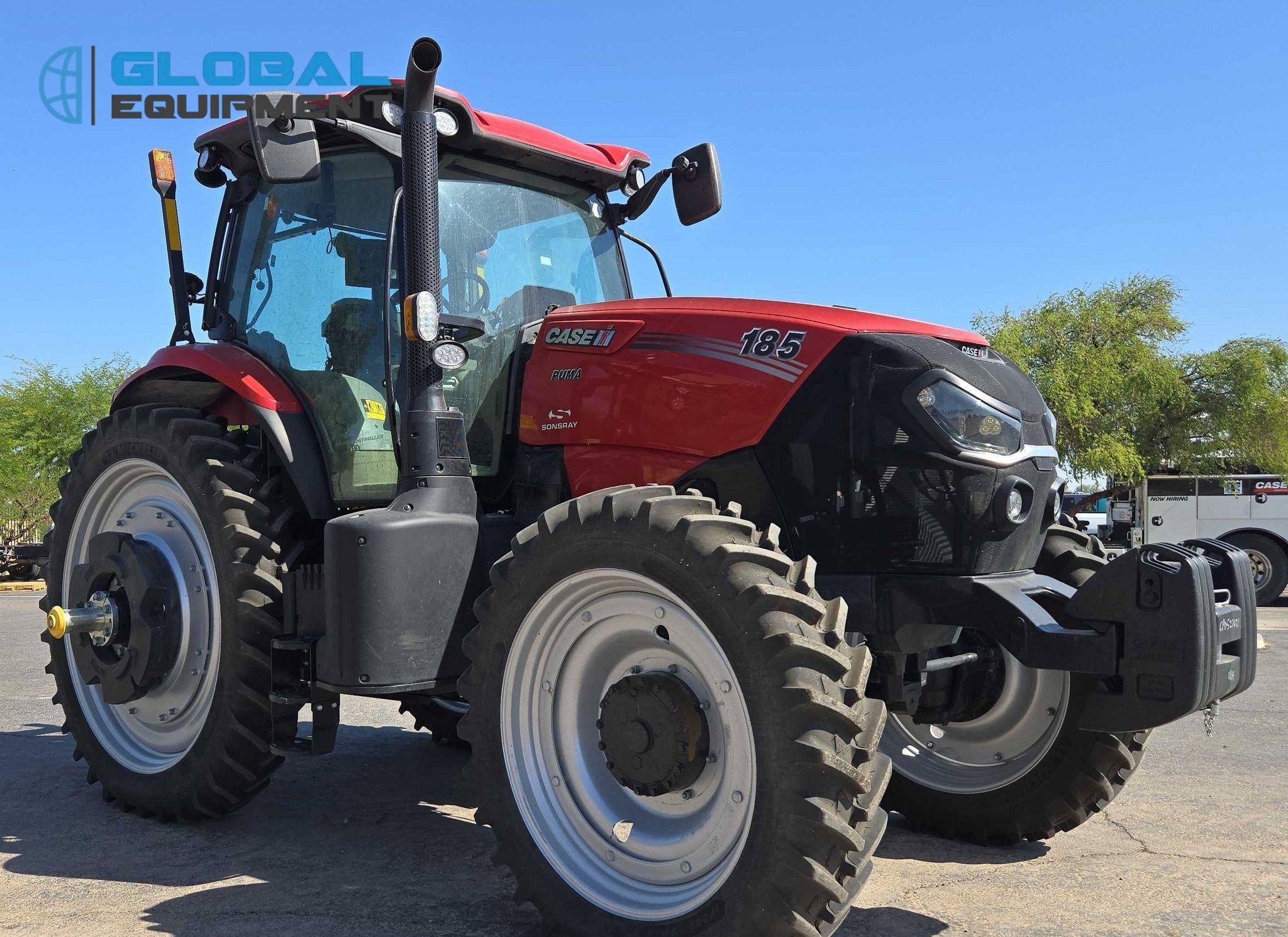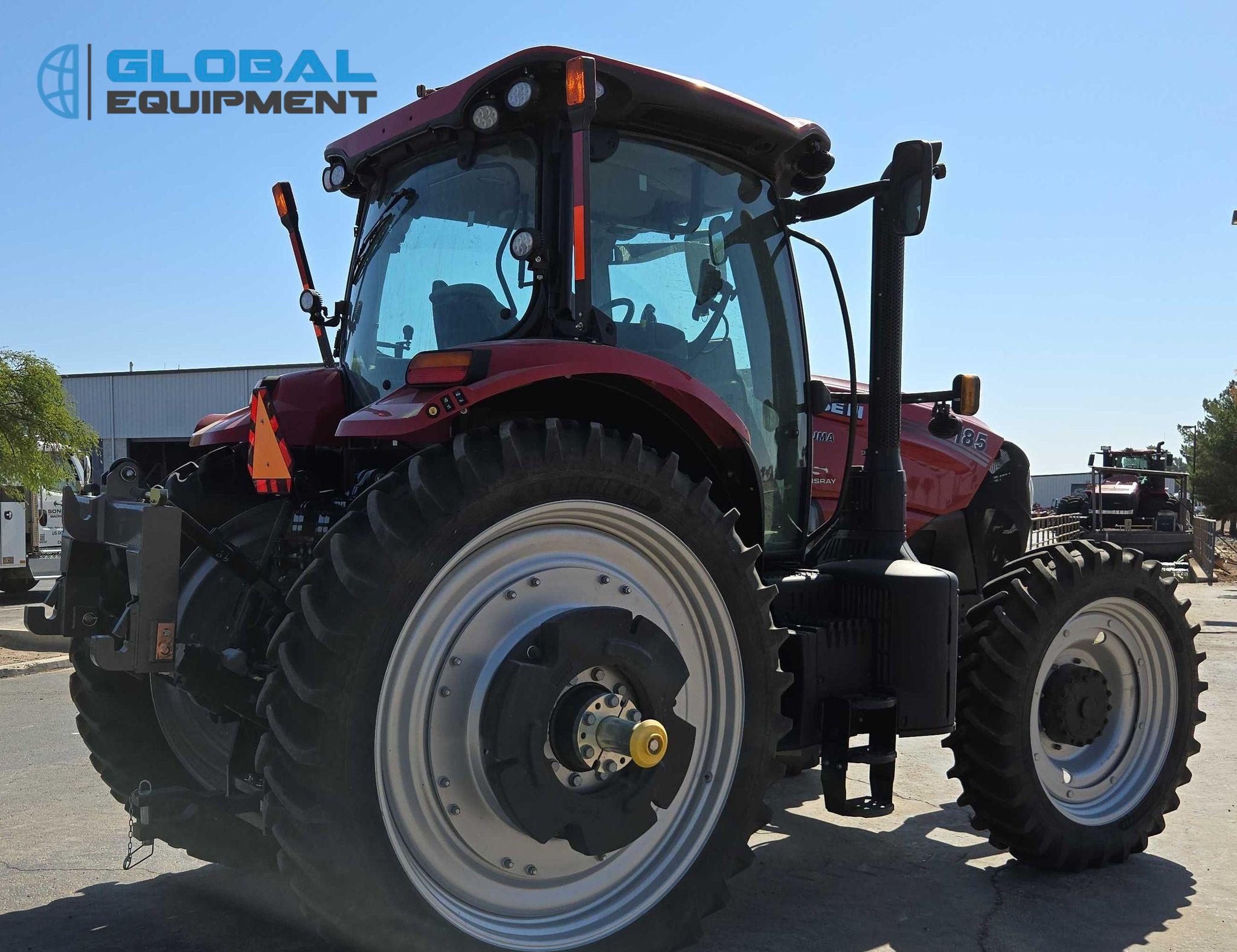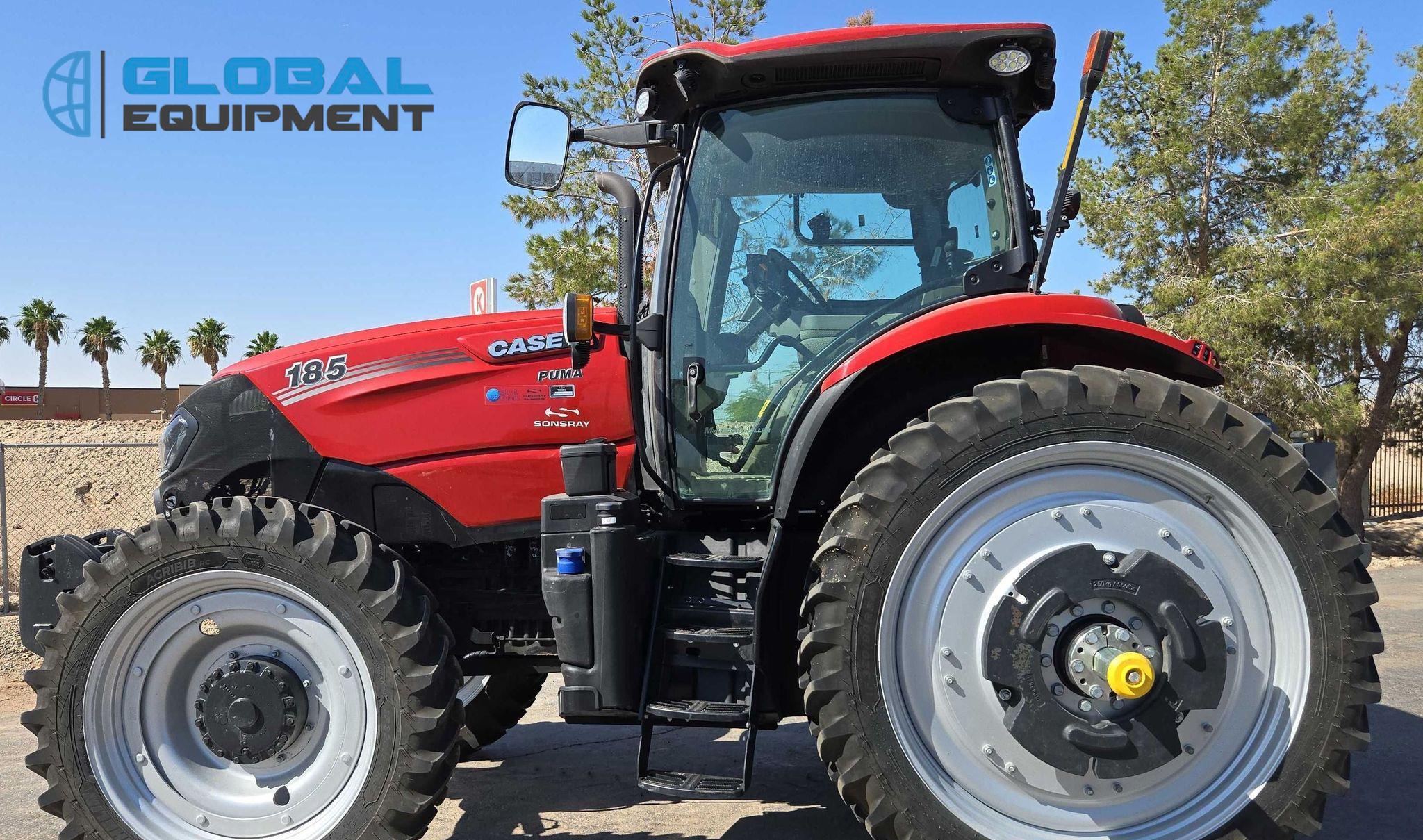 2023 Case IH Puma 185 MFWD tractor, 458 Hours on meter, Powershift Transmission (18F - 6R) with Left-Hand Reverser and Differential Lock, Equipped with AC, Heat, Display, Rear PTO (540), Three-Point Hitch with Top Link and Quick Attach, 7-Pin Outlet, 4 Rear Hydraulic Remote Sets, and 6 Suitcase Weights. Riding on Front IF320/85R38 Tires and Rear IF320/90R54 Tires with 2 Wheel Weights.