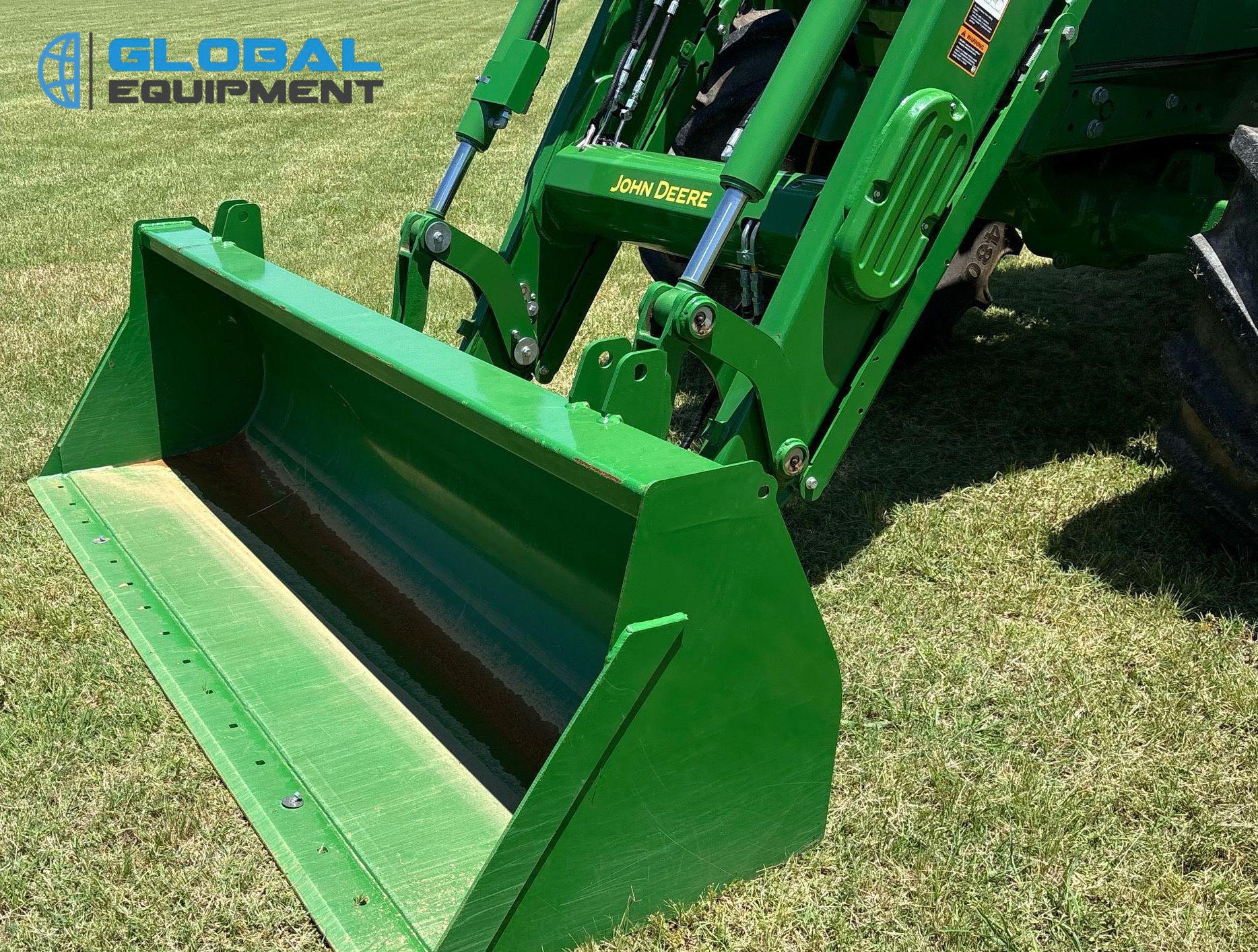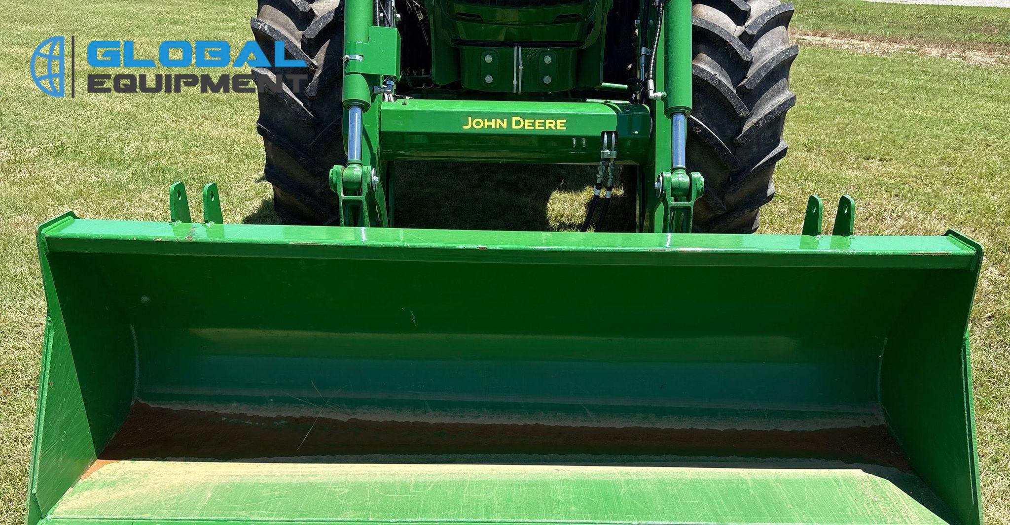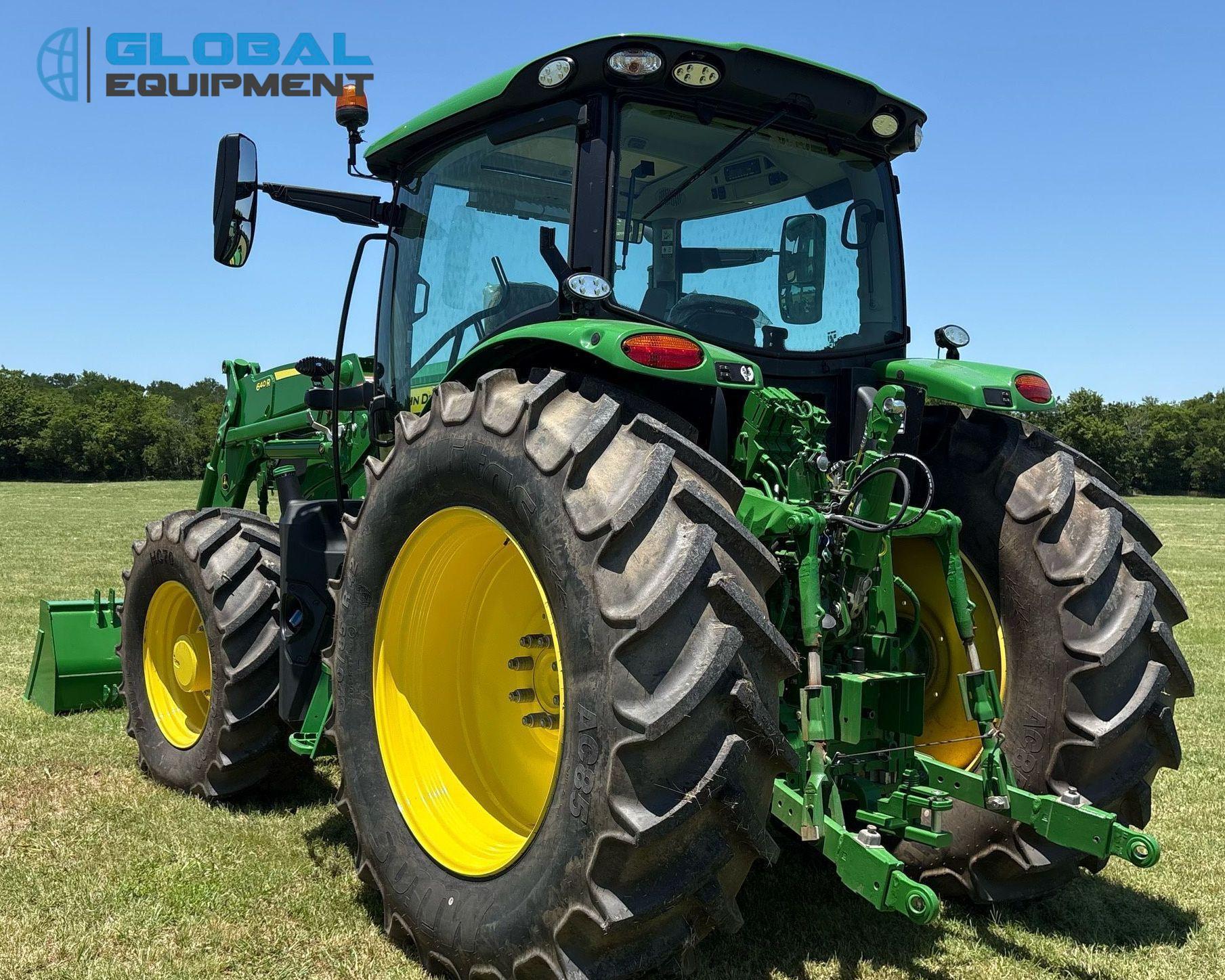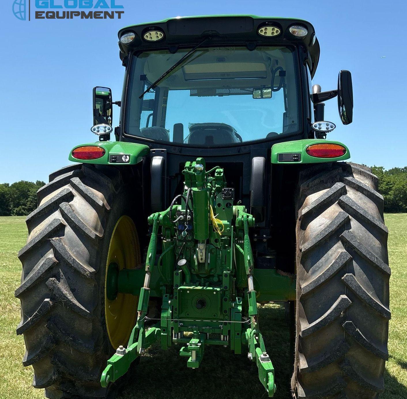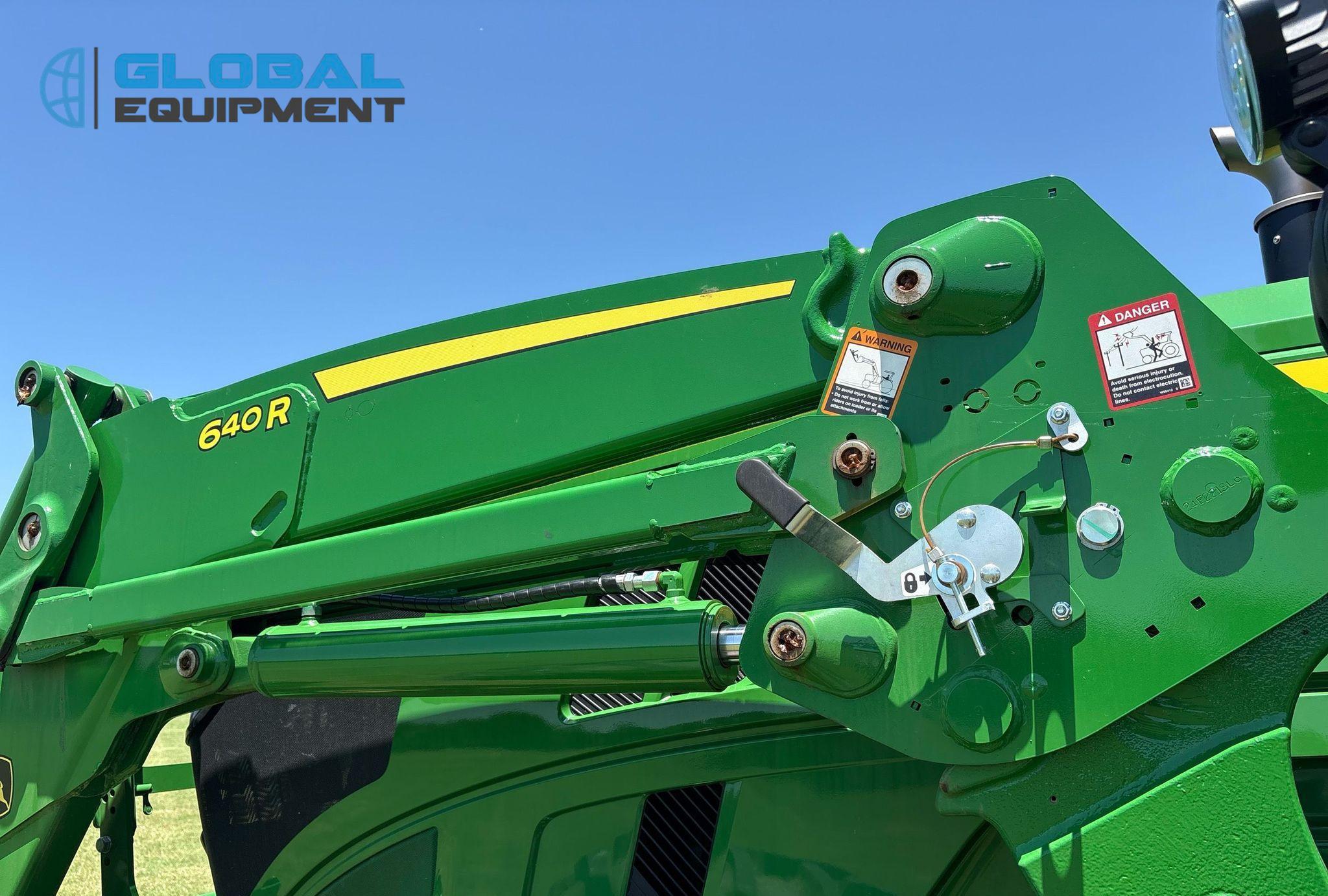 2024 John Deere 6R 145 MFWD tractor, 55 Hours on meter, IVT Transmission with Left-Hand Reverser and Differential Lock, Equipped with AC, Heat, and Auto Steer. Features 540 PTO, Three-Point Hitch with Top Link, 7-Pin Outlet, ISOBUS Outlet, 3 Rear Hydraulic Remote Sets, and John Deere 640R Loader (Quick Attach, Self-Leveling, Joystick Controls) with 99" Bucket. Riding on Front 480/70R30 and Rear 520/85R42 Tires.