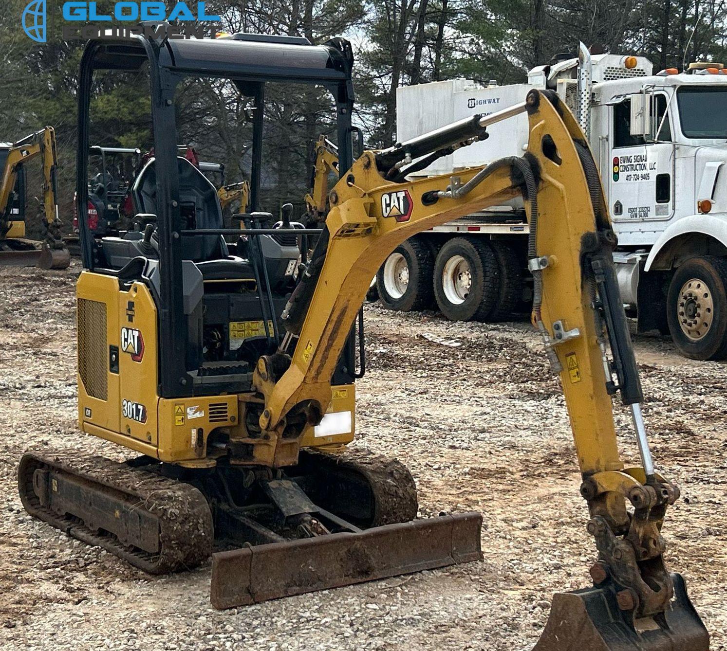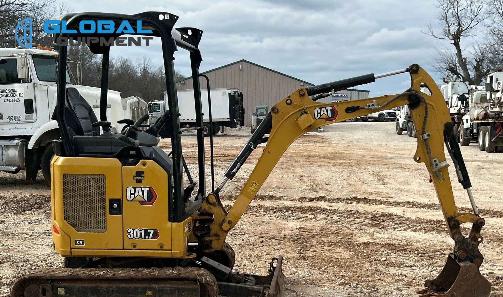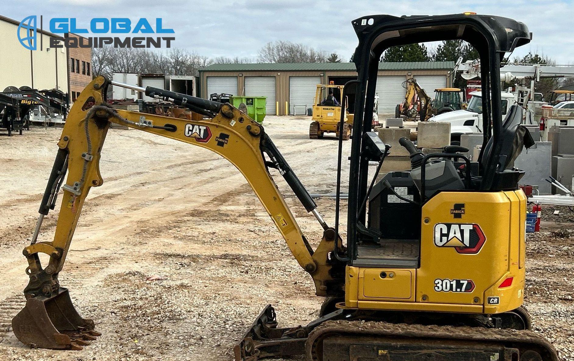 2020 Caterpillar 301.7 CR Mini Excavator, 1,852 hours on meter, Equipped with Caterpillar 1.13L 3-Cylinder Diesel Engine, Hydrostatic Transmission with Two-Speed Travel, OROPS Operator Station with Pattern Changer. Features Auxiliary Hydraulics, 51" Backfill Blade, Swing Boom, 4' Stick, and Hydraulic Quick Coupler. Includes Caterpillar 18" Bucket with 4 Teeth. Riding on 9" Expandable Rubber Tracks.