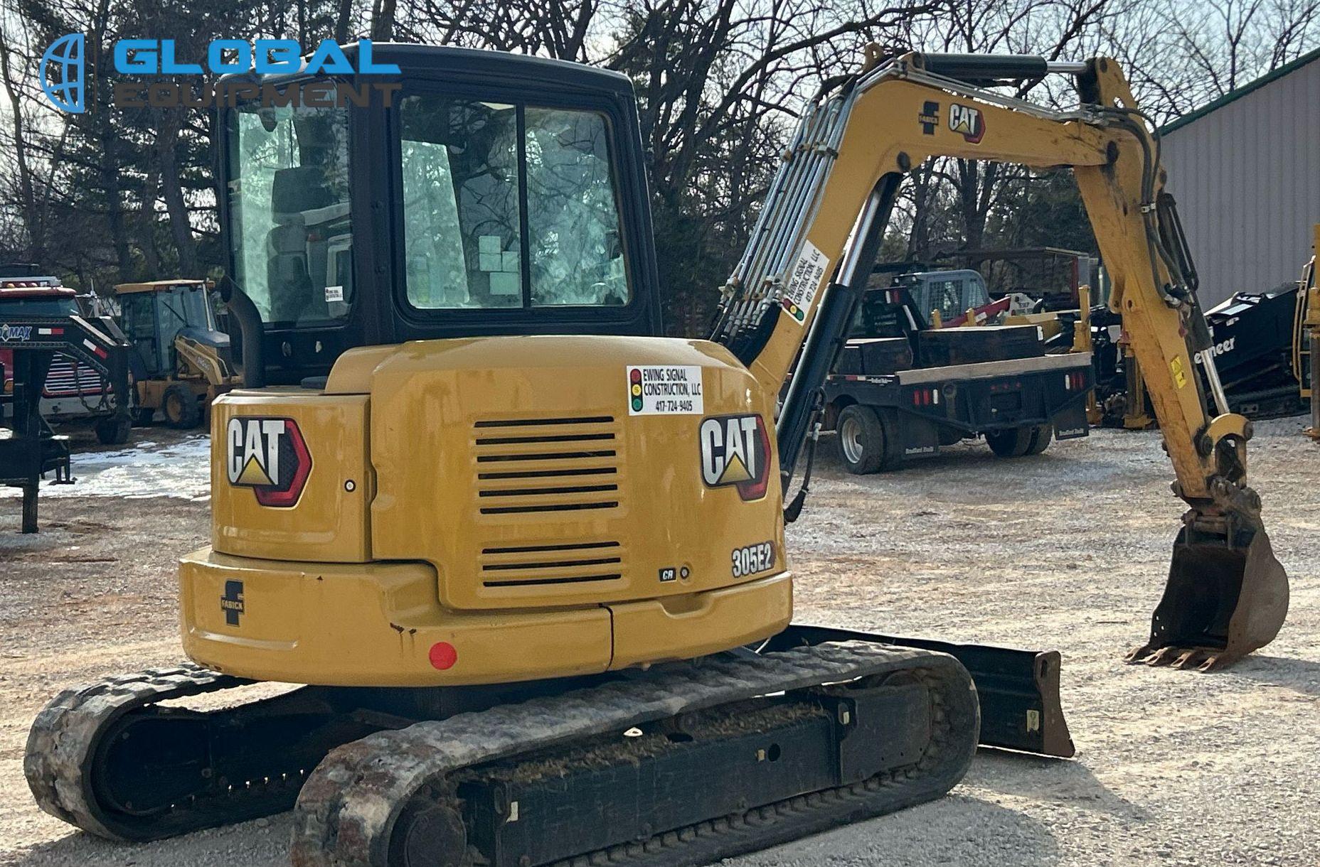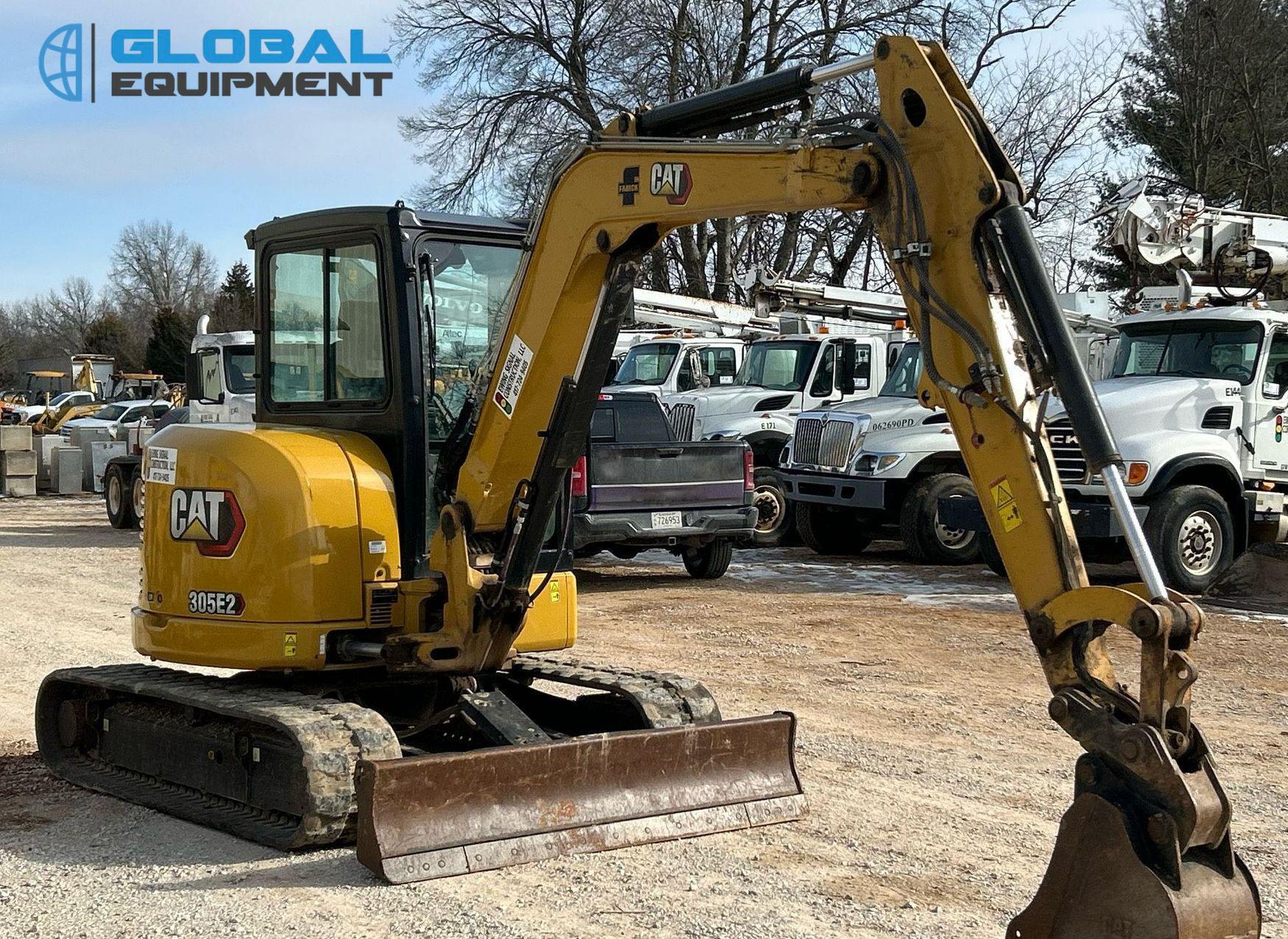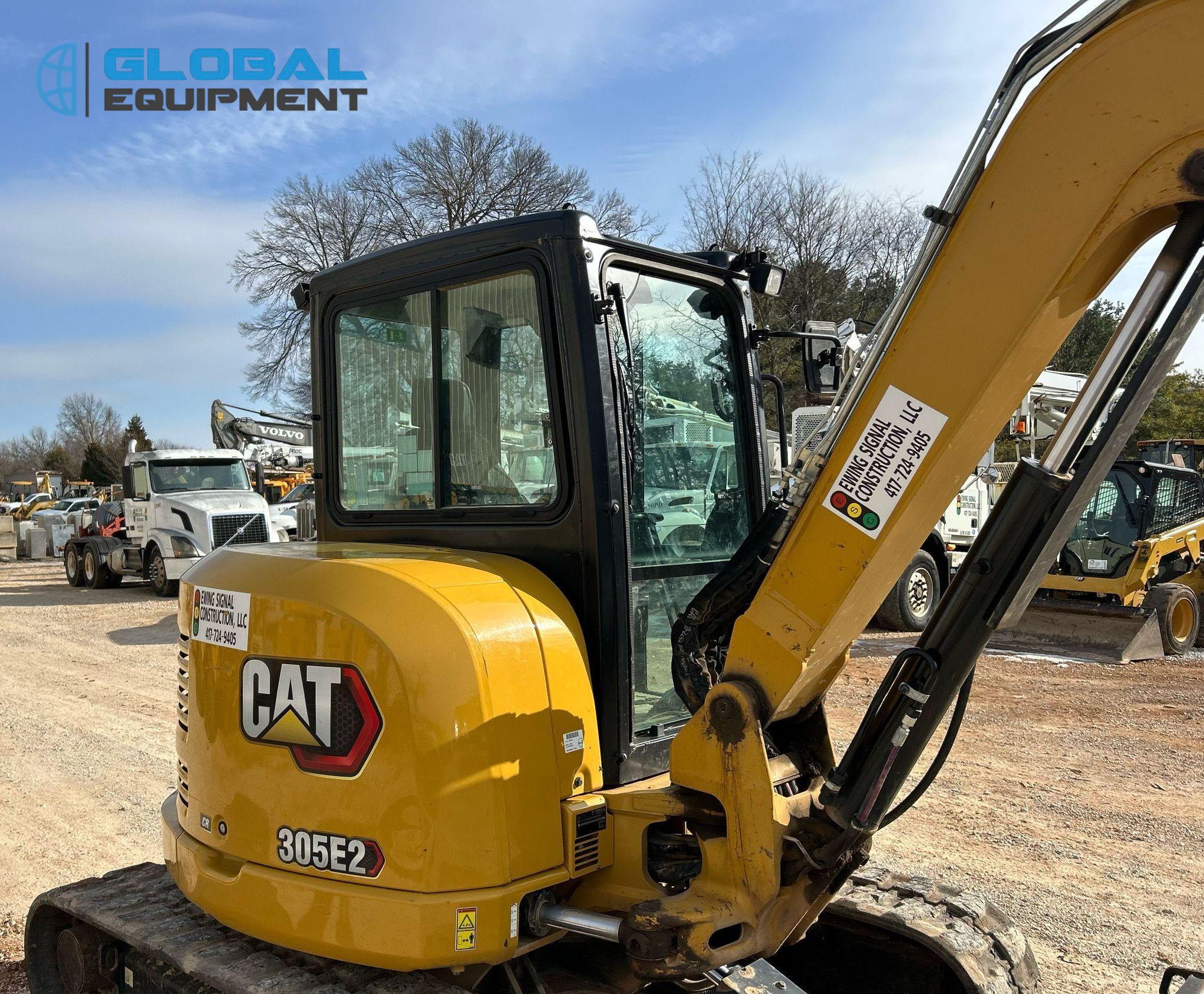 2020 Caterpillar 305E2 Mini Excavator, 2,159 hours on meter, Equipped with Caterpillar 2.4L 4-Cylinder Diesel Engine, Hydrostatic Transmission with Two-Speed Travel, Enclosed Cab with AC, Heat, Backup Camera, and Pattern Changer. Features Auxiliary Hydraulics, 78" Backfill Blade, Swing Boom, 6' Stick, and Hydraulic Quick Coupler. Includes Caterpillar 18" Bucket with 4 Teeth. Riding on 15.5" Rubber Tracks.