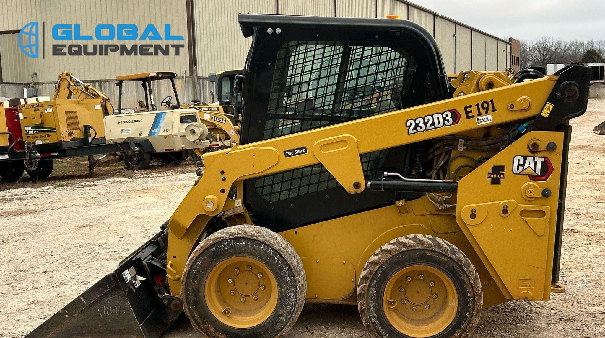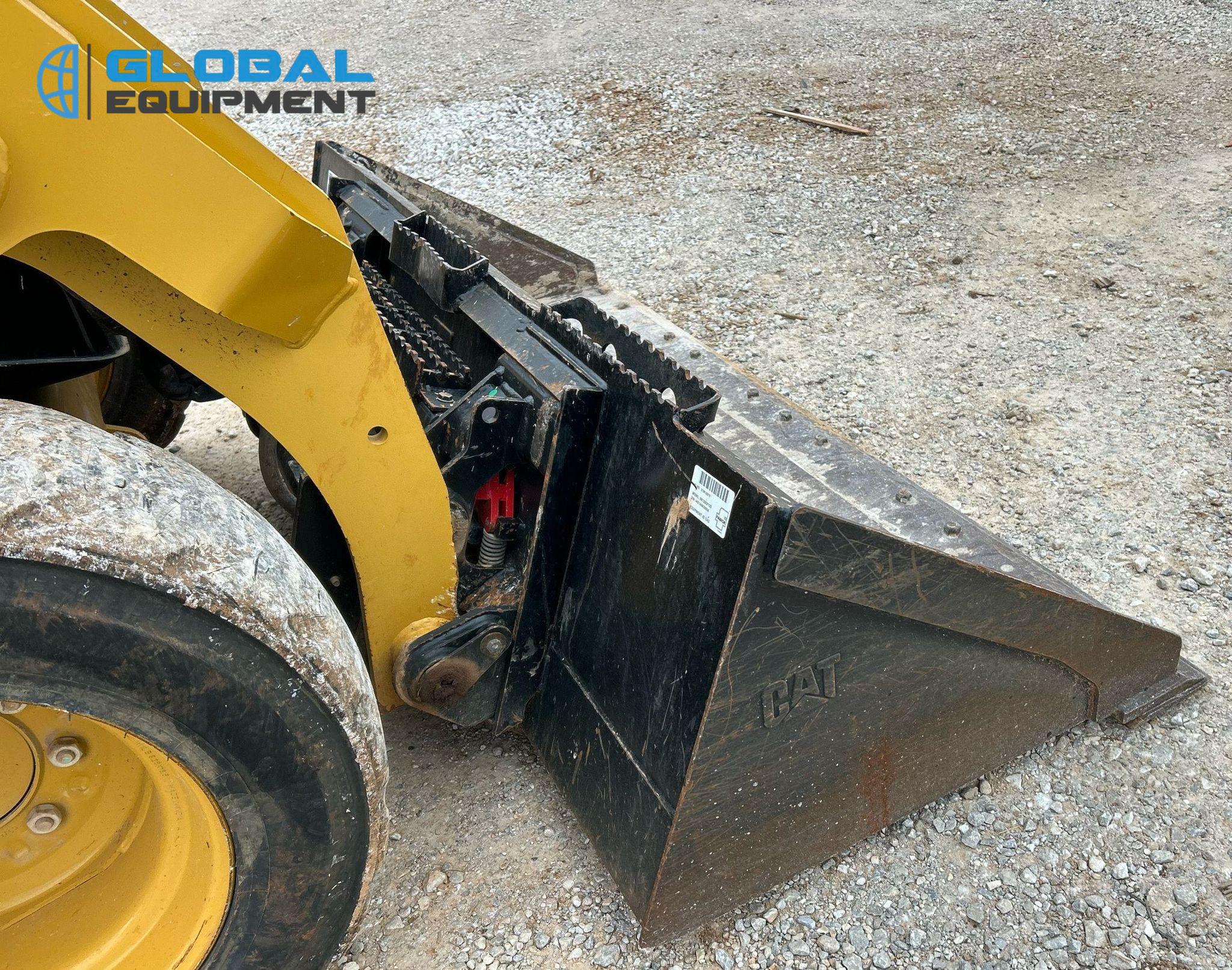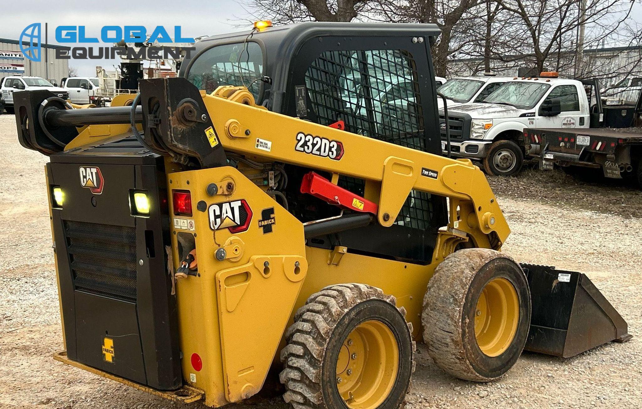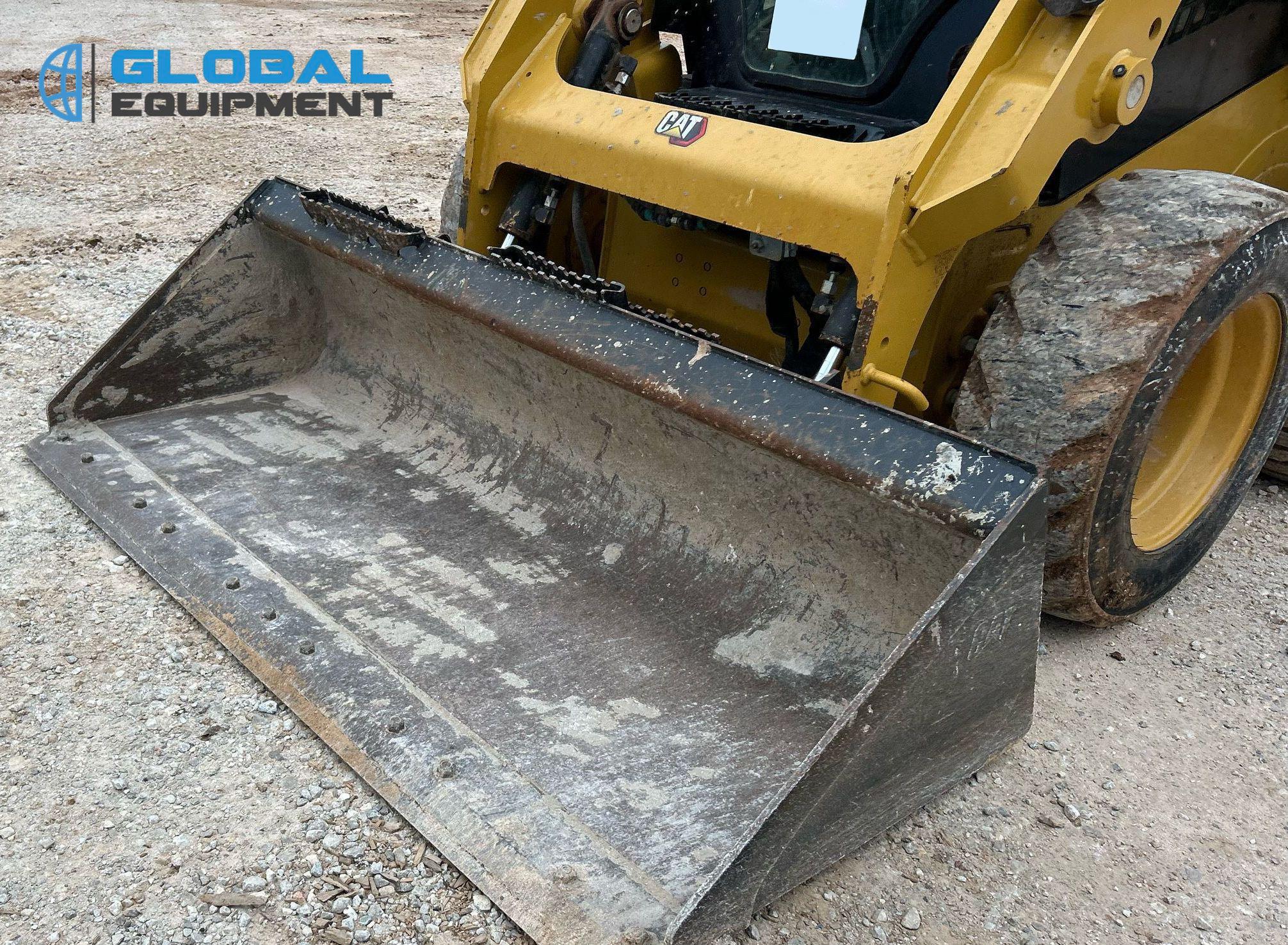 2022 Caterpillar 232D3 Skid Steer Loader, 597 hours on meter, Equipped with Caterpillar 4-Cylinder Diesel Engine, Hydrostatic Transmission with Two-Speed Travel, Enclosed Cab with AC, Heat, Backup Camera, Hand Bucket Controls, and Electronic Monitoring System Panel. Features Auxiliary Hydraulics, Auxiliary Electrical Outlet, Hydraulic Quick Coupler, and Counter Weights. Includes Caterpillar 74" Bucket with Bolt-On Cutting Edge. Riding on 10-16.5 Tires.