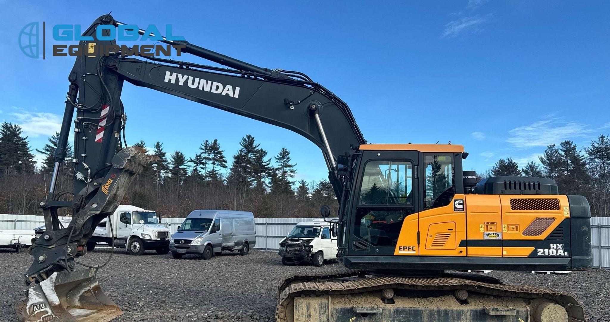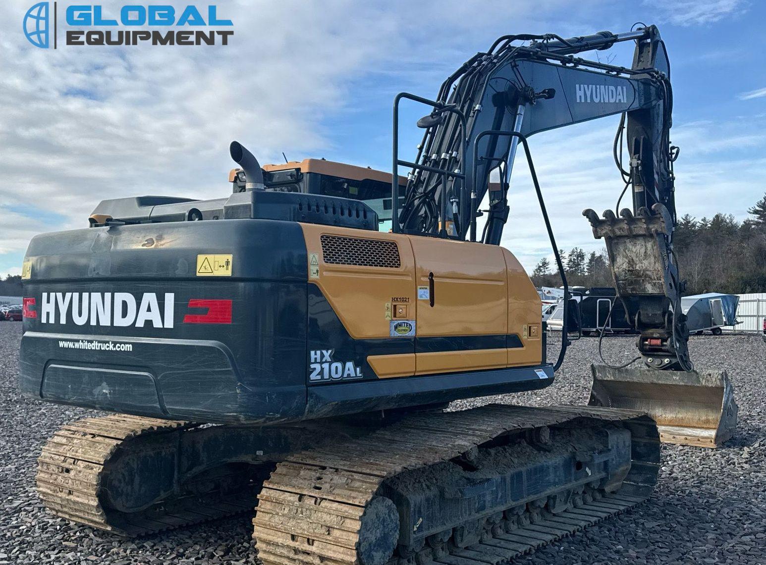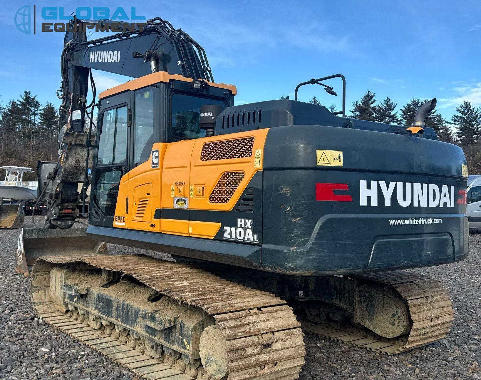 2022 Hyundai HX210AL Excavator, 382 hours on meter, Equipped with Cummins B4.5 4.5L 4-Cylinder 190 HP Diesel Engine, Hydrostatic Transmission with Two-Speed Travel, Enclosed Cab with AC, Heat, and Backup Camera. Features Auxiliary Hydraulics (Standard, Two-Way), Counter Weights, Standard Boom, 9' 9" Stick, Hydraulic Quick Coupler (Hyundai EQD22), and Hydraulic AMI Thumb. Includes AMI 72" Bucket with 1.4 cu.yd. Capacity, Bolt-On Hydraulic Tilt Cutting Edge, plus 48" Bucket with 6 Teeth. Riding on 31" Steel Tracks with Triple Grouser Pads.