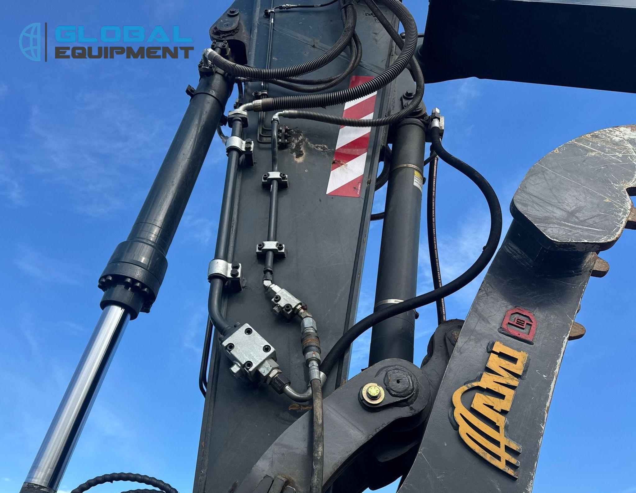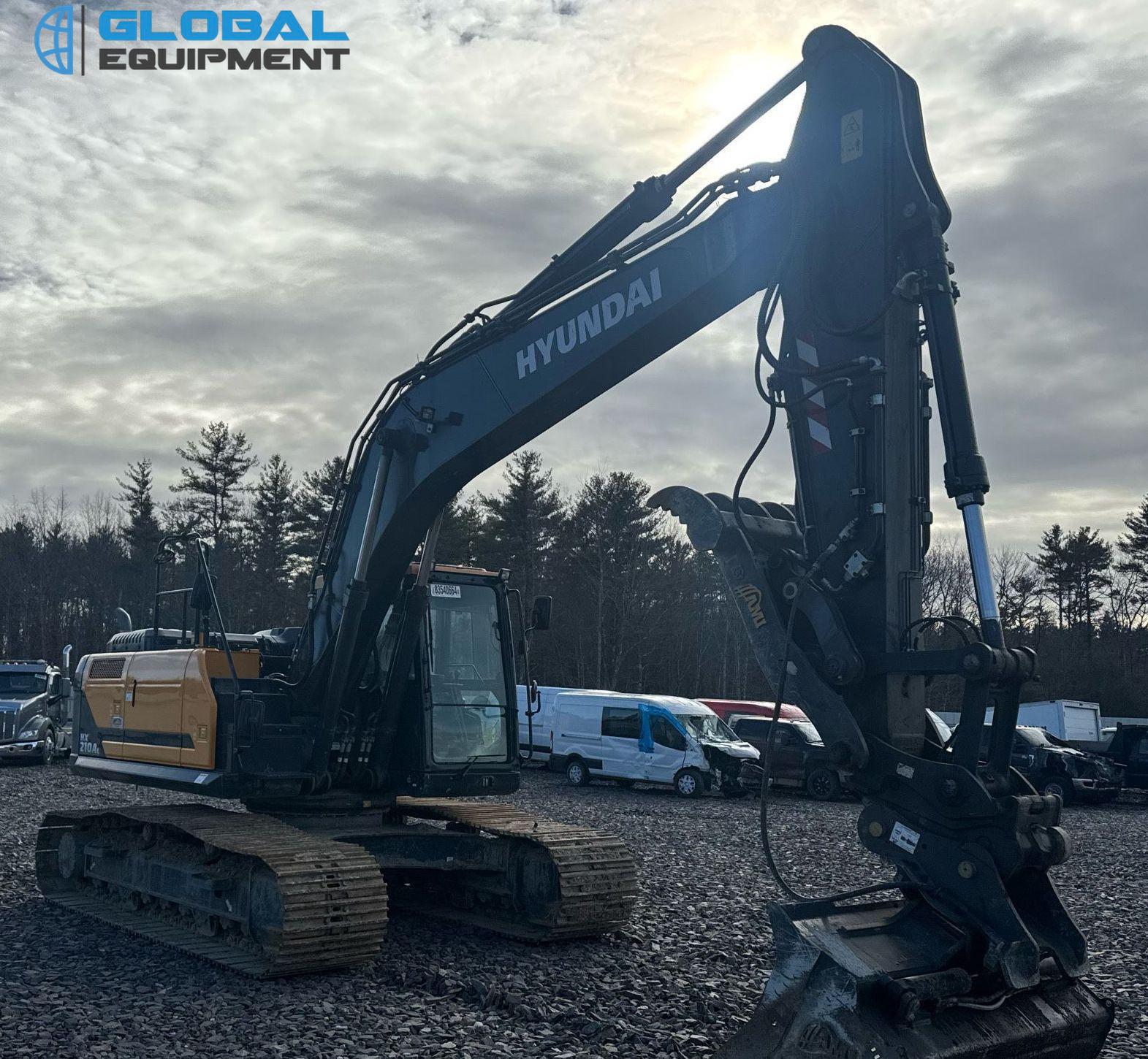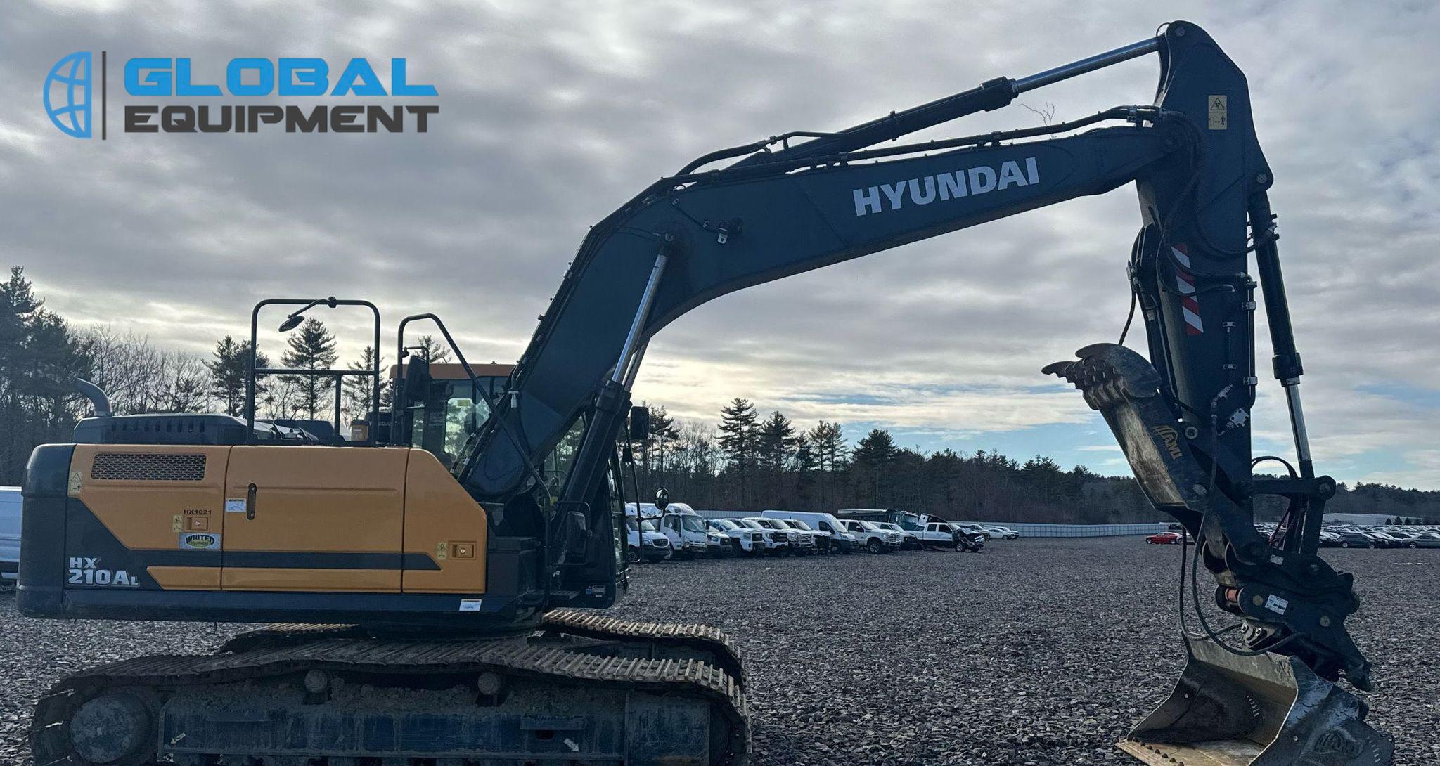 2022 Hyundai HX210AL Excavator, 382 hours on meter, Equipped with Cummins B4.5 4.5L 4-Cylinder 190 HP Diesel Engine, Hydrostatic Transmission with Two-Speed Travel, Enclosed Cab with AC, Heat, and Backup Camera. Features Auxiliary Hydraulics (Standard, Two-Way), Counter Weights, Standard Boom, 9' 9" Stick, Hydraulic Quick Coupler (Hyundai EQD22), and Hydraulic AMI Thumb. Includes AMI 72" Bucket with 1.4 cu.yd. Capacity, Bolt-On Hydraulic Tilt Cutting Edge, plus 48" Bucket with 6 Teeth. Riding on 31" Steel Tracks with Triple Grouser Pads.