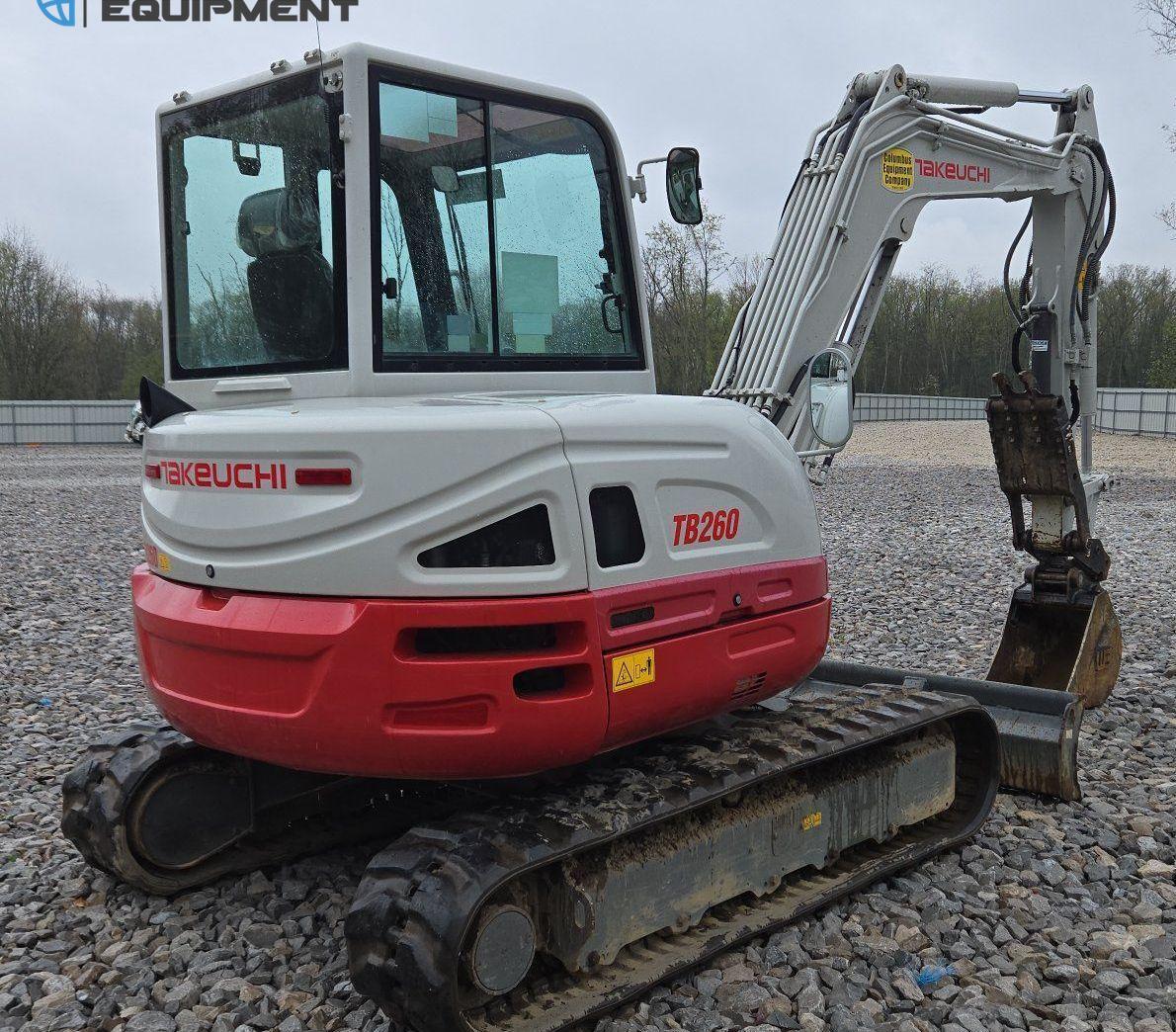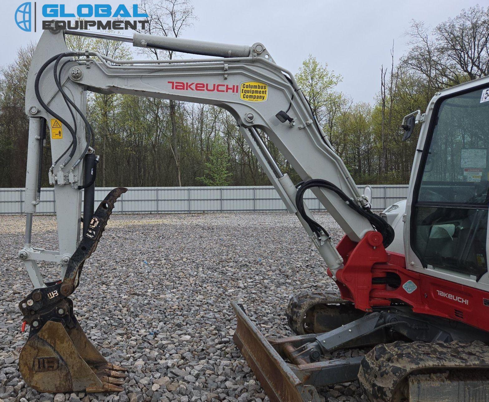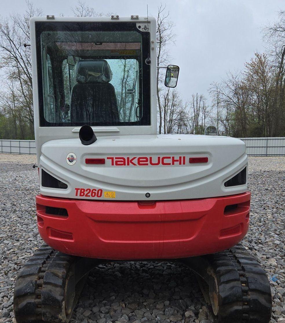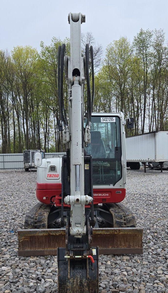 2022 Takeuchi TB260 Mini Excavator, 1,142 hours on meter, Equipped with Yanmar 3-Cylinder Diesel Engine, Hydrostatic Transmission with Two-Speed Travel, Enclosed Cab with AC, Heat, and Pattern Changer. Features Auxiliary Hydraulics, 78" Backfill Blade, Swing Boom, 5' 10" Stick, Mechanical Quick Coupler, and Hydraulic Thumb. Includes Buckets: 19" (4 Teeth), 12" (3 Teeth), 37" (6 Teeth), and 49" with Bolt-On Cutting Edge. Riding on 15.5" Rubber Tracks.